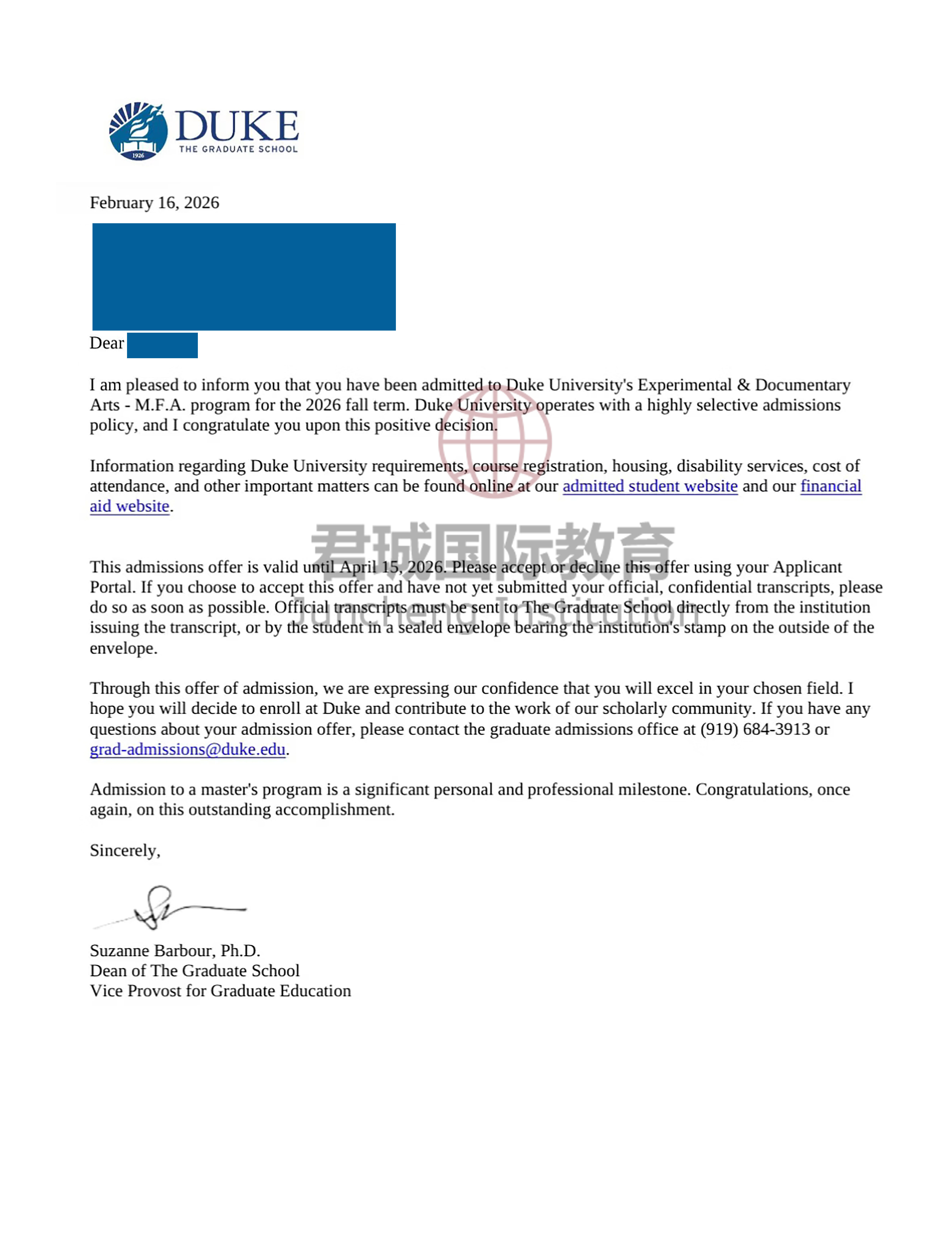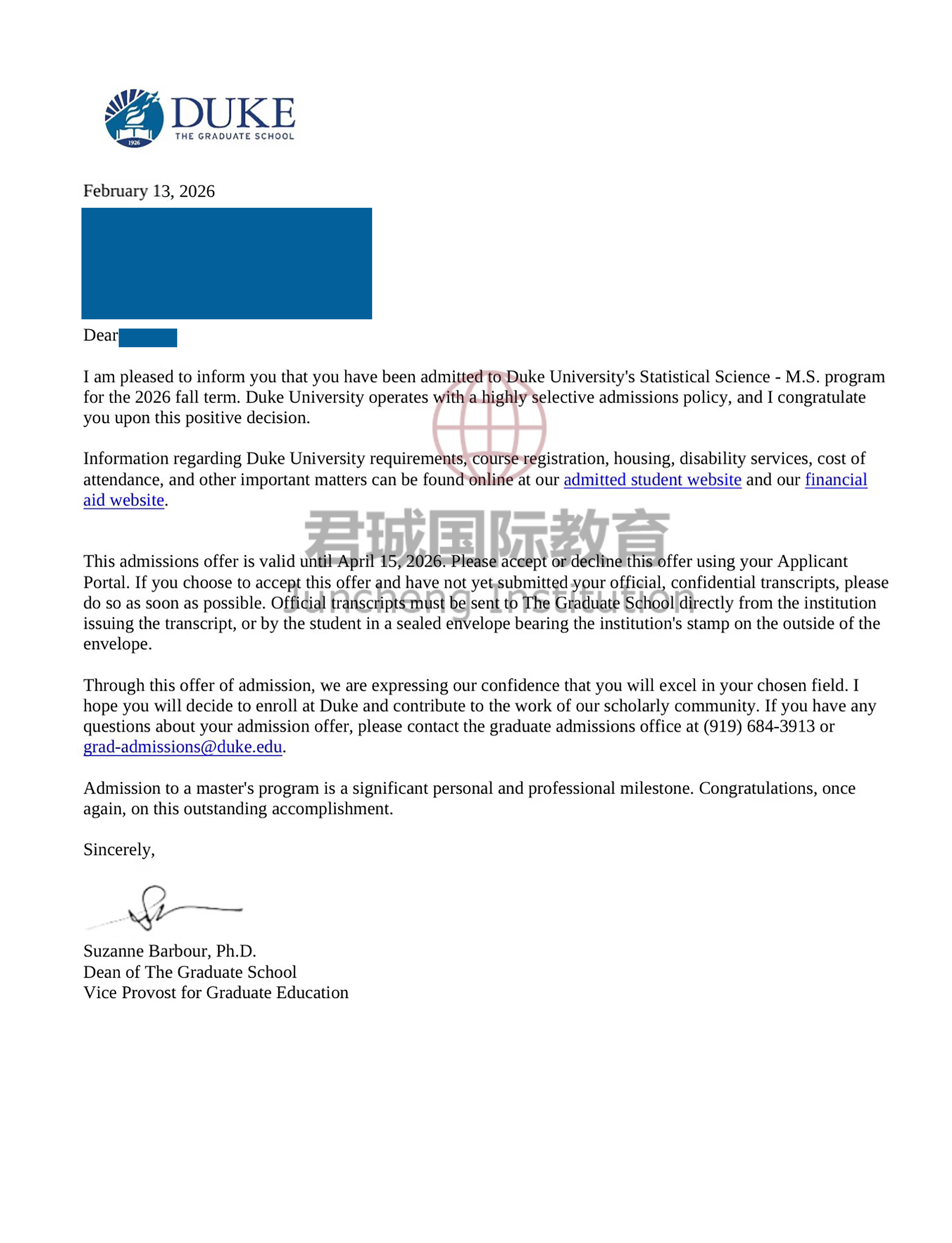 录取Offer:约翰霍普金斯大学 The Johns Hopkins University