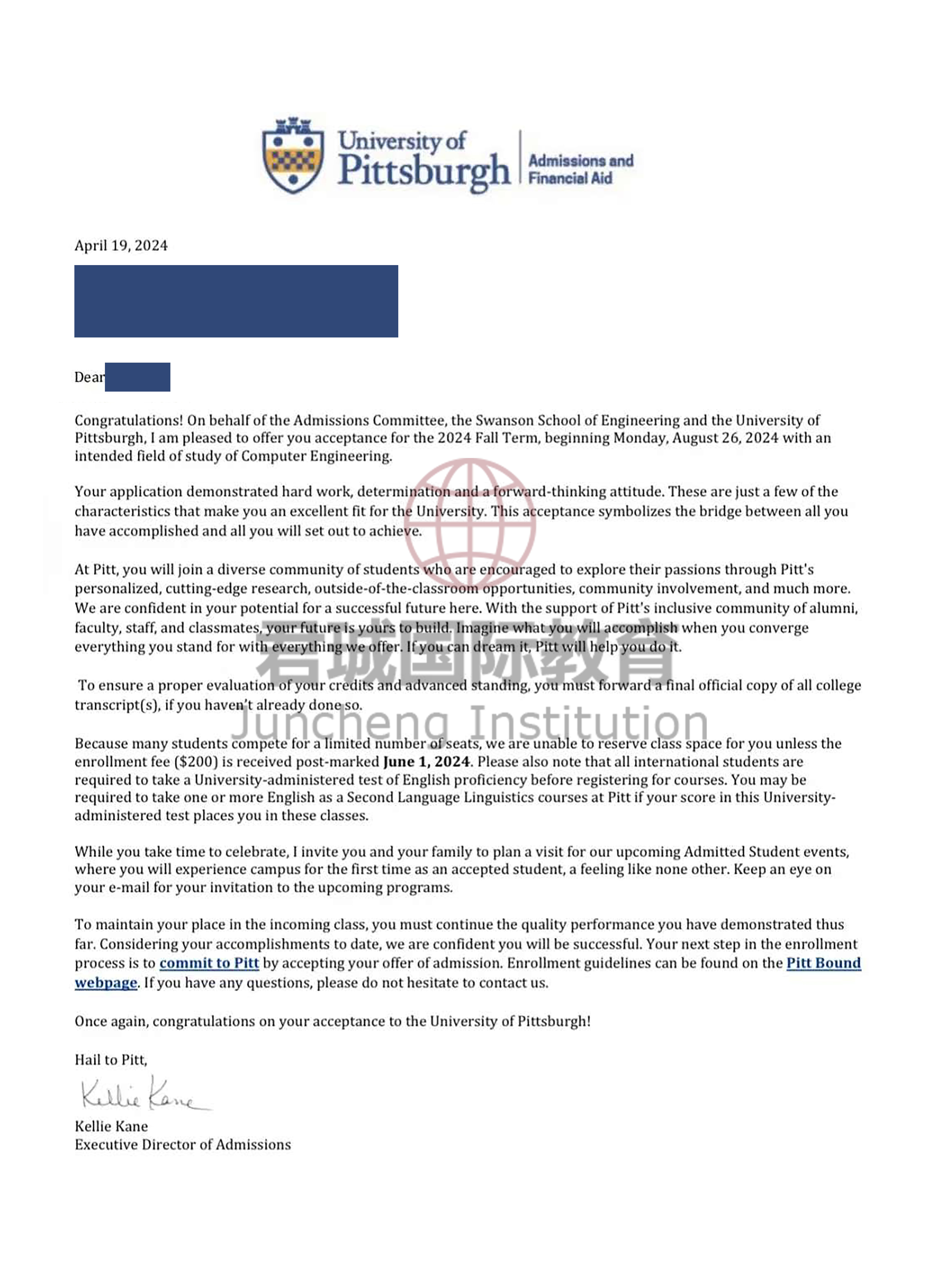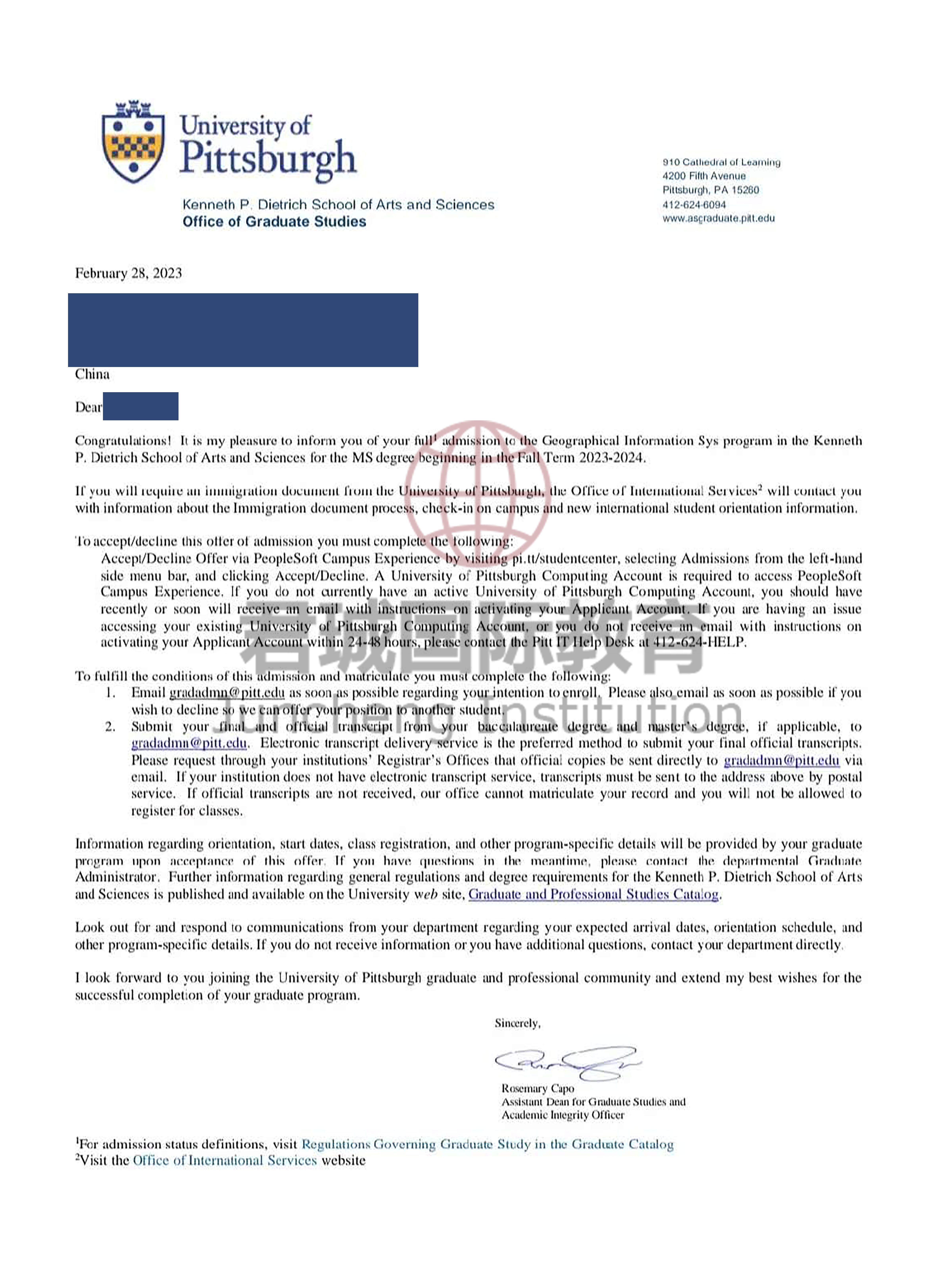 录取Offer:匹兹堡大学 University of Pittsburgh
