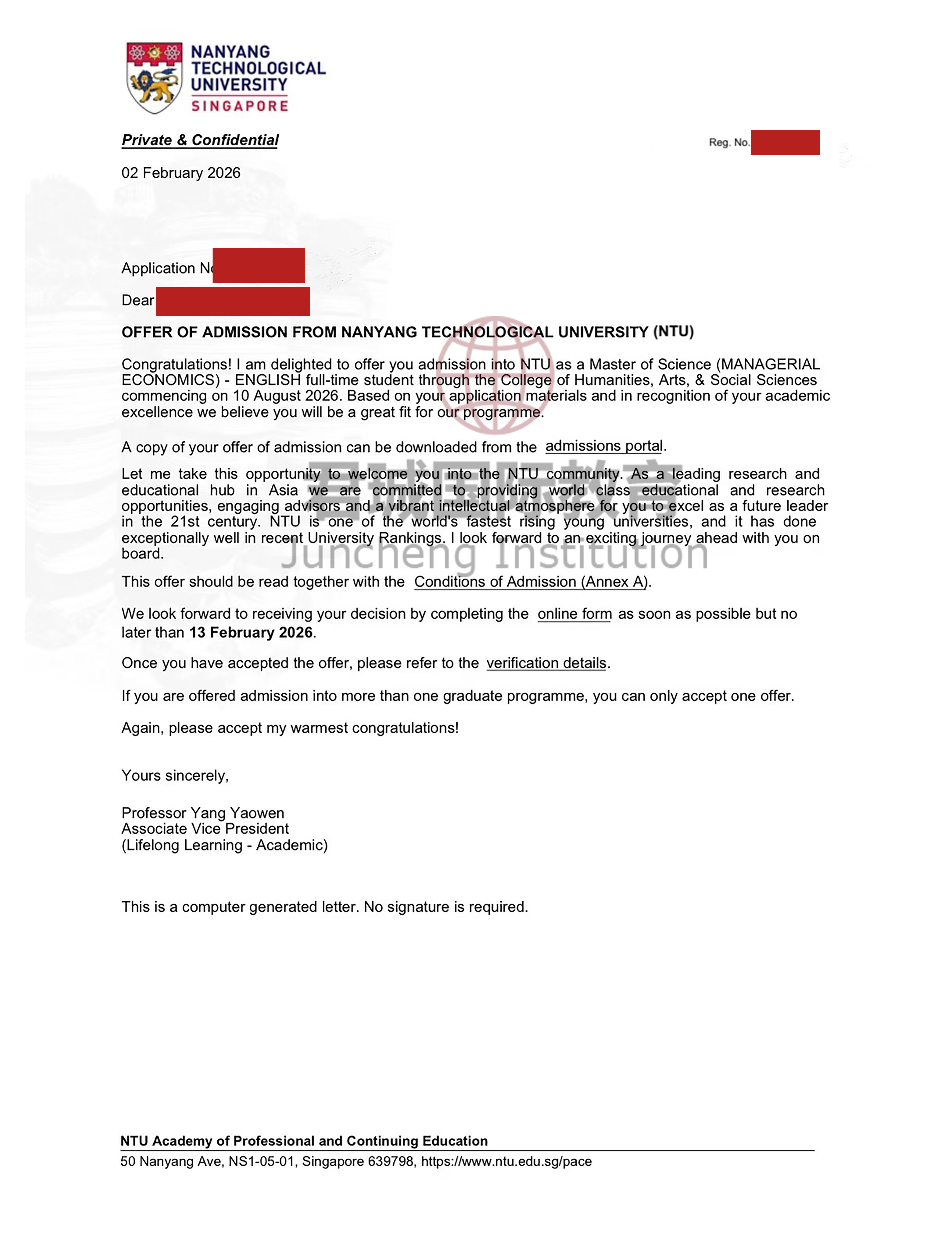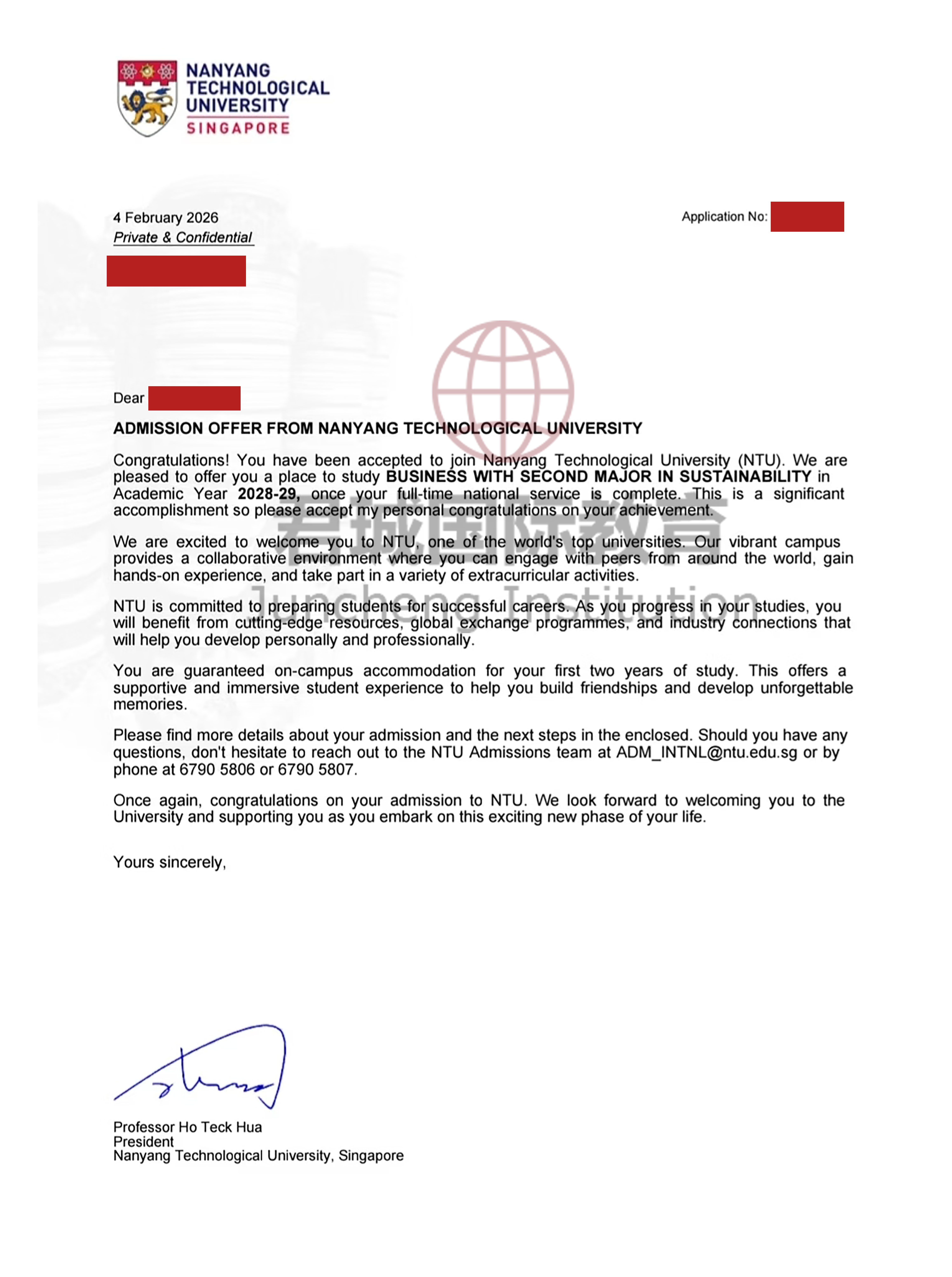 录取Offer:南洋理工大学 Nanyang Technological University, Singapore