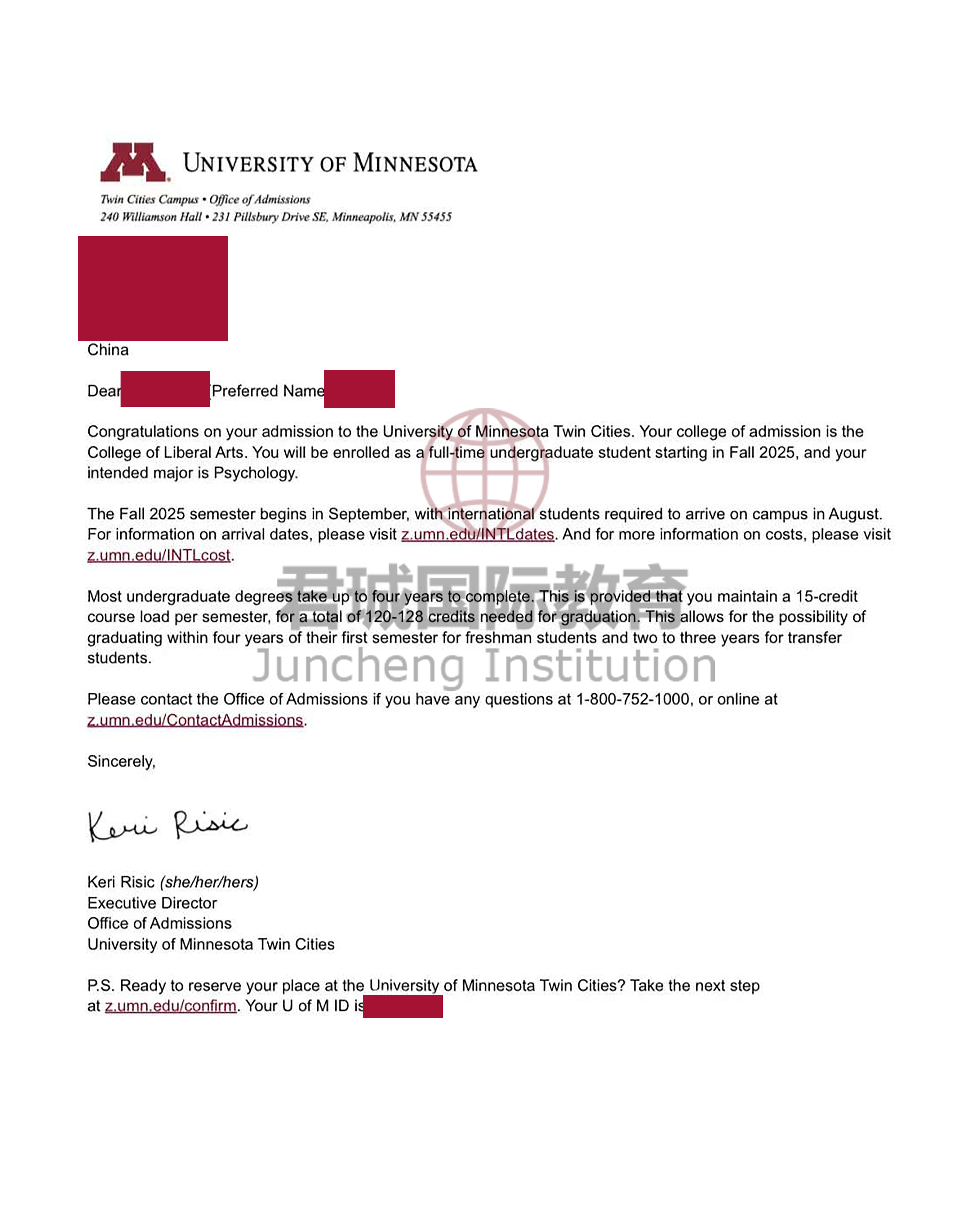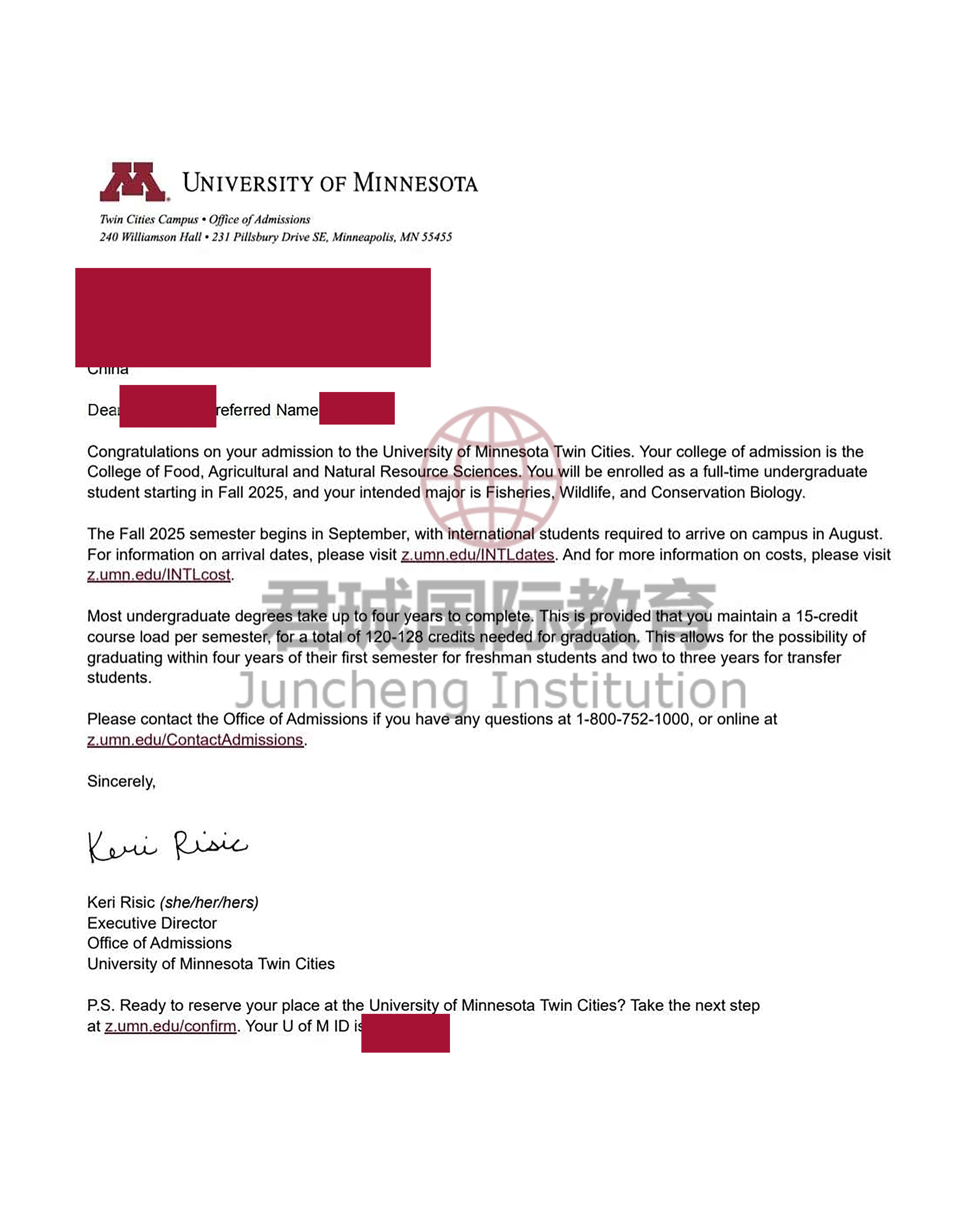 录取Offer:明尼苏达大学双城分校 University of Minnesota Twin Cities