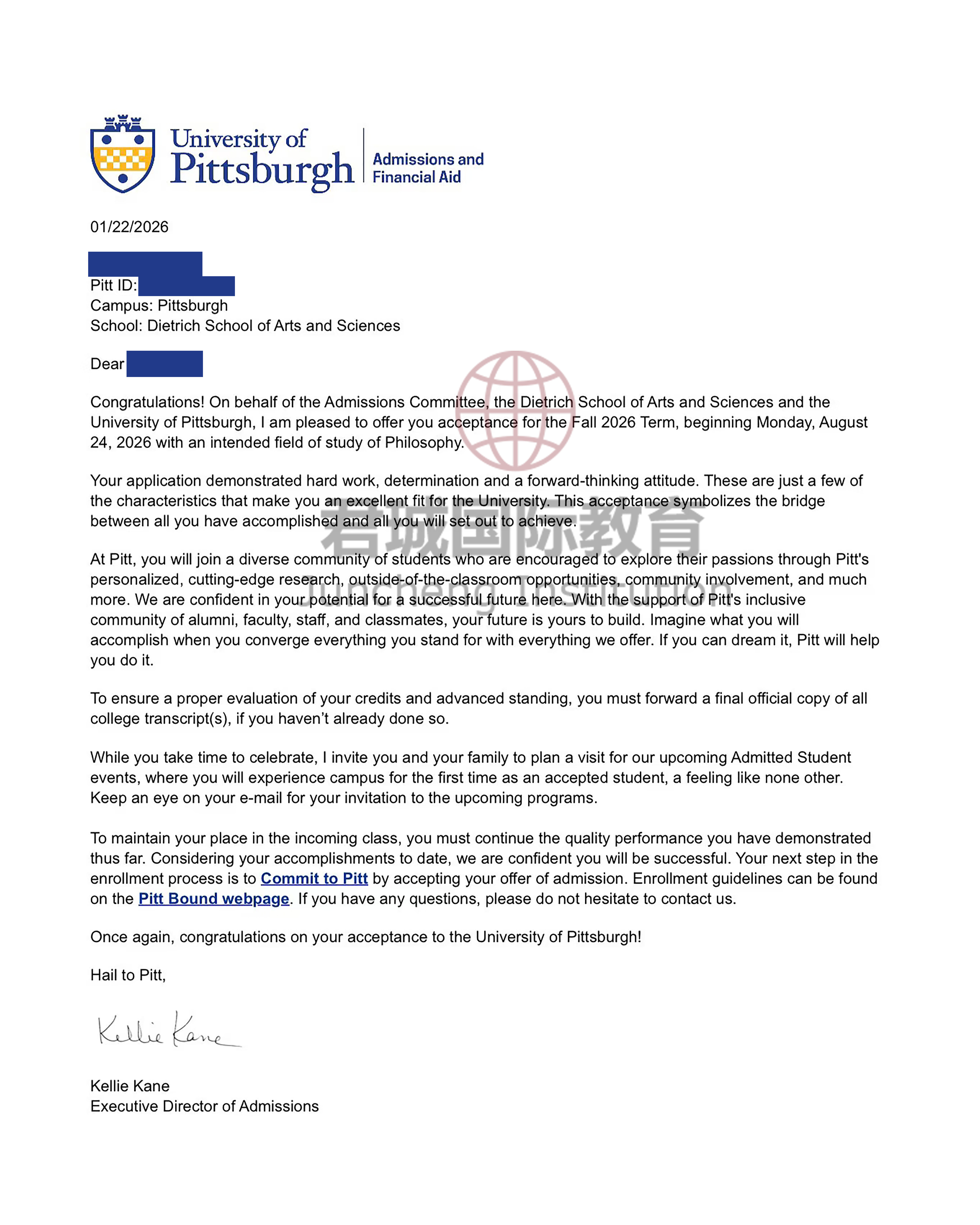 录取Offer:匹兹堡大学 University of Pittsburgh