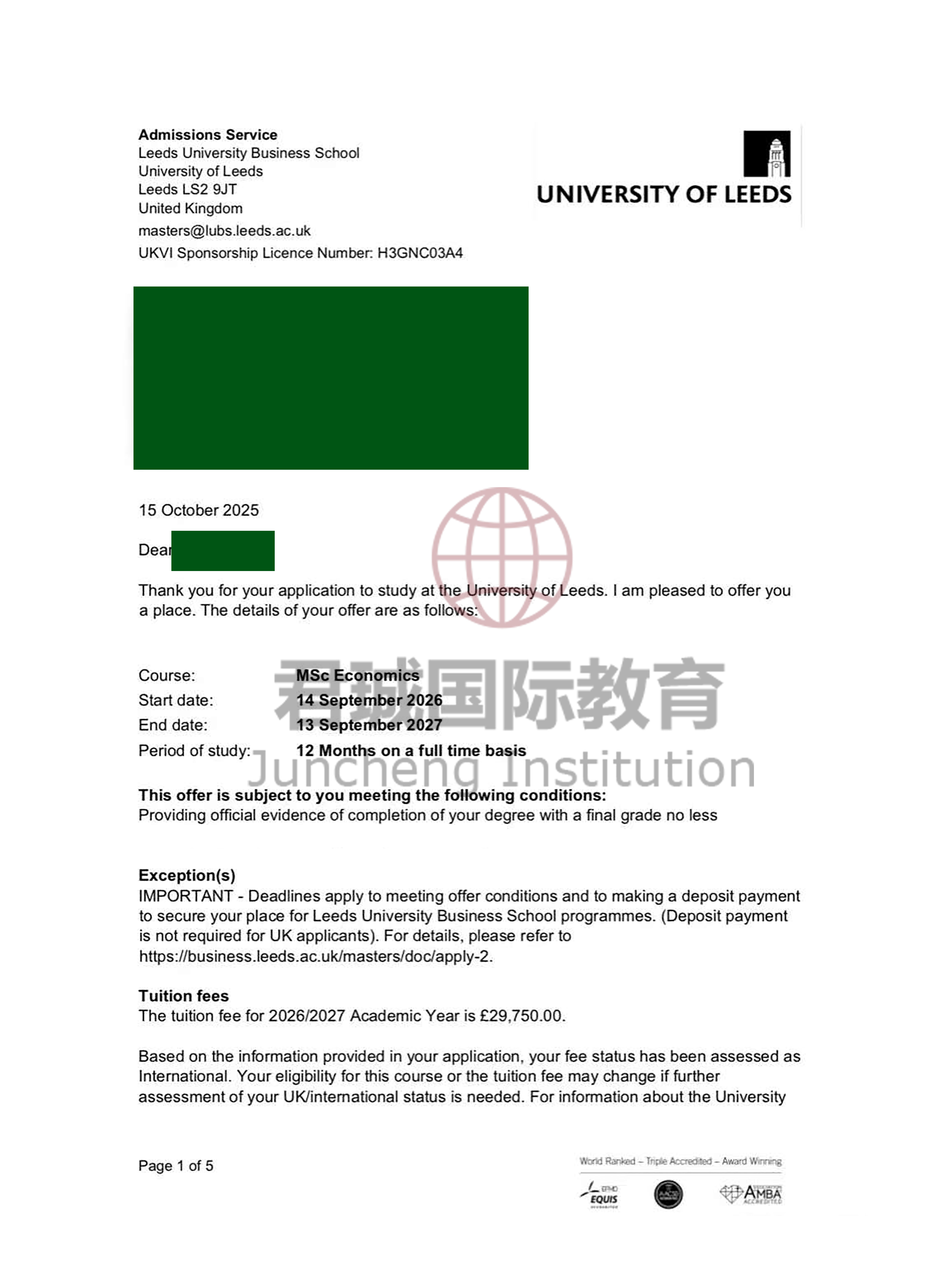 录取Offer:赫瑞瓦特大学 Heriot-Watt University