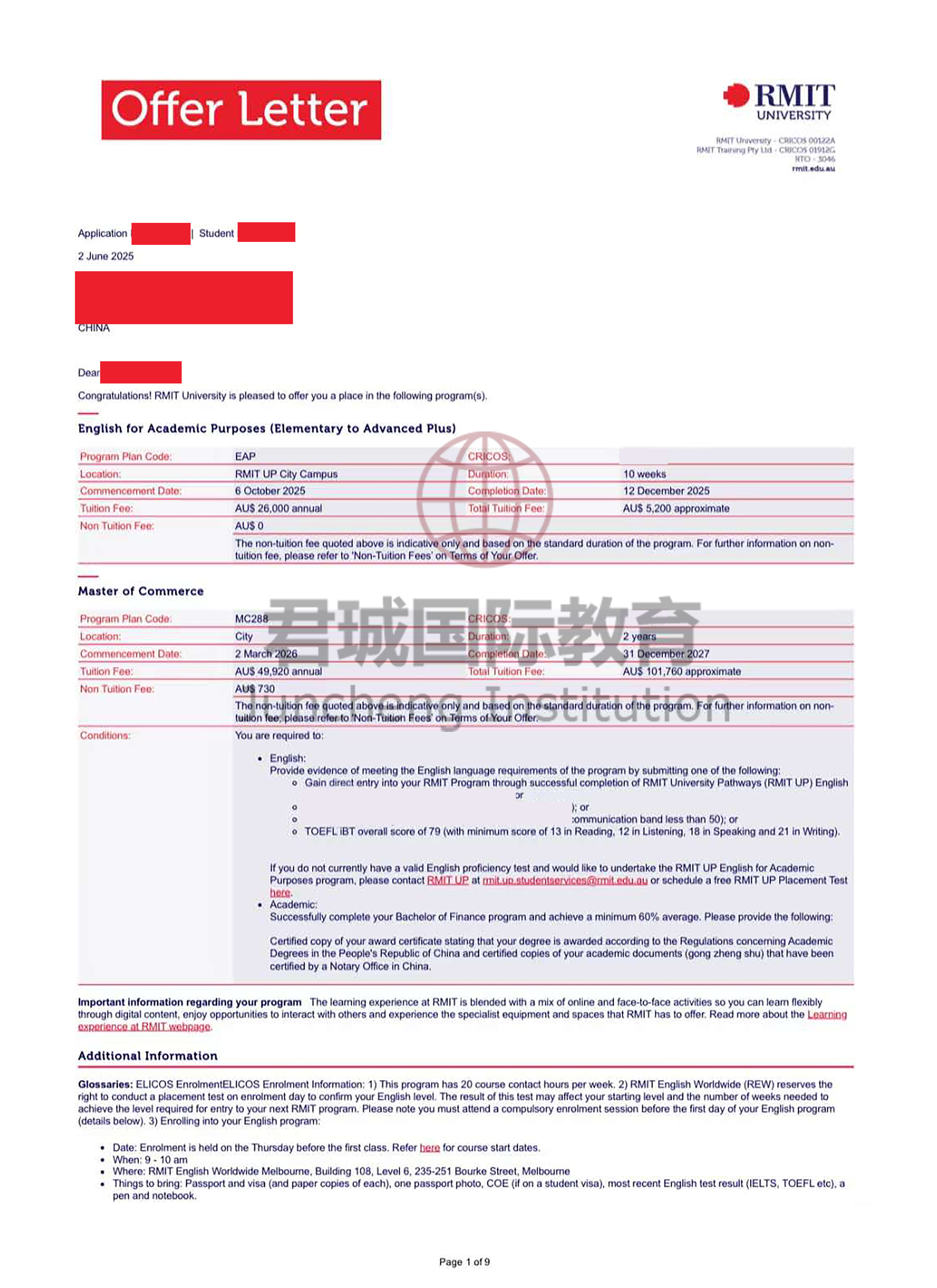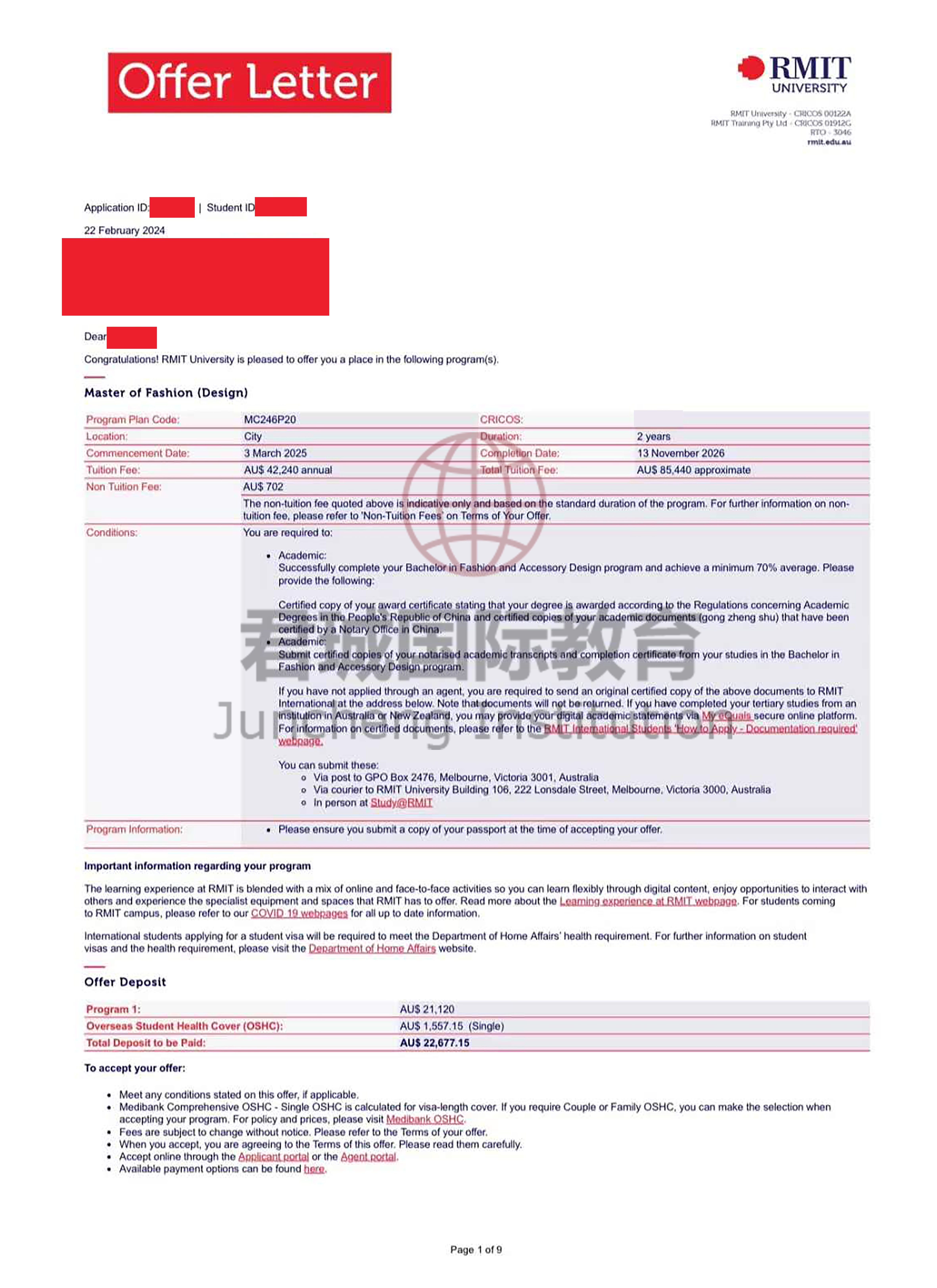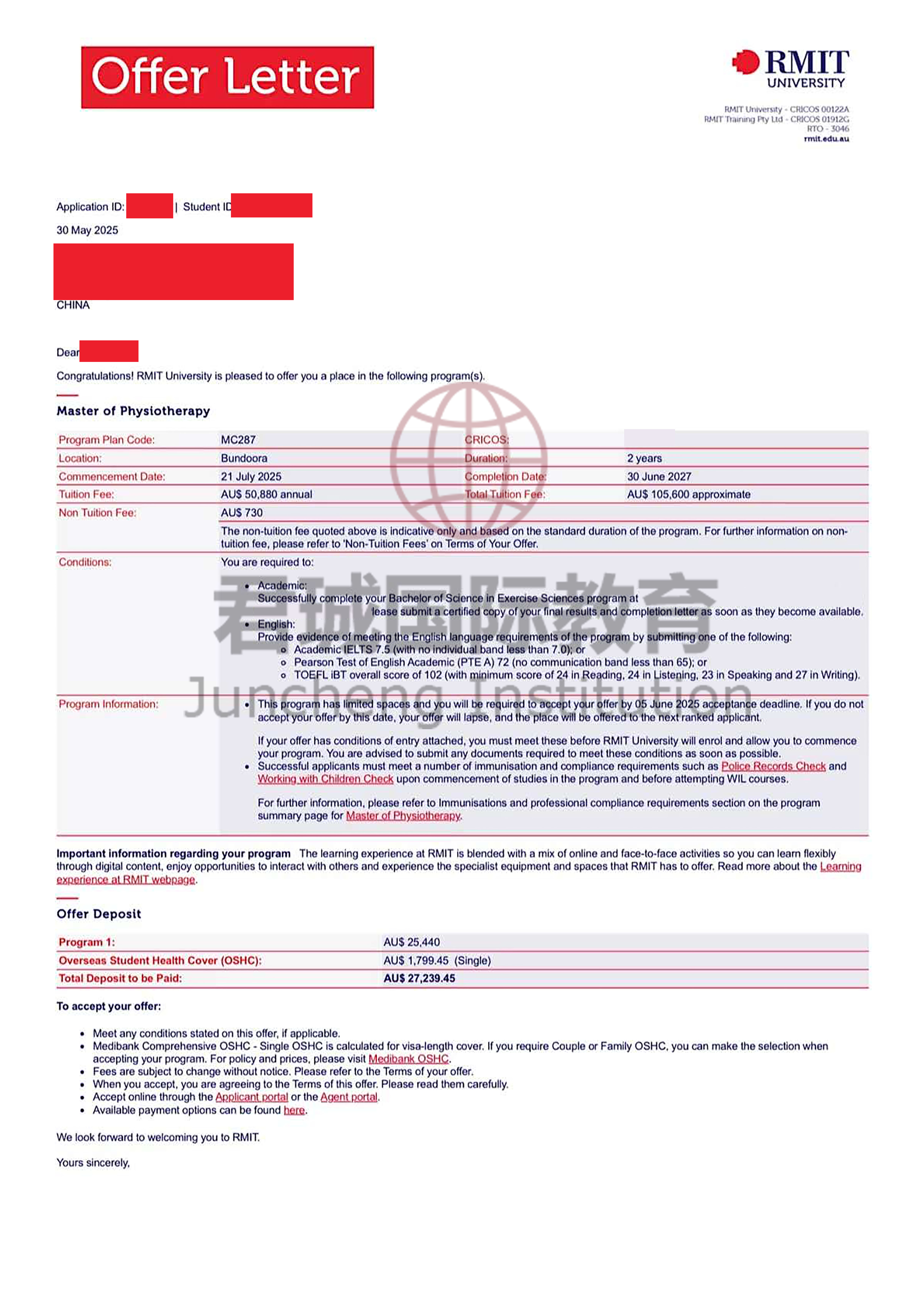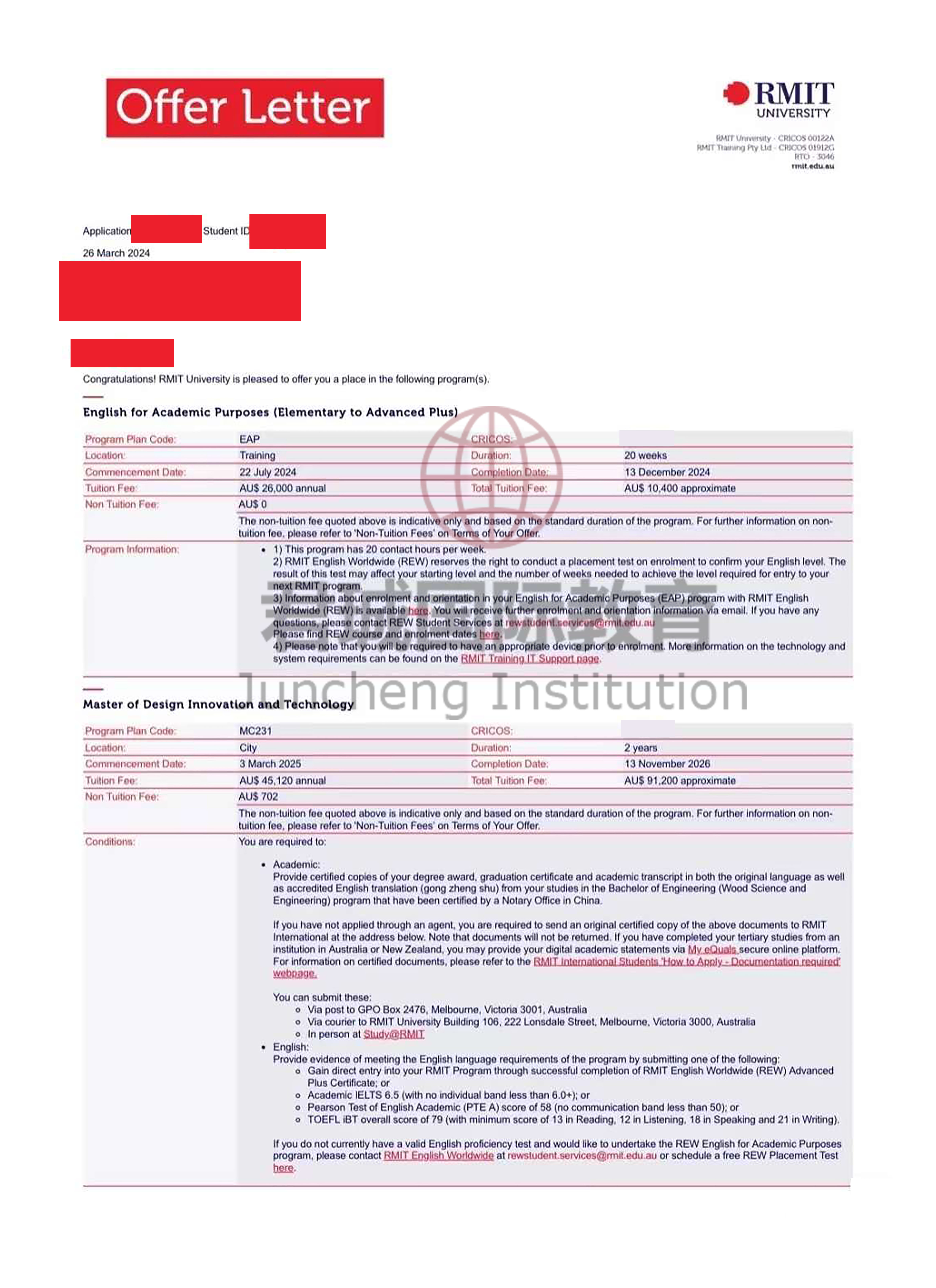 录取Offer:皇家墨尔本理工大学 Royal Melbourne Institute of Technology
