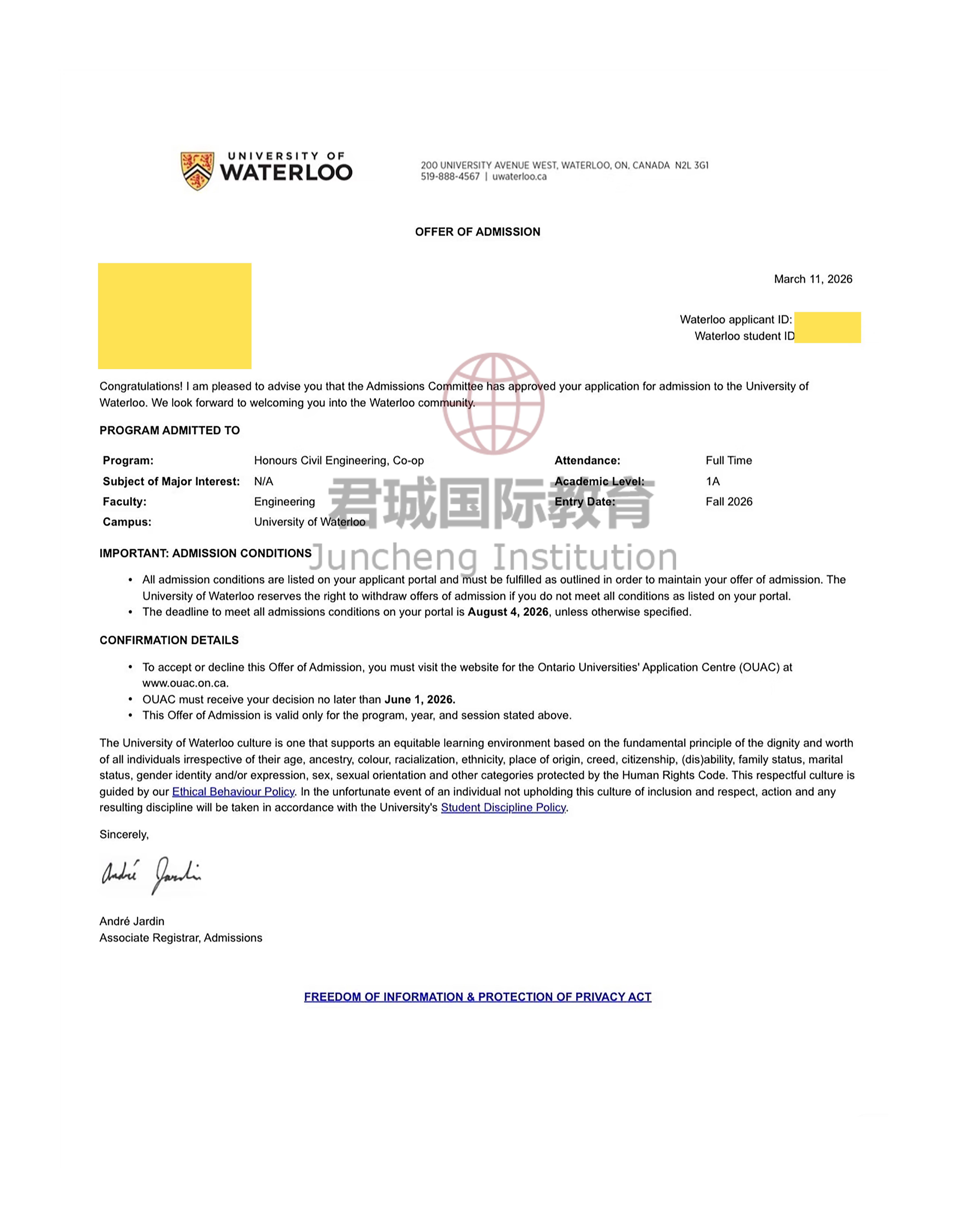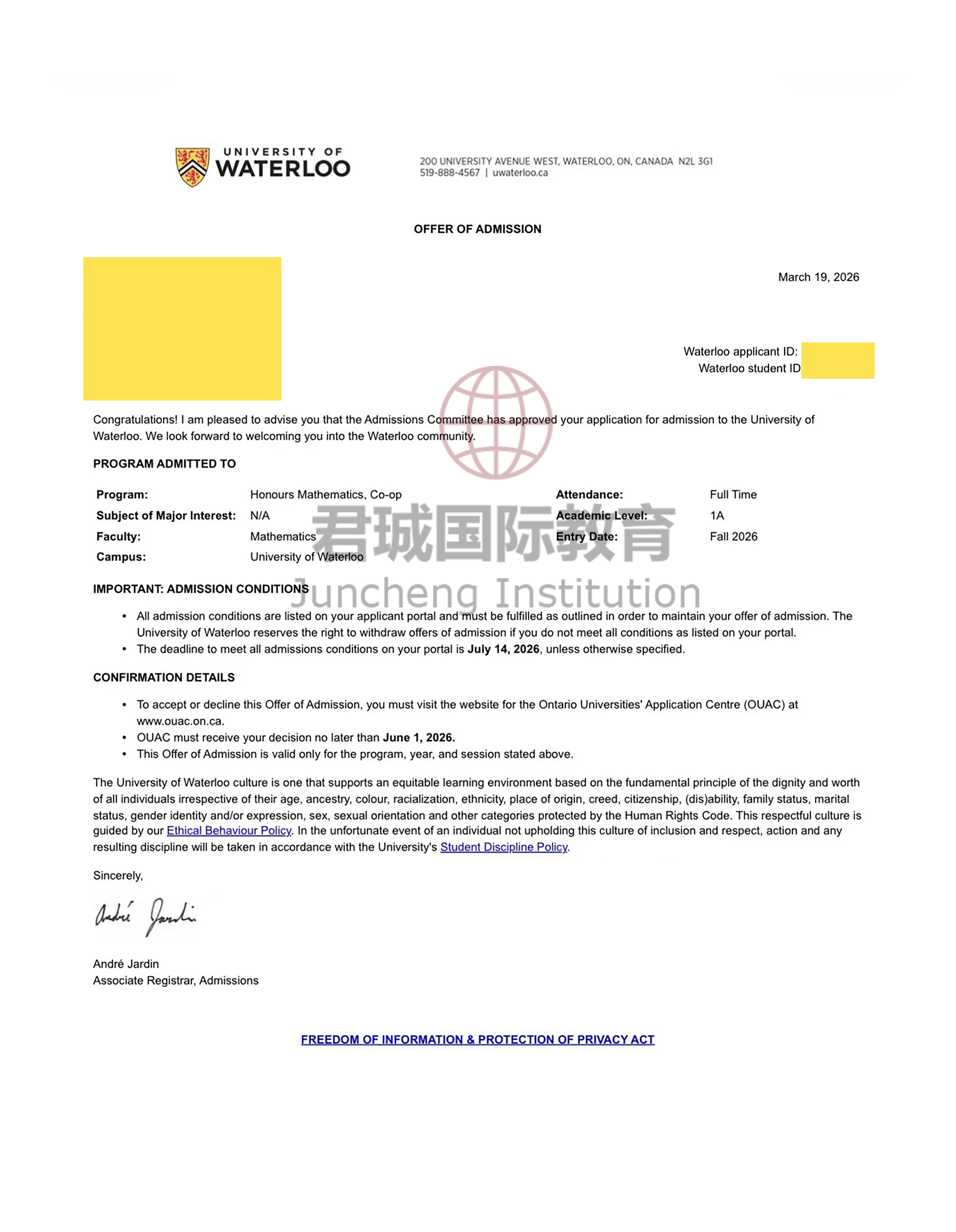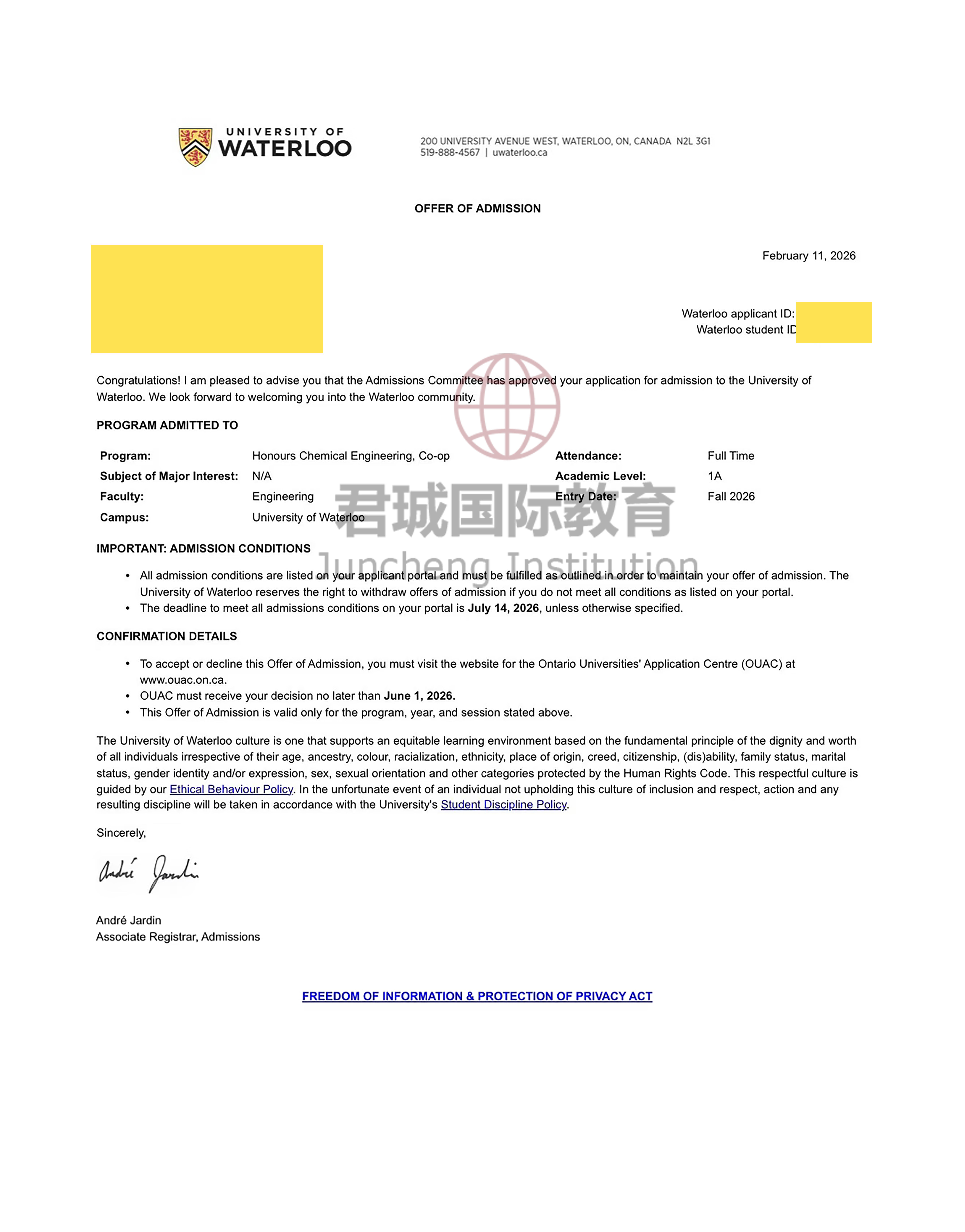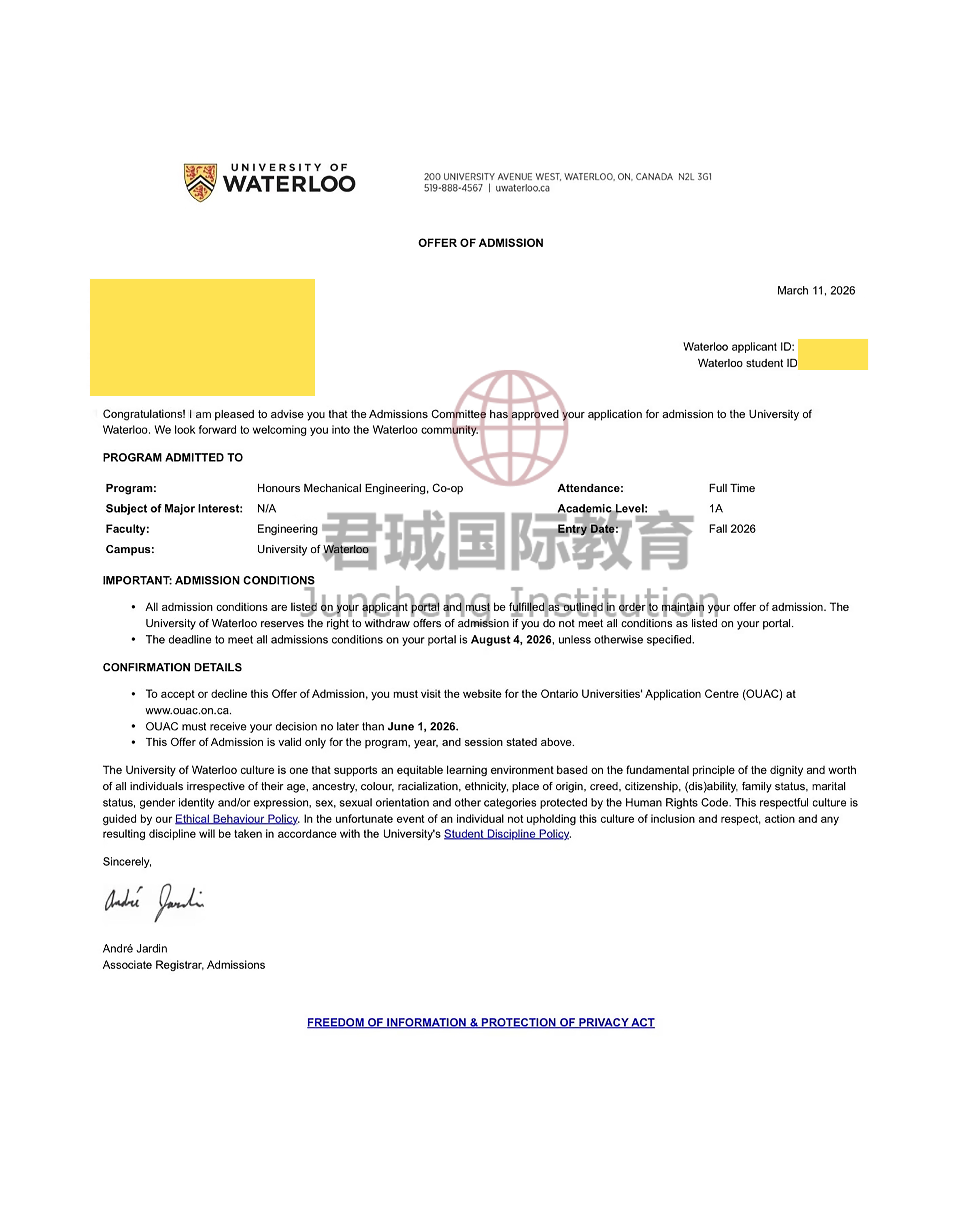 录取Offer:滑铁卢大学 University of Waterloo