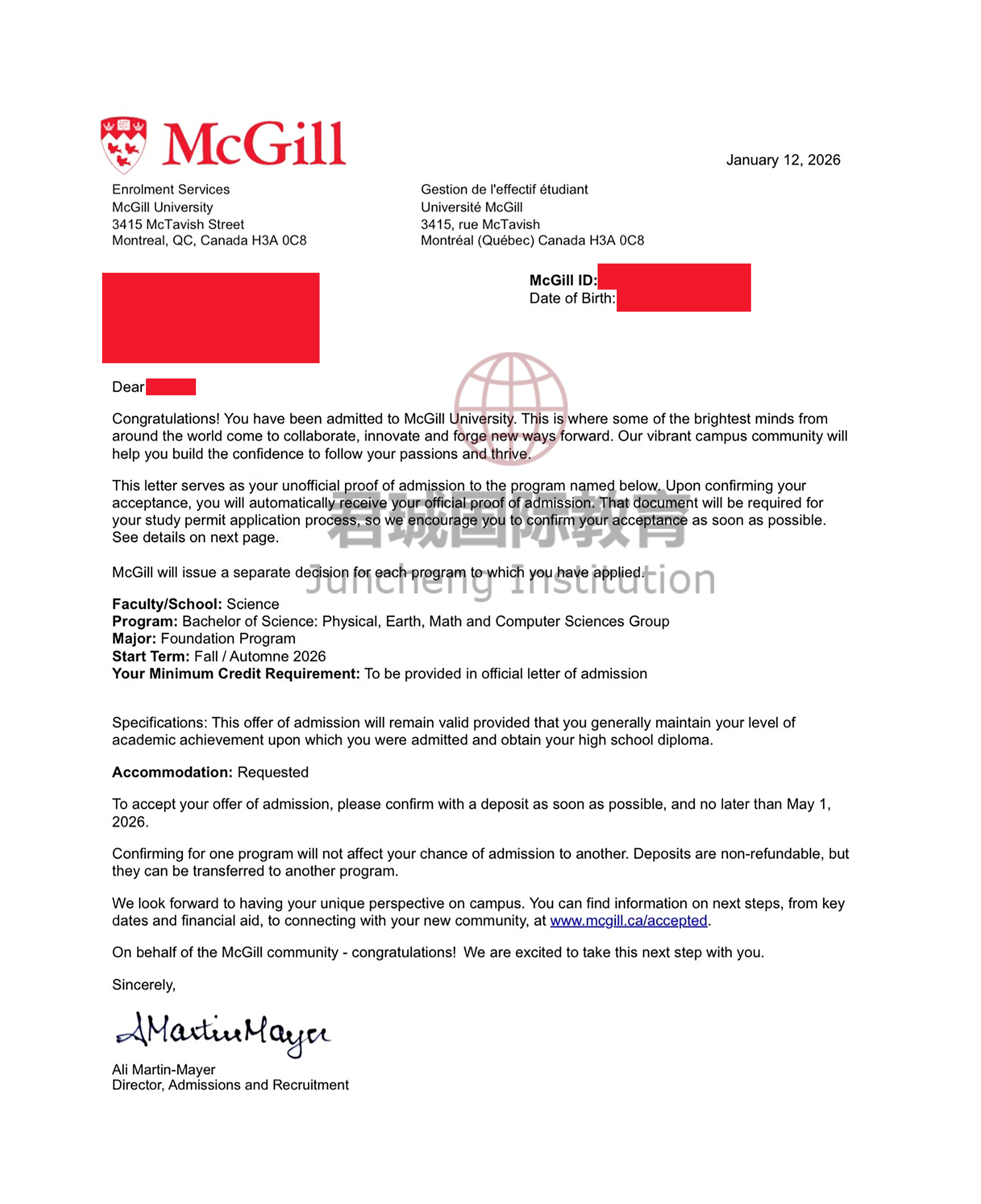 录取Offer:加拿大麦吉尔大学 McGill University