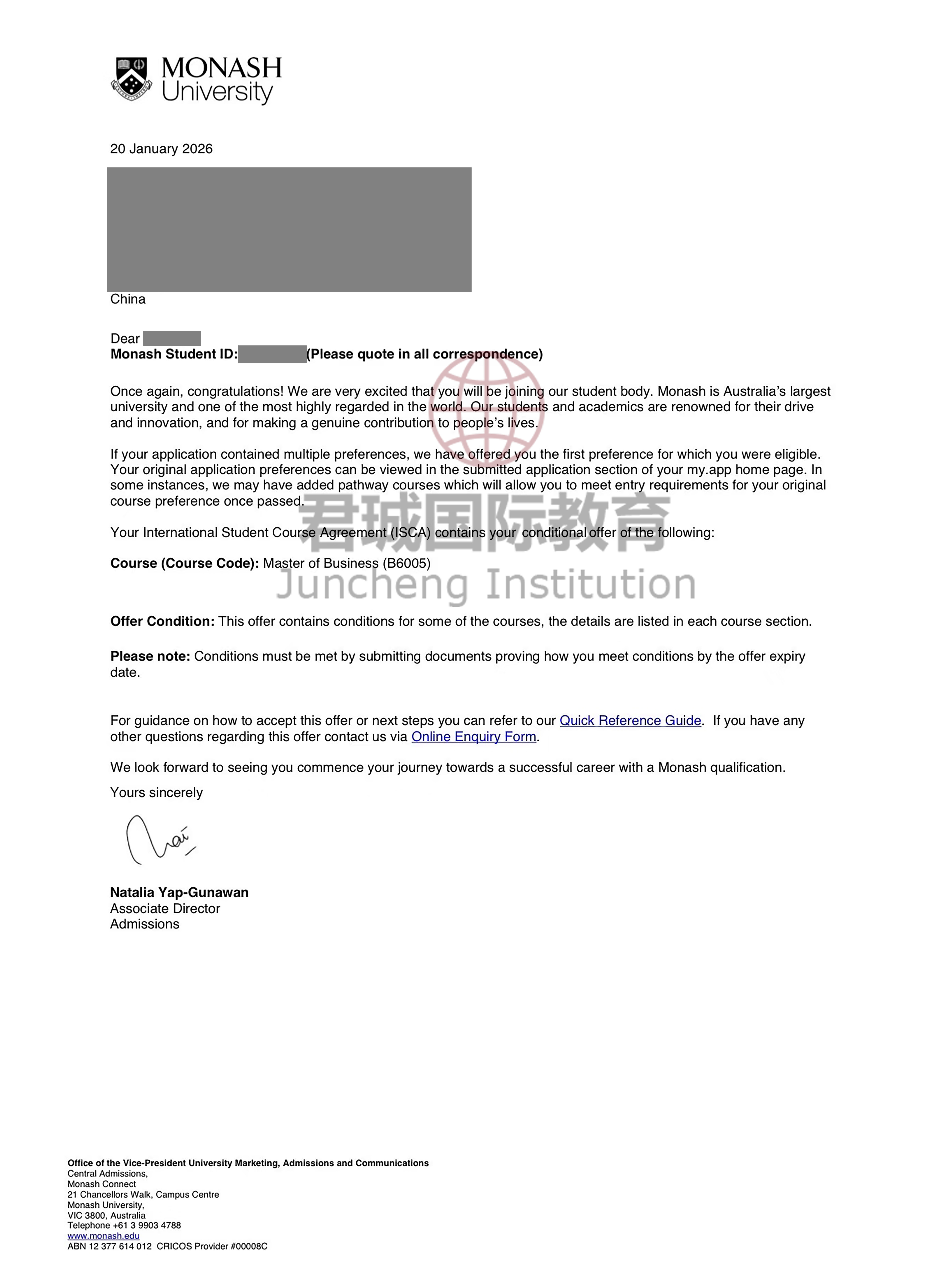录取Offer:澳洲蒙纳士大学 Monash University