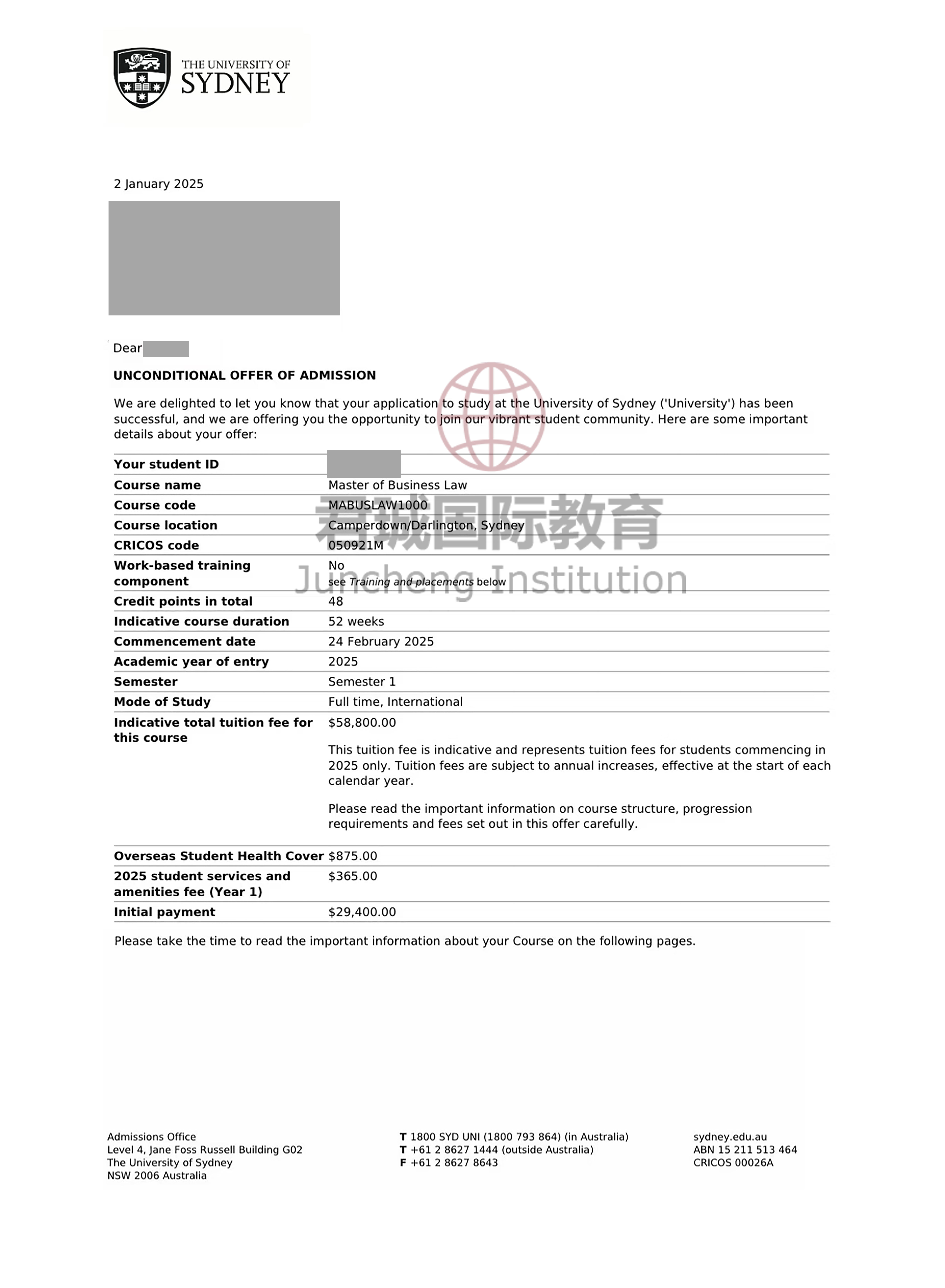 录取Offer:澳大利亚悉尼大学 University of Sydney