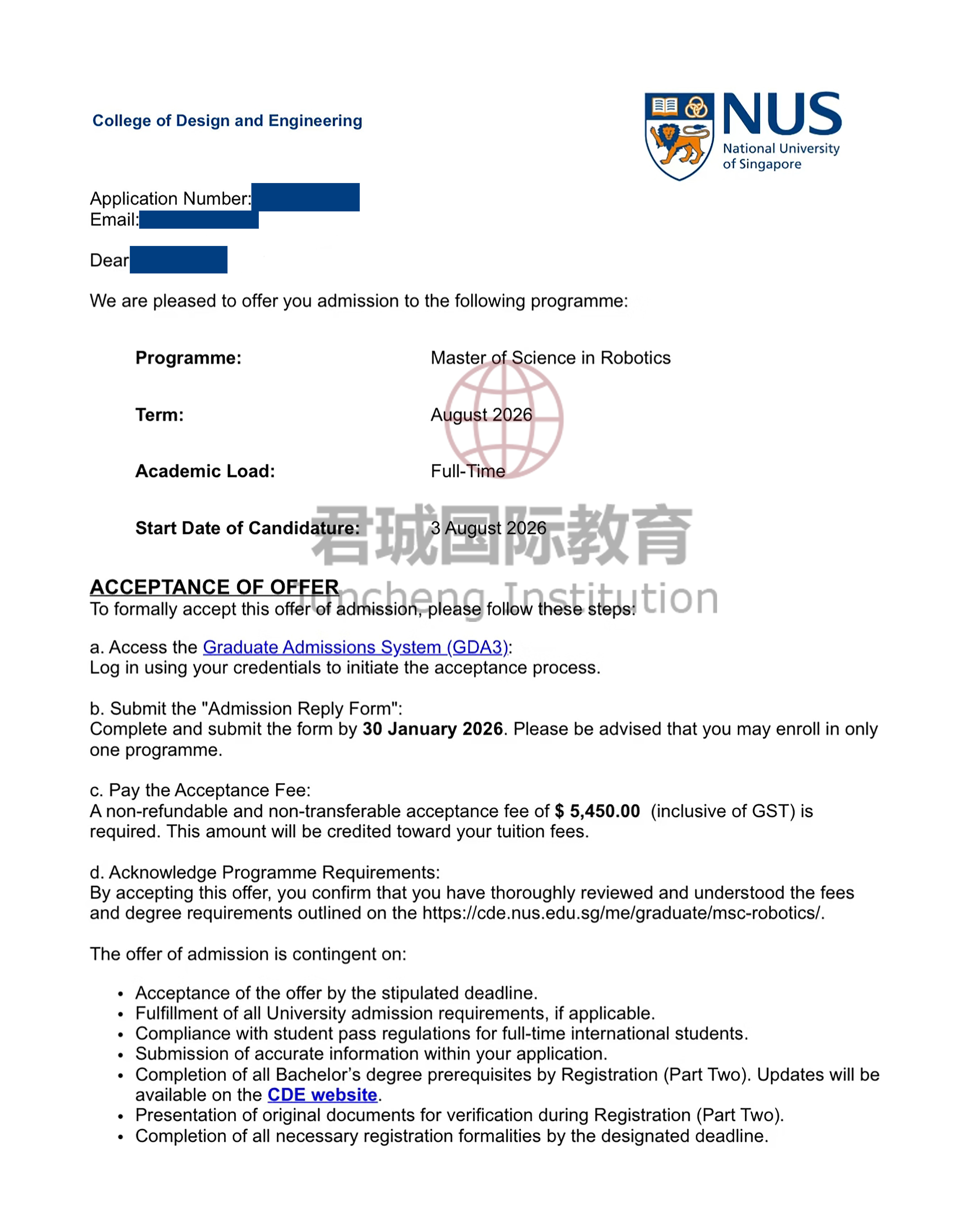 录取Offer:新加坡国立大学 National University of Singapore
