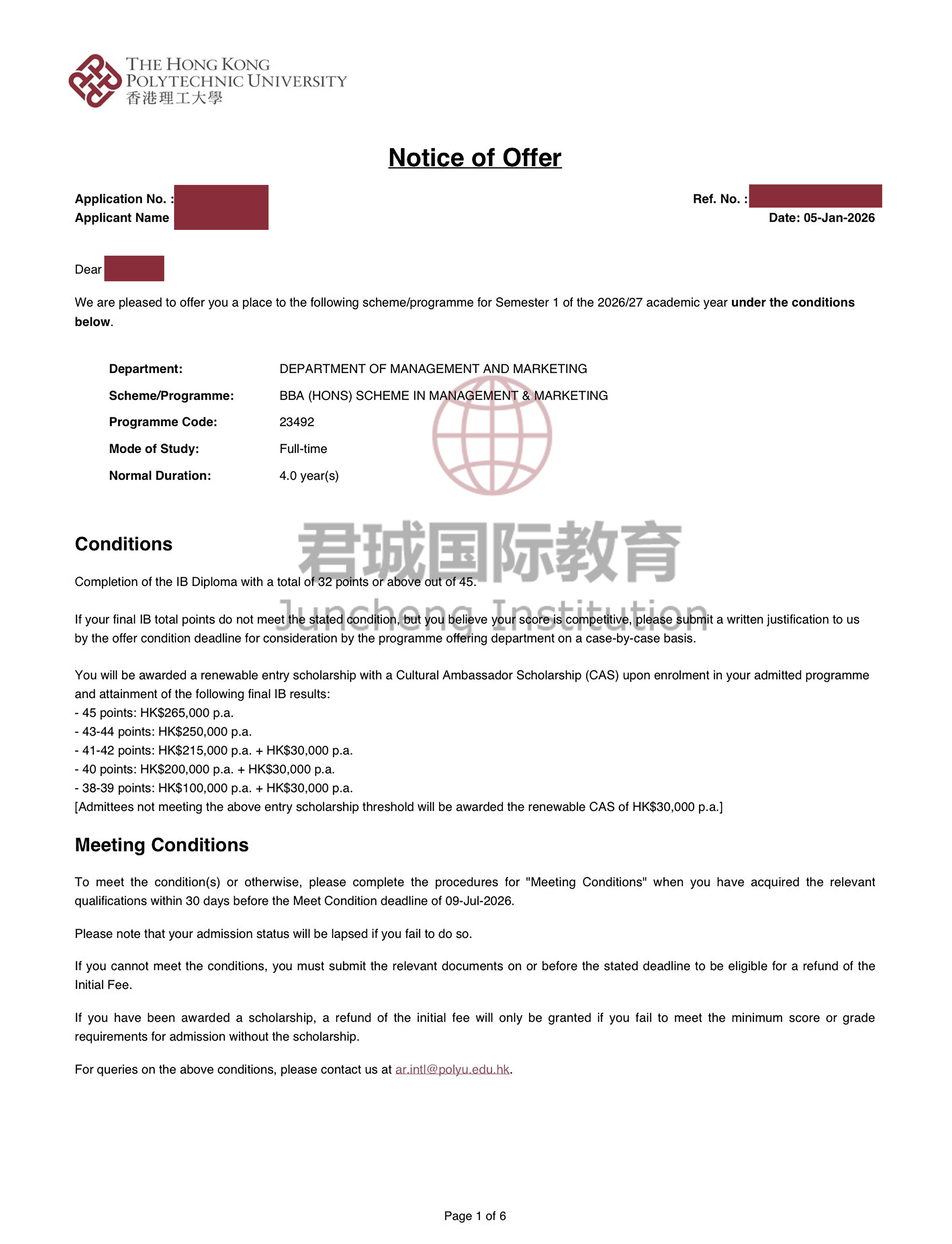 录取Offer:香港理工大学 Hong Kong Polytechnic University