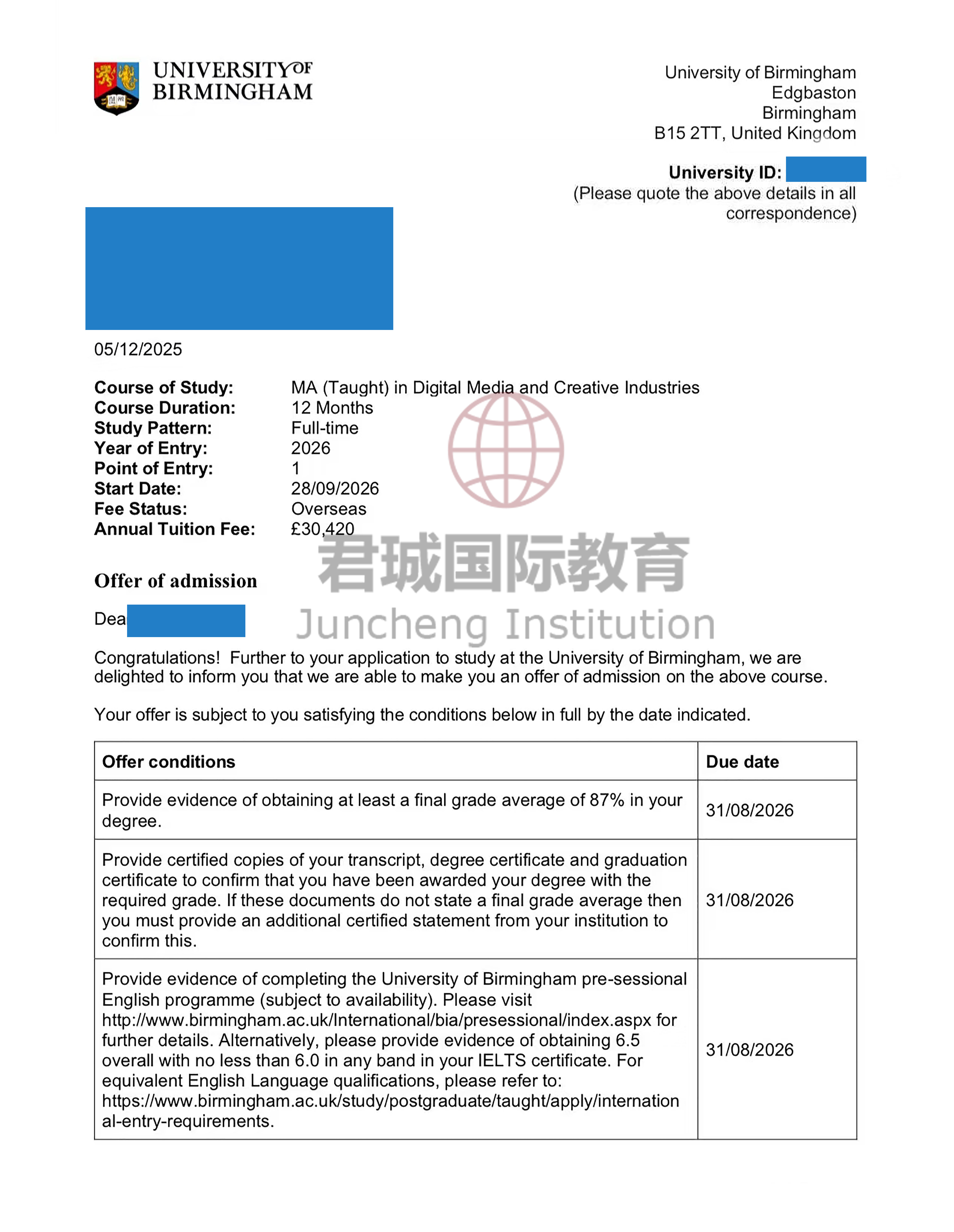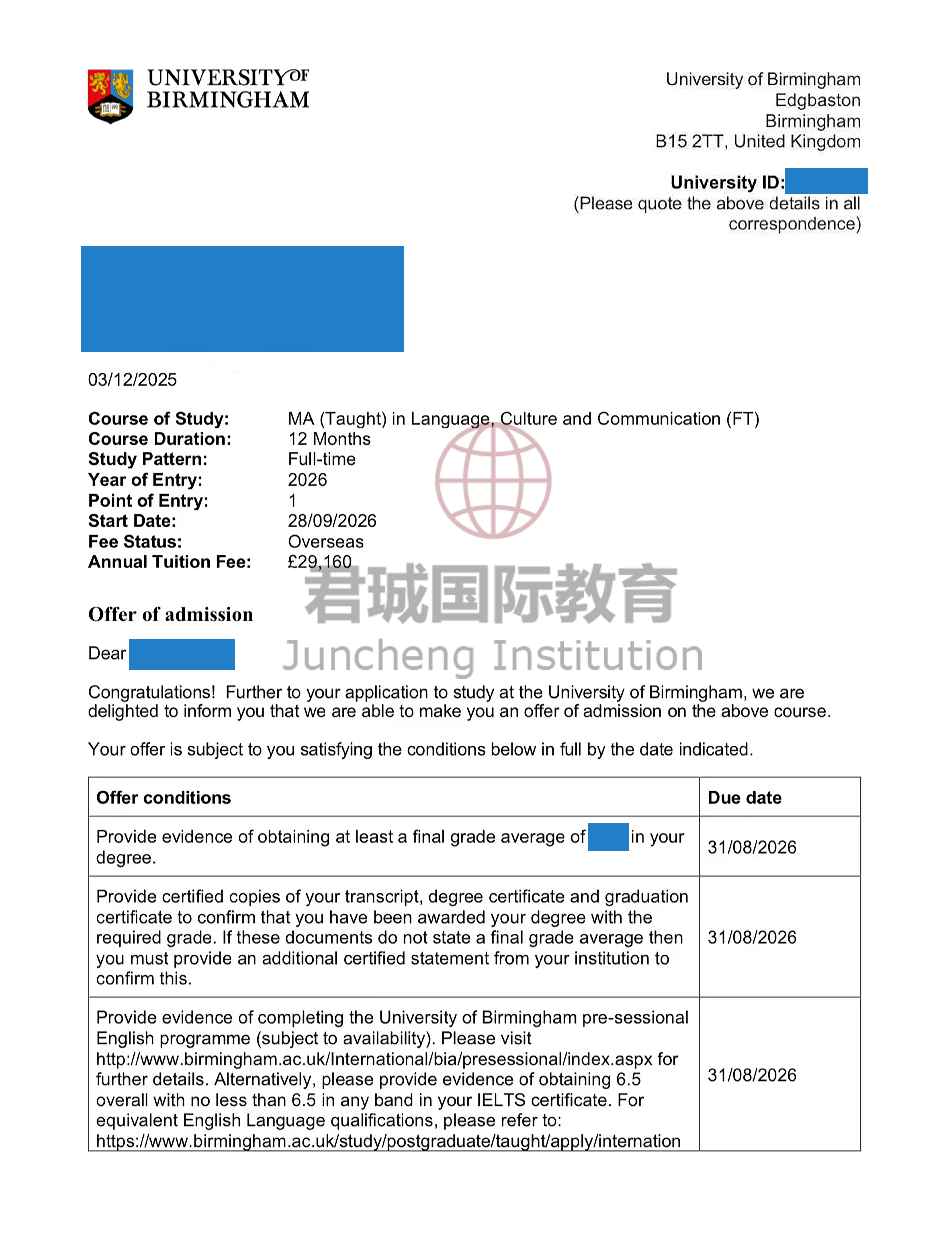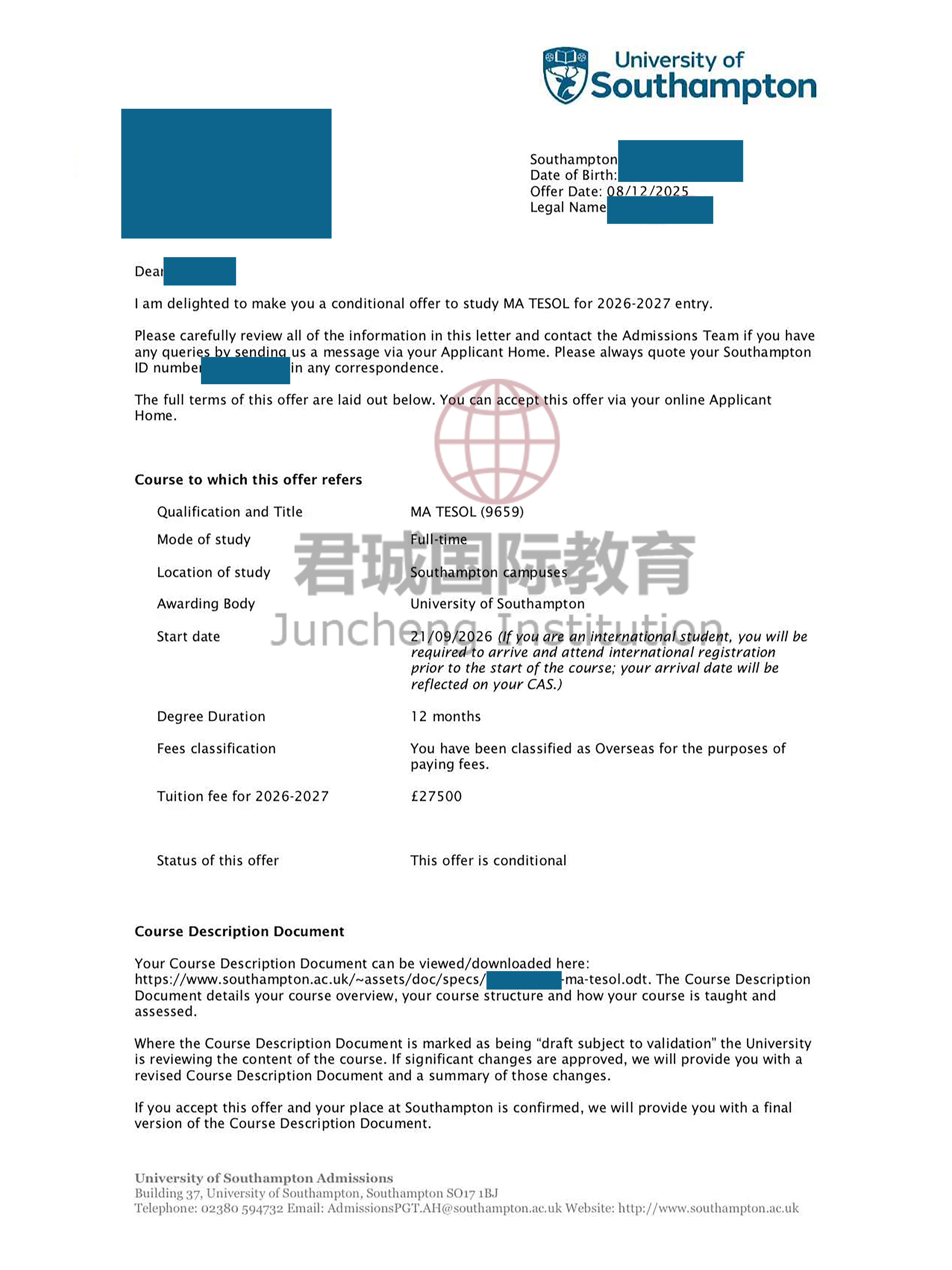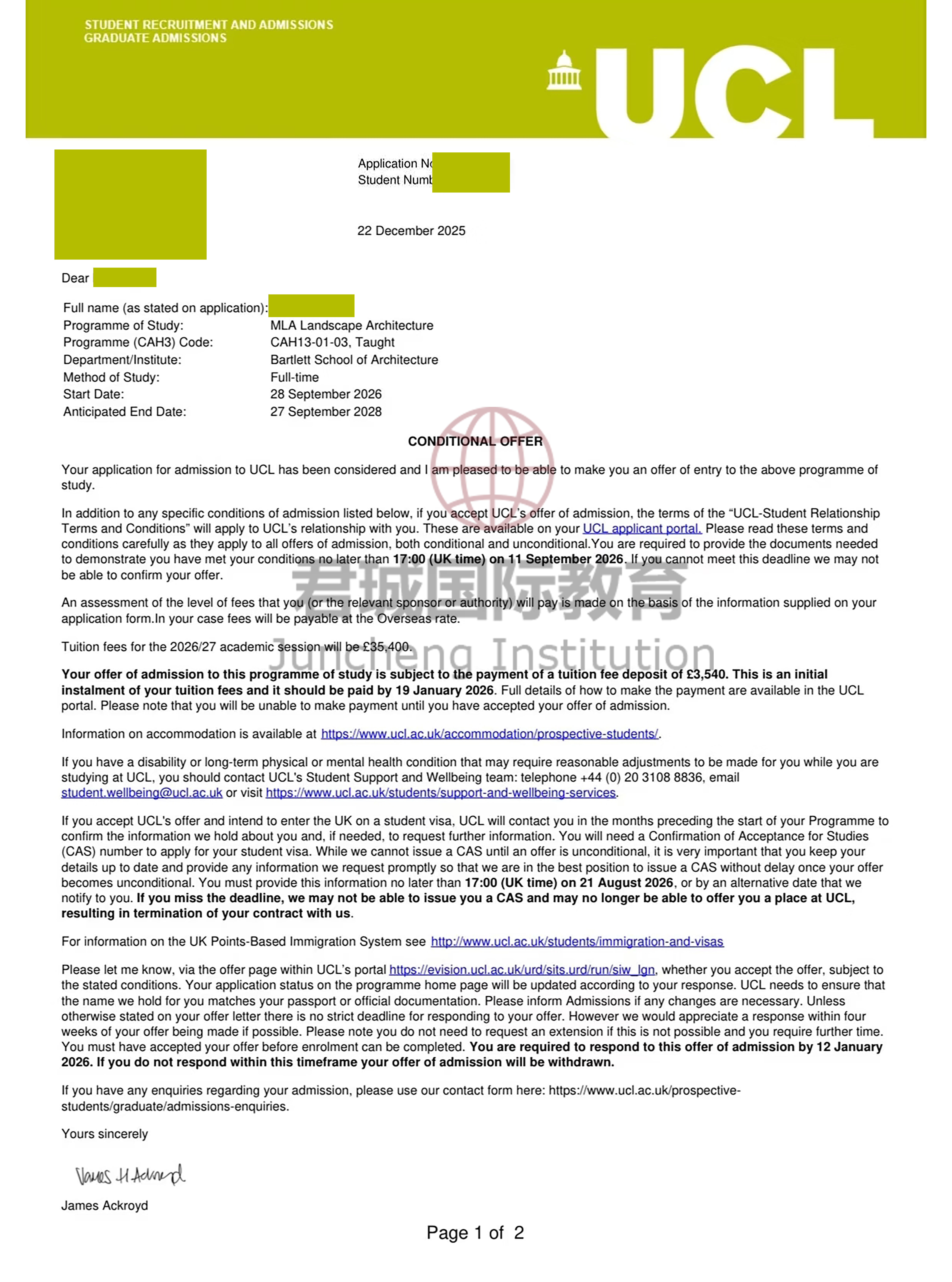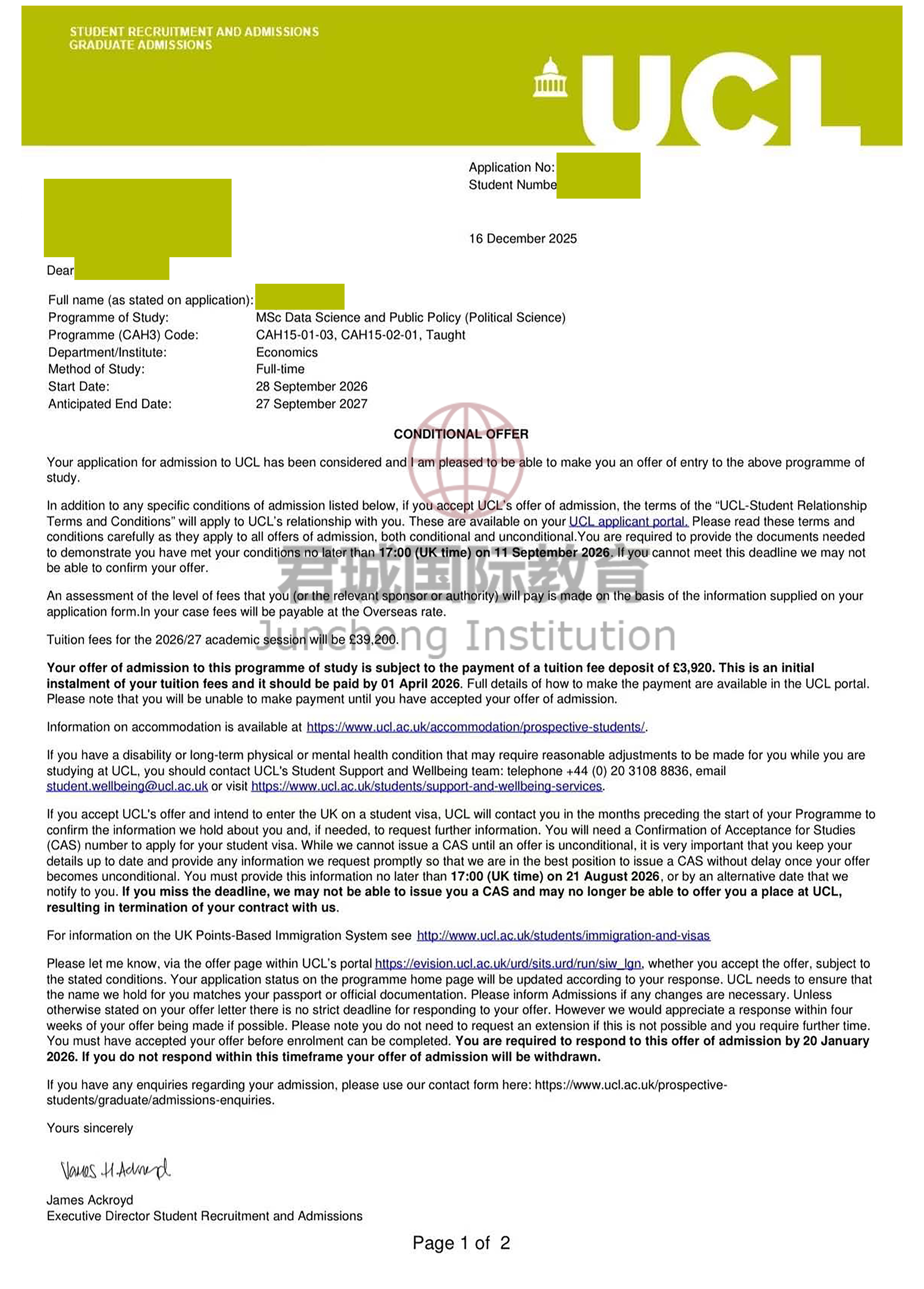 录取Offer:澳大利亚悉尼大学 University of Sydney