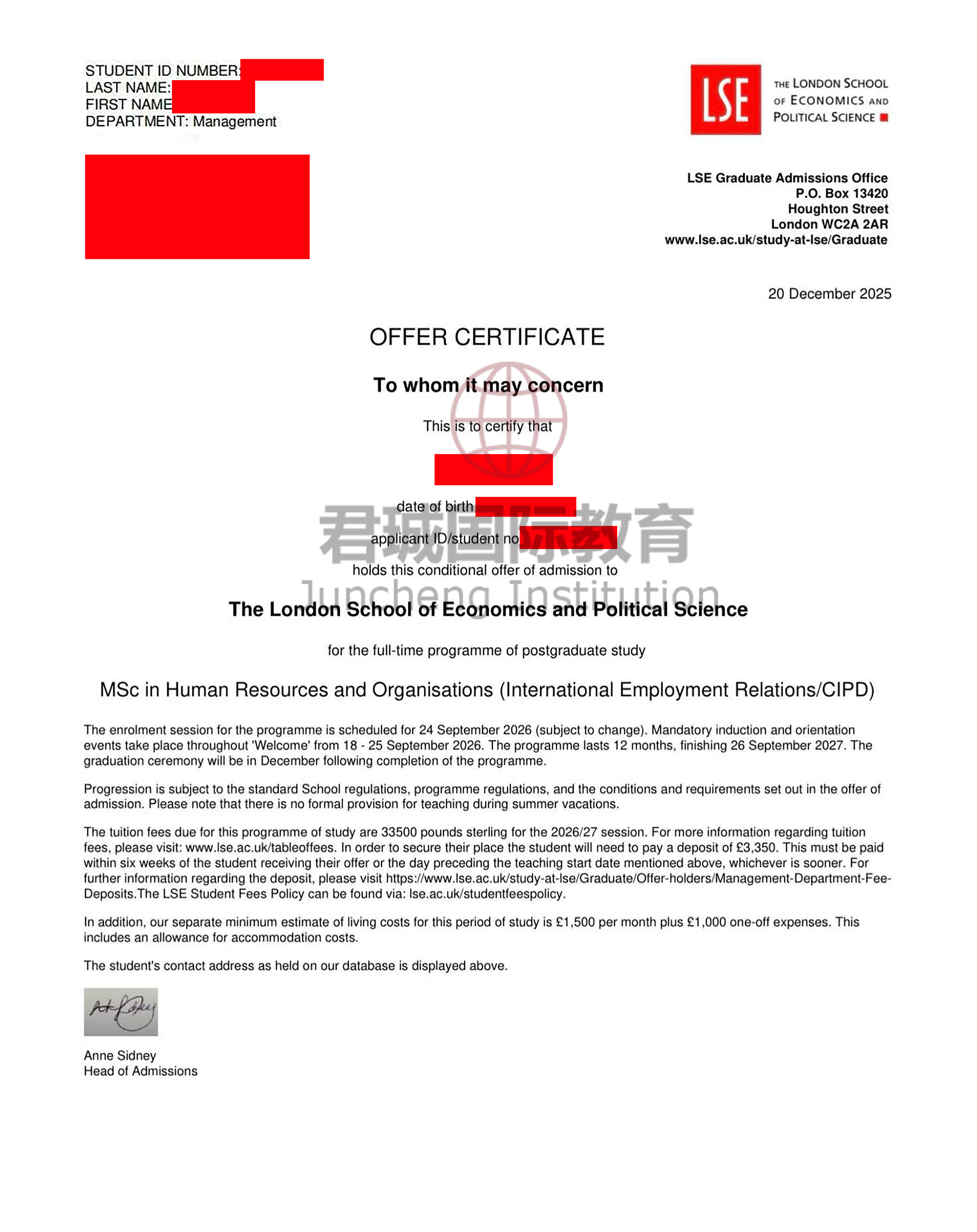 录取Offer:伦敦政经 The London School of Economics and Political Science