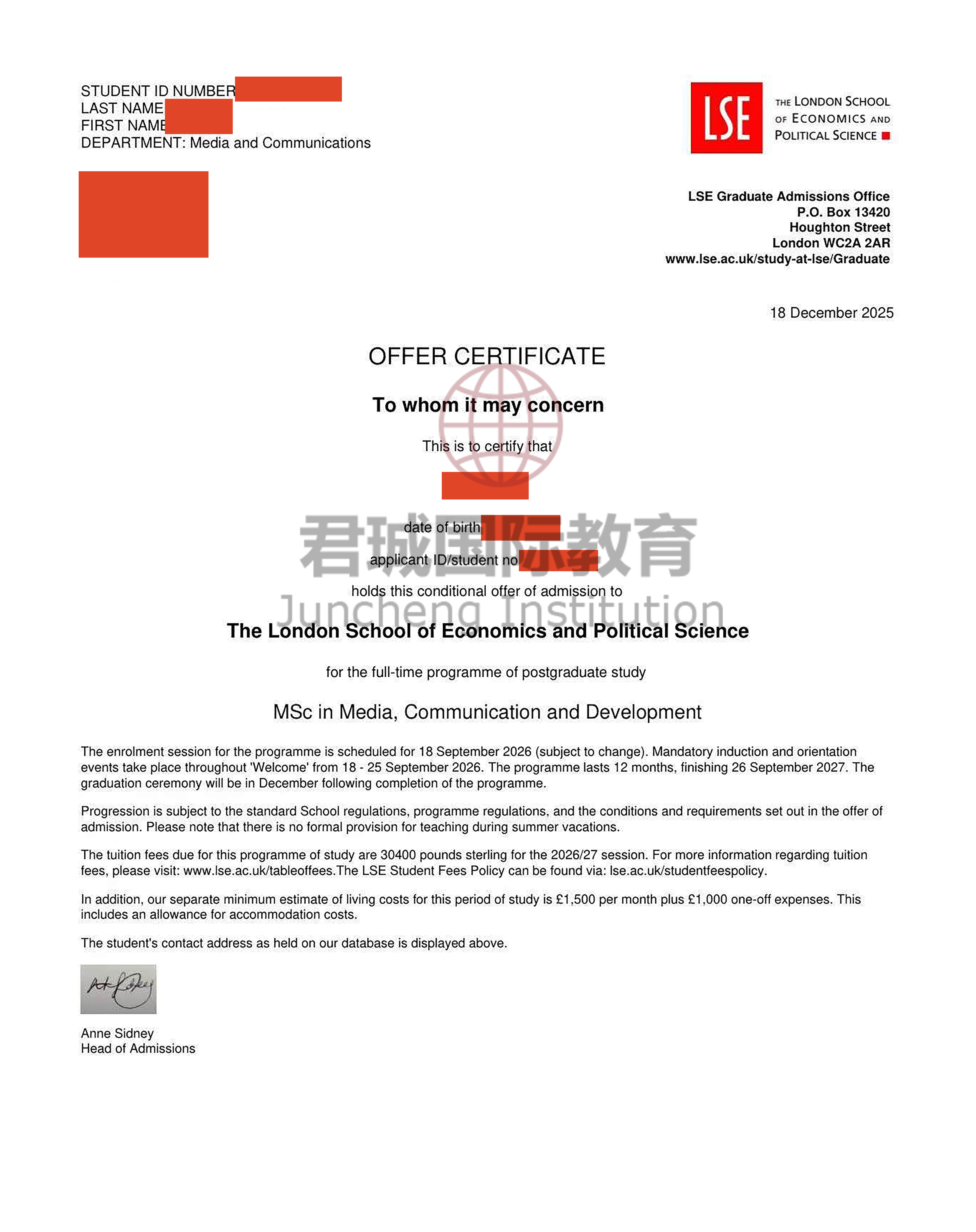 录取Offer:伦敦政经 The London School of Economics and Political Science