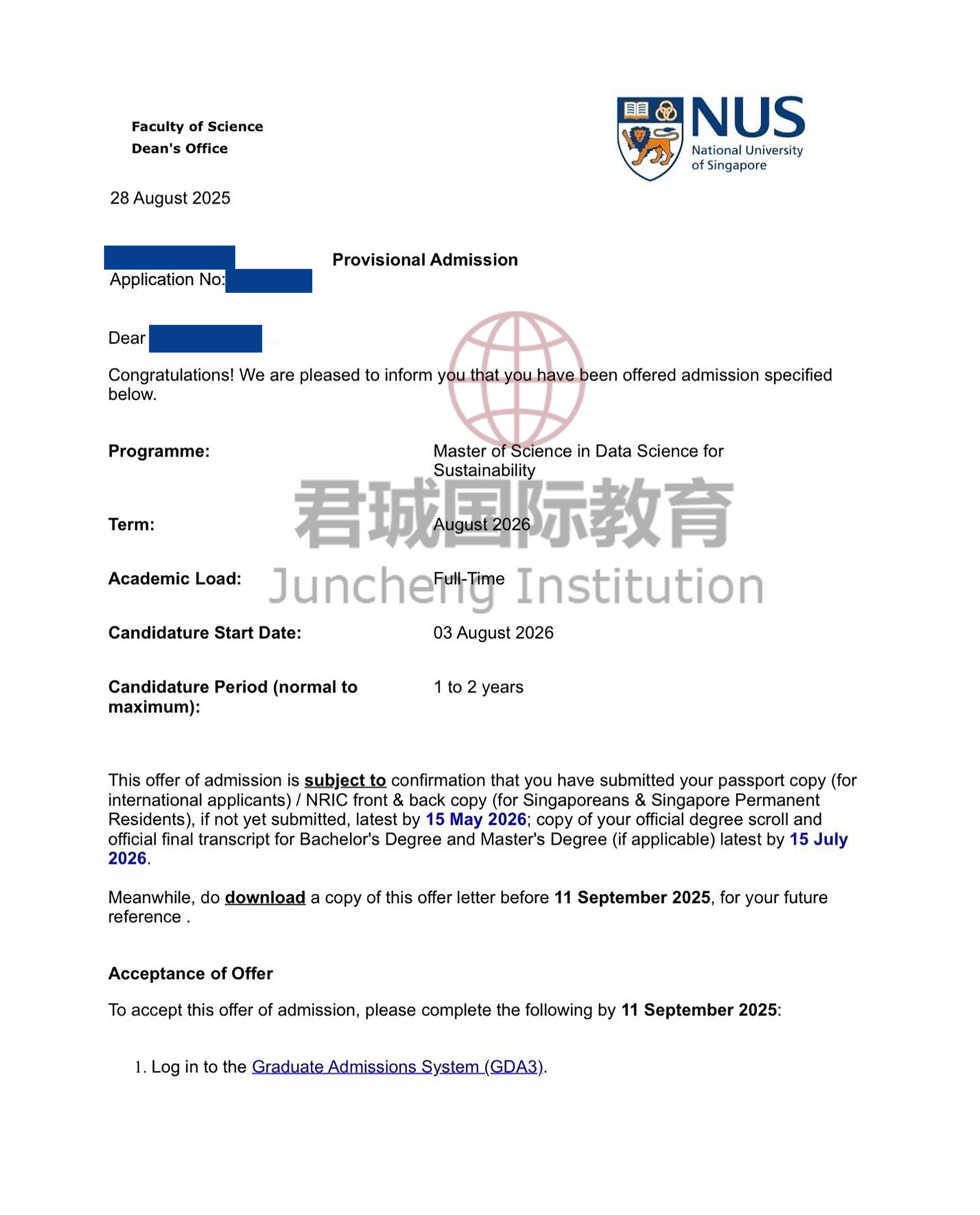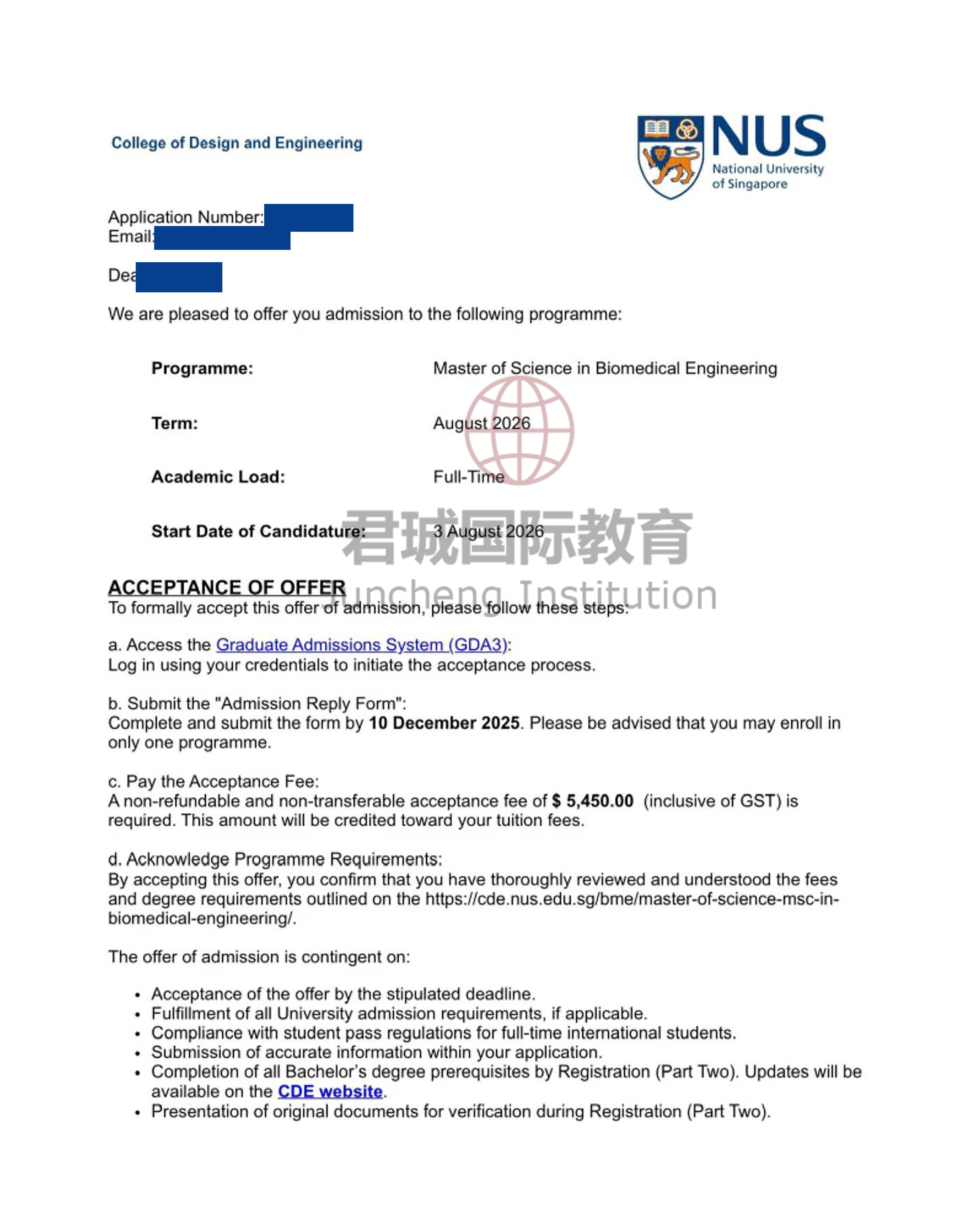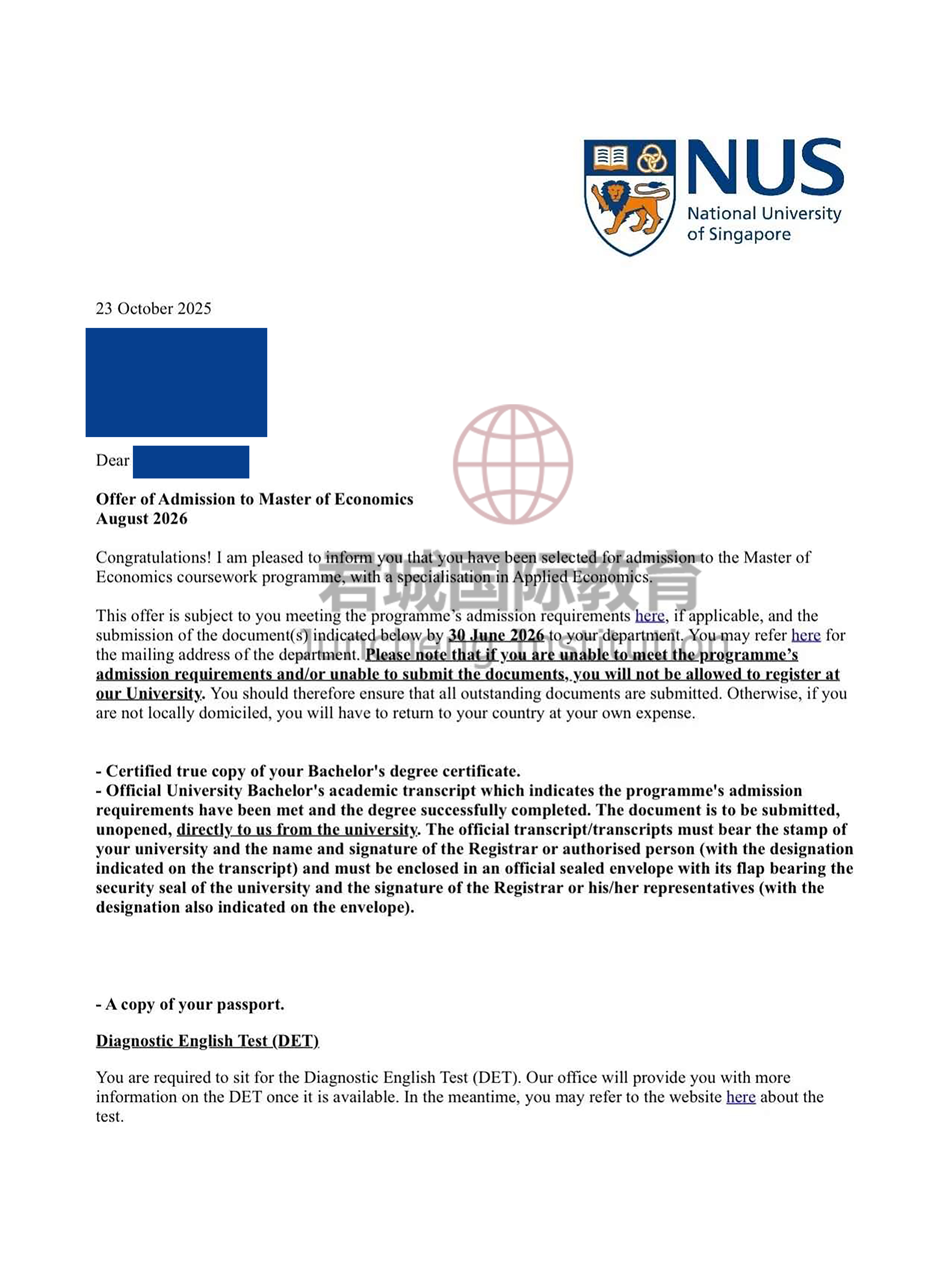 录取Offer:新加坡国立大学 National University of Singapore