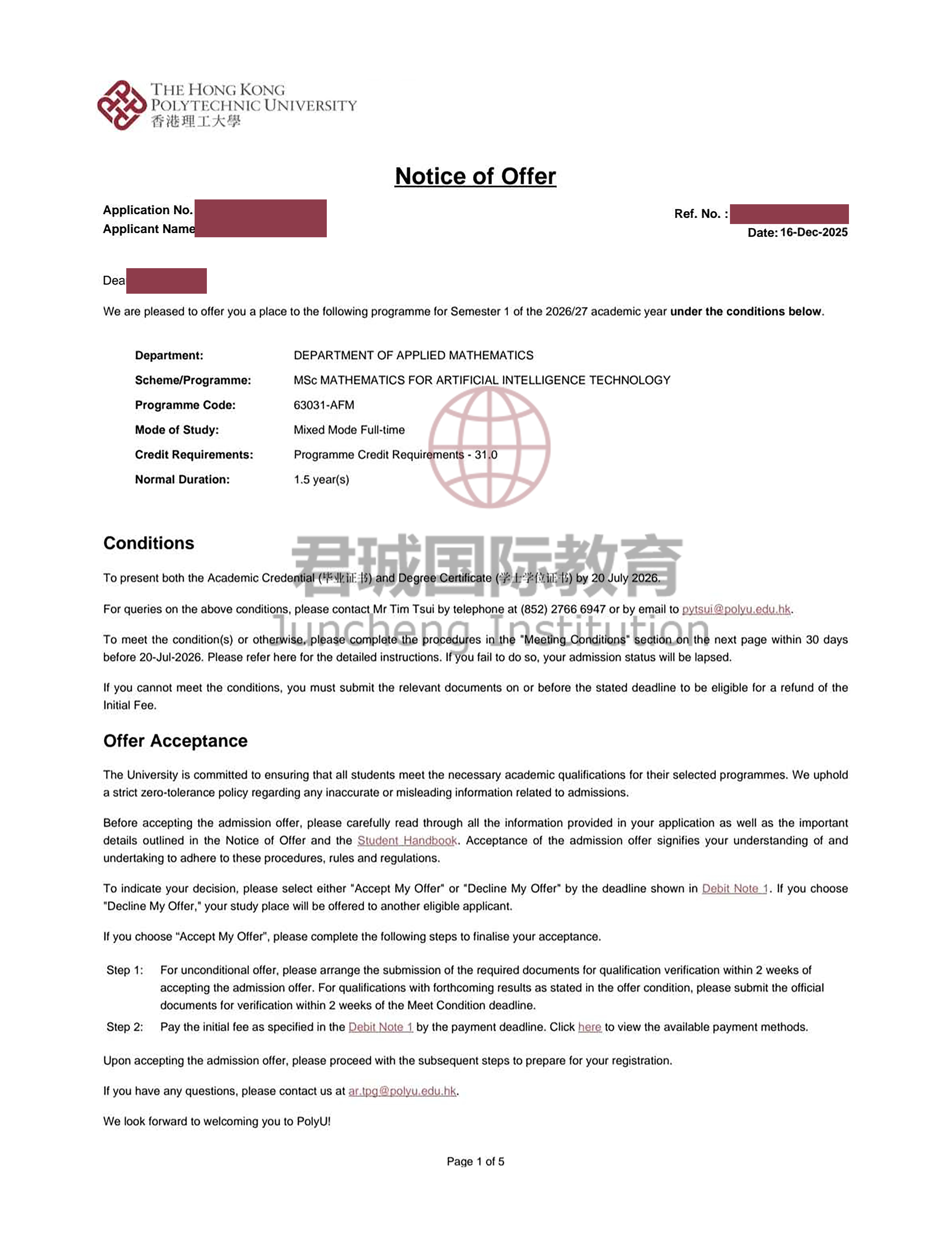录取Offer:香港理工大学 Hong Kong Polytechnic University