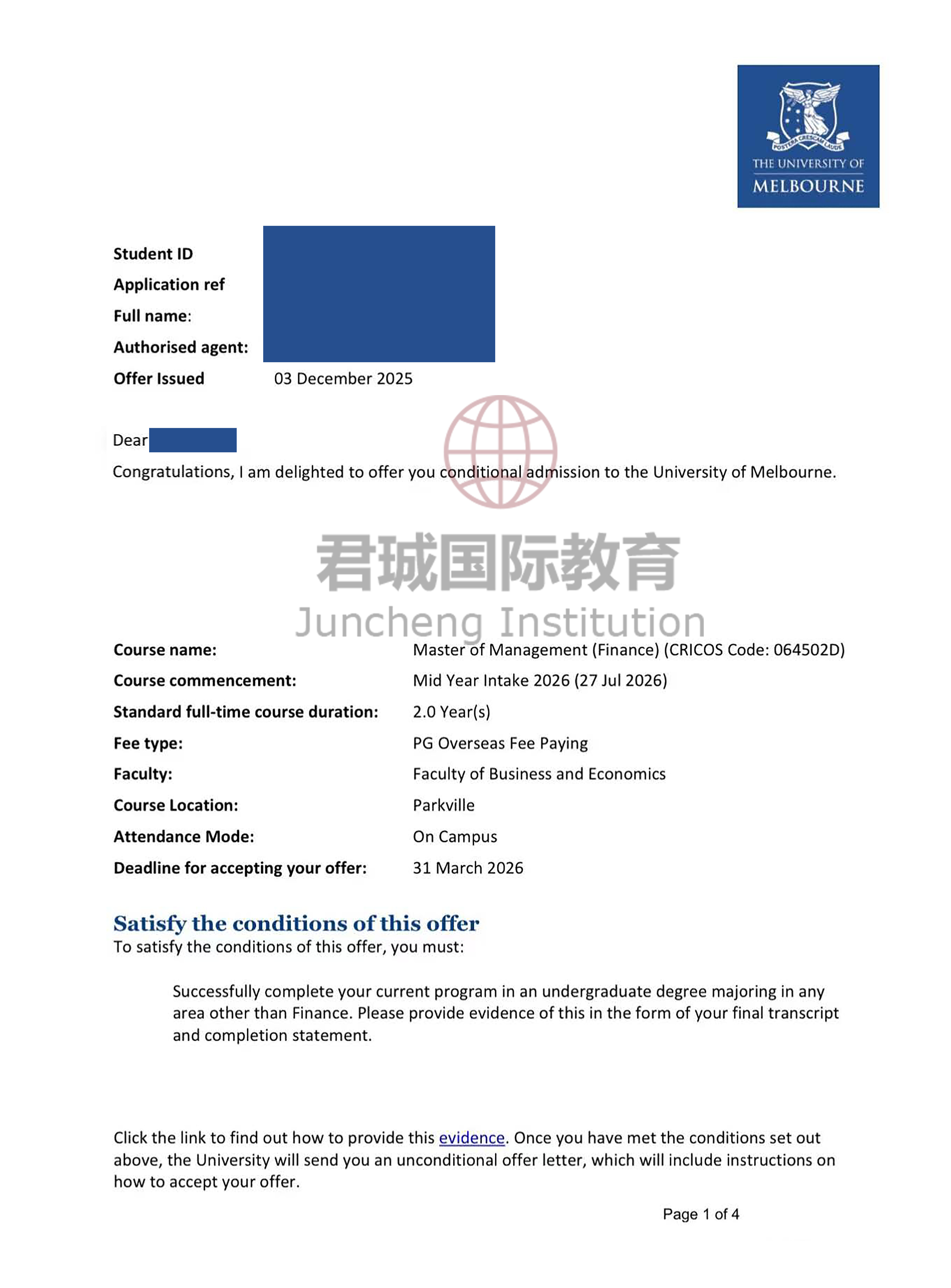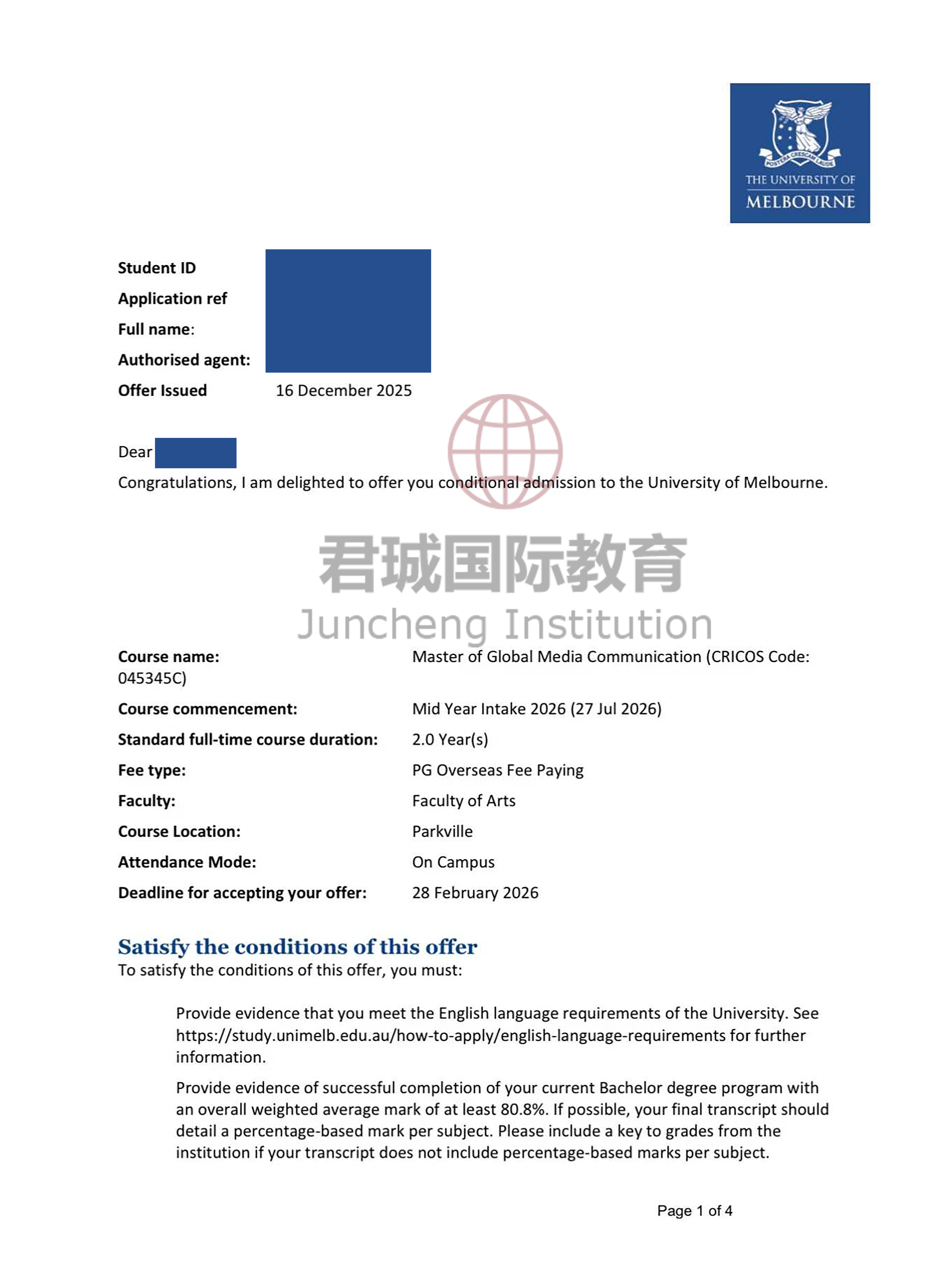 录取Offer:墨尔本大学 University of Melbourne