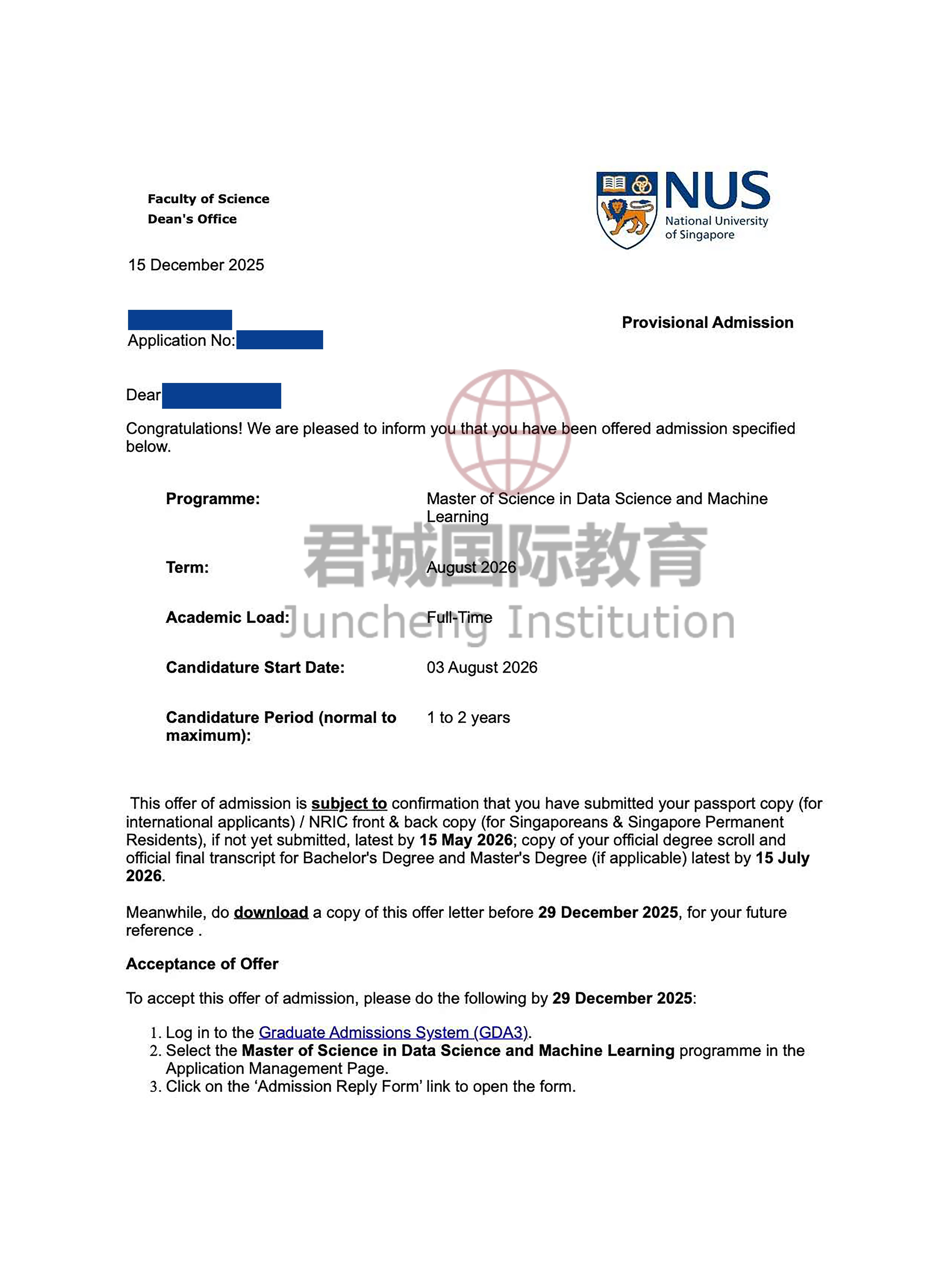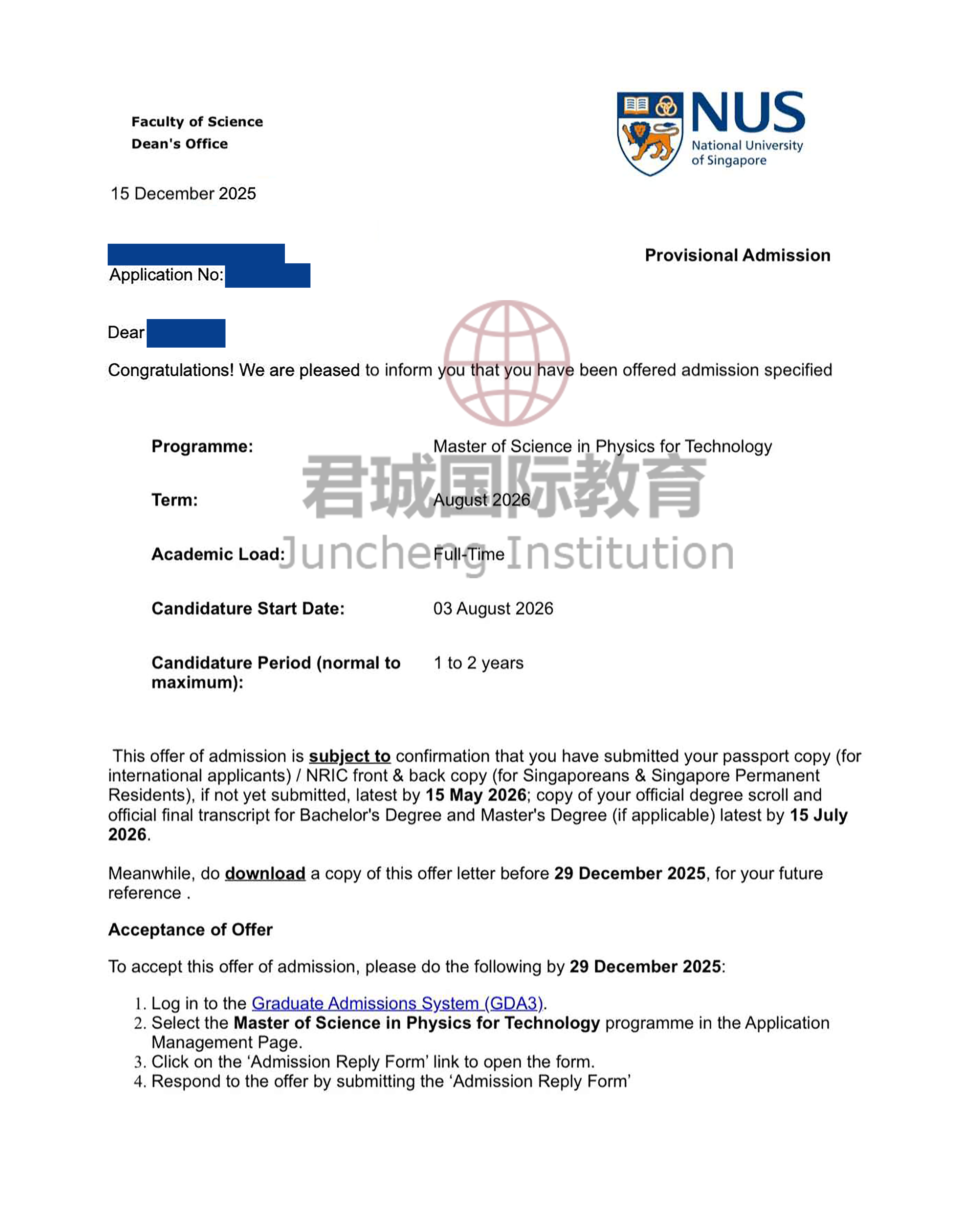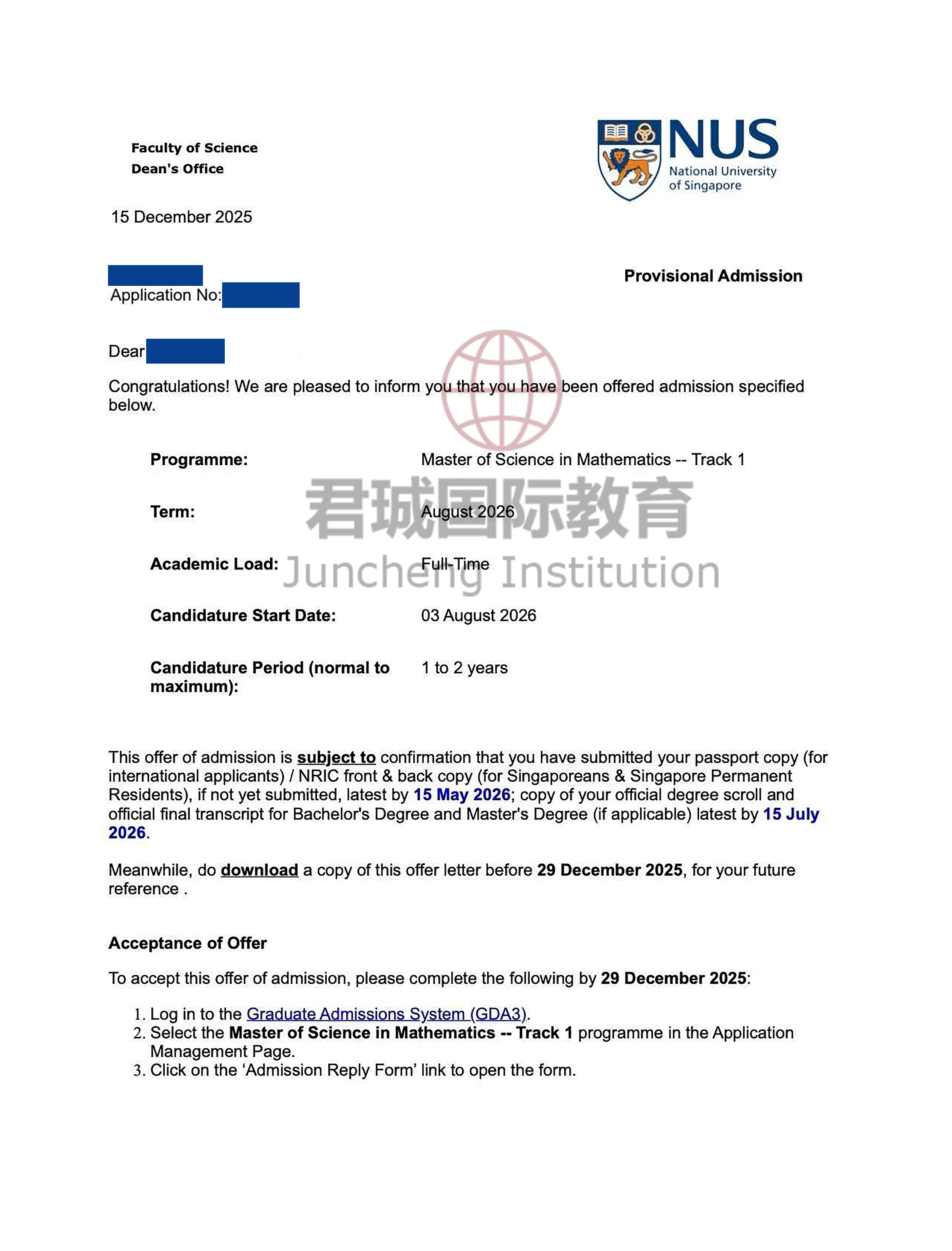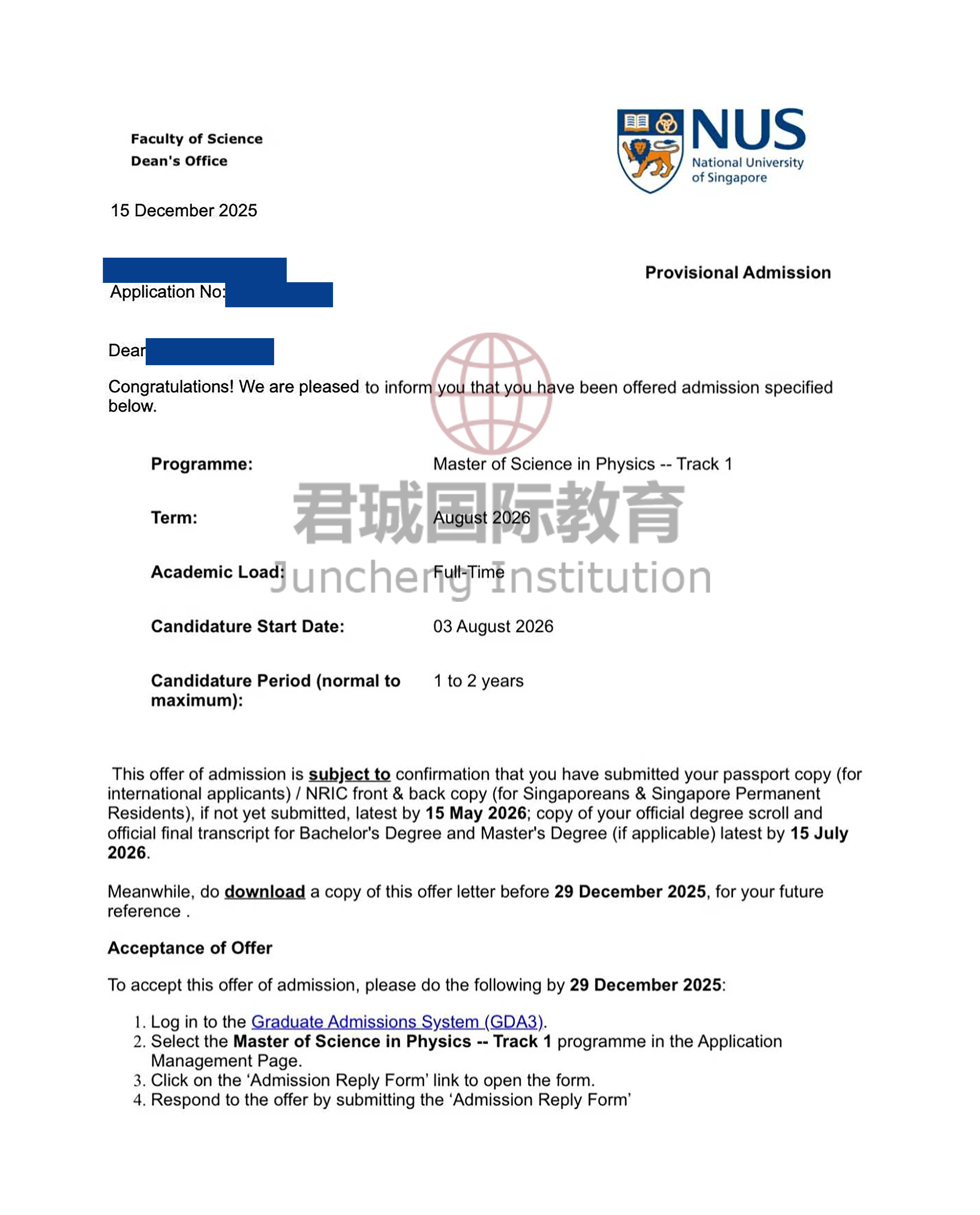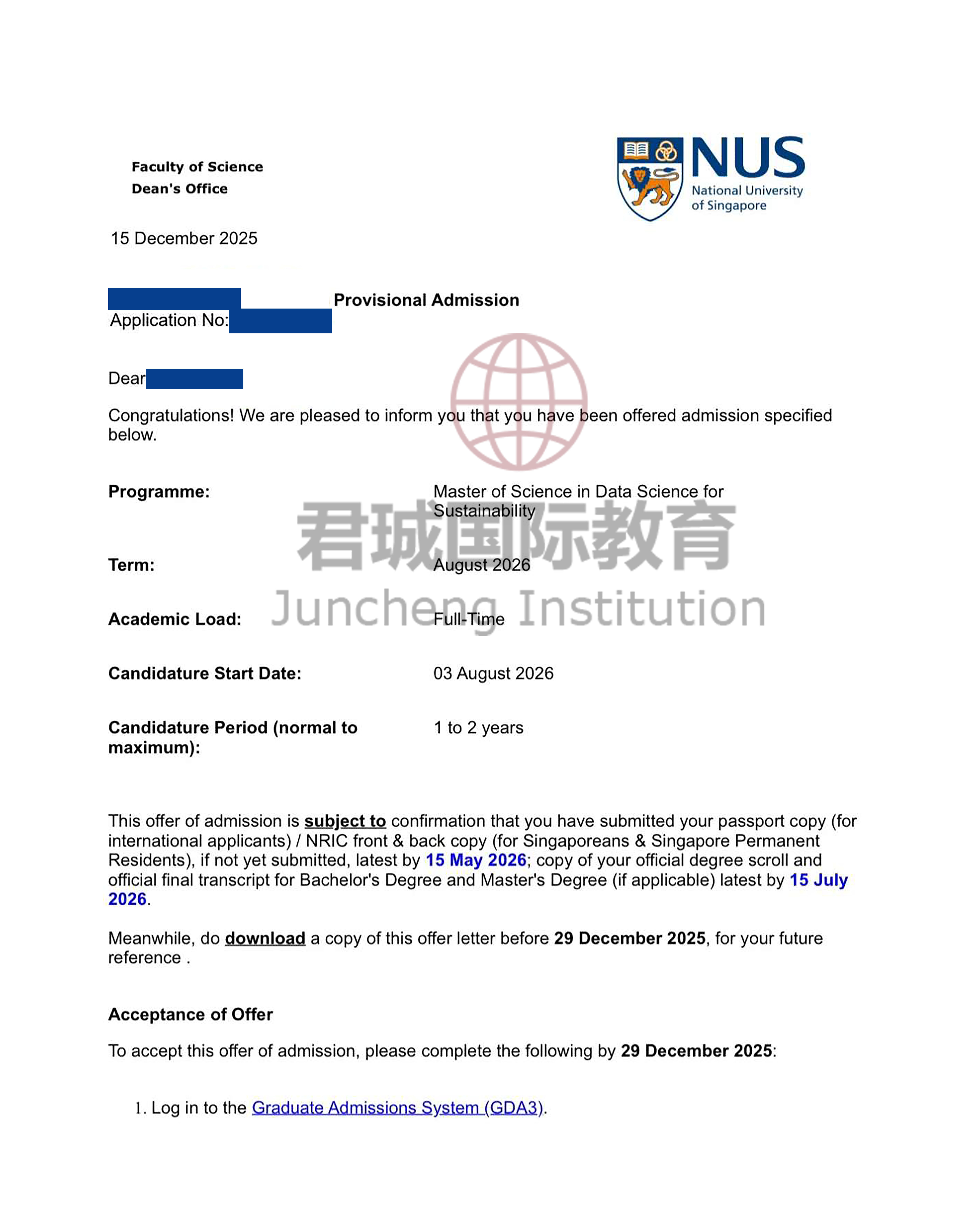 录取Offer:新加坡国立大学 National University of Singapore