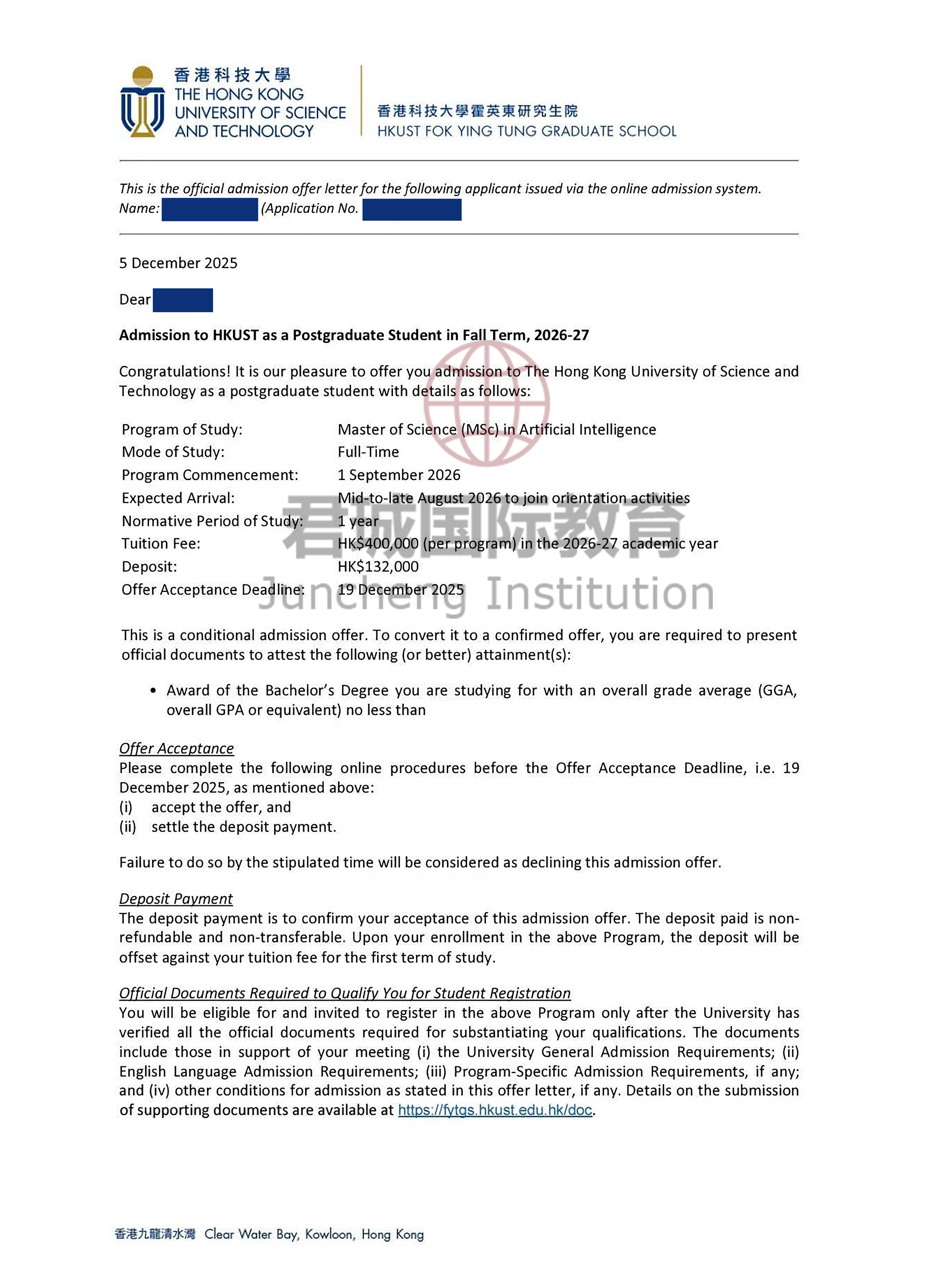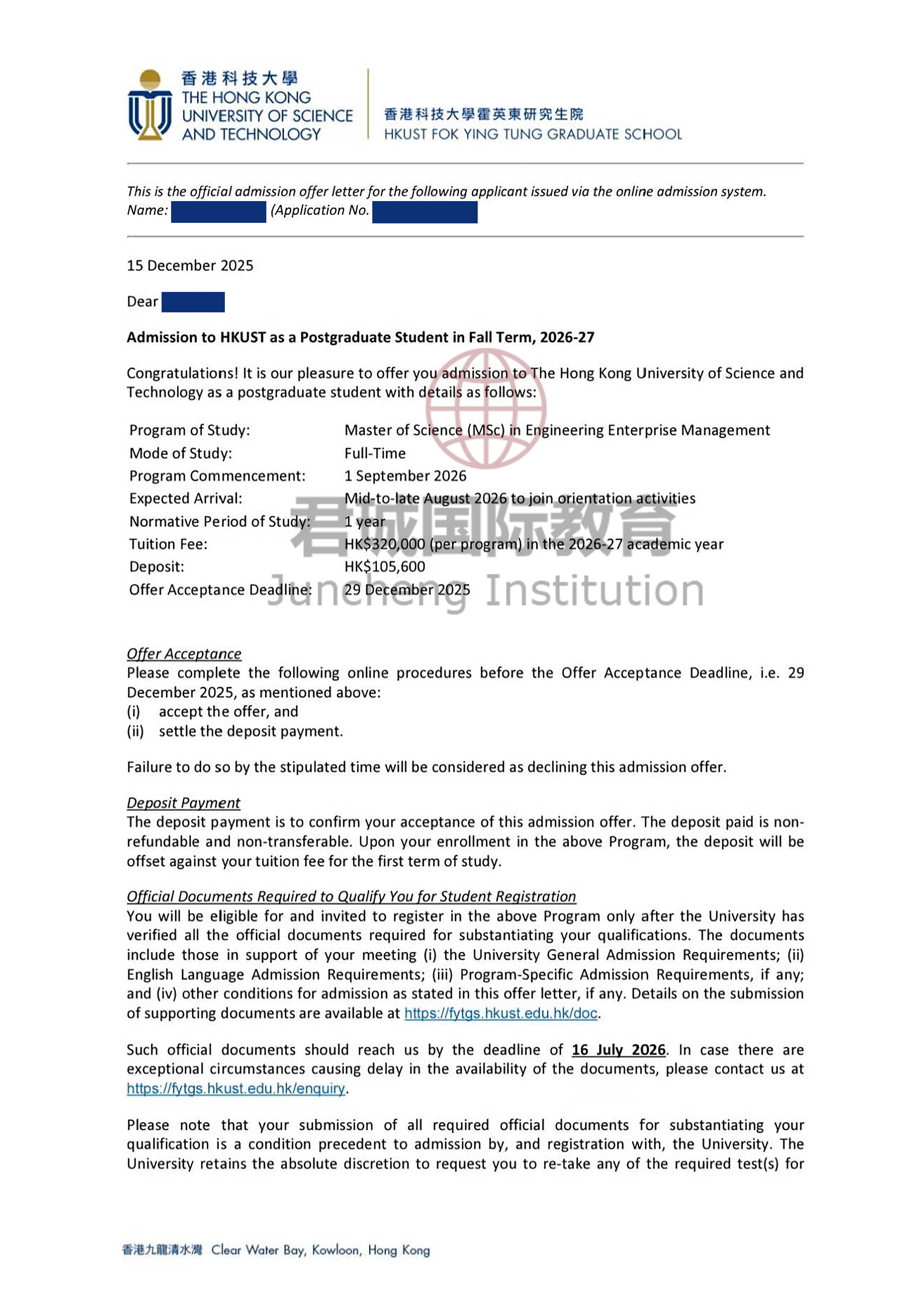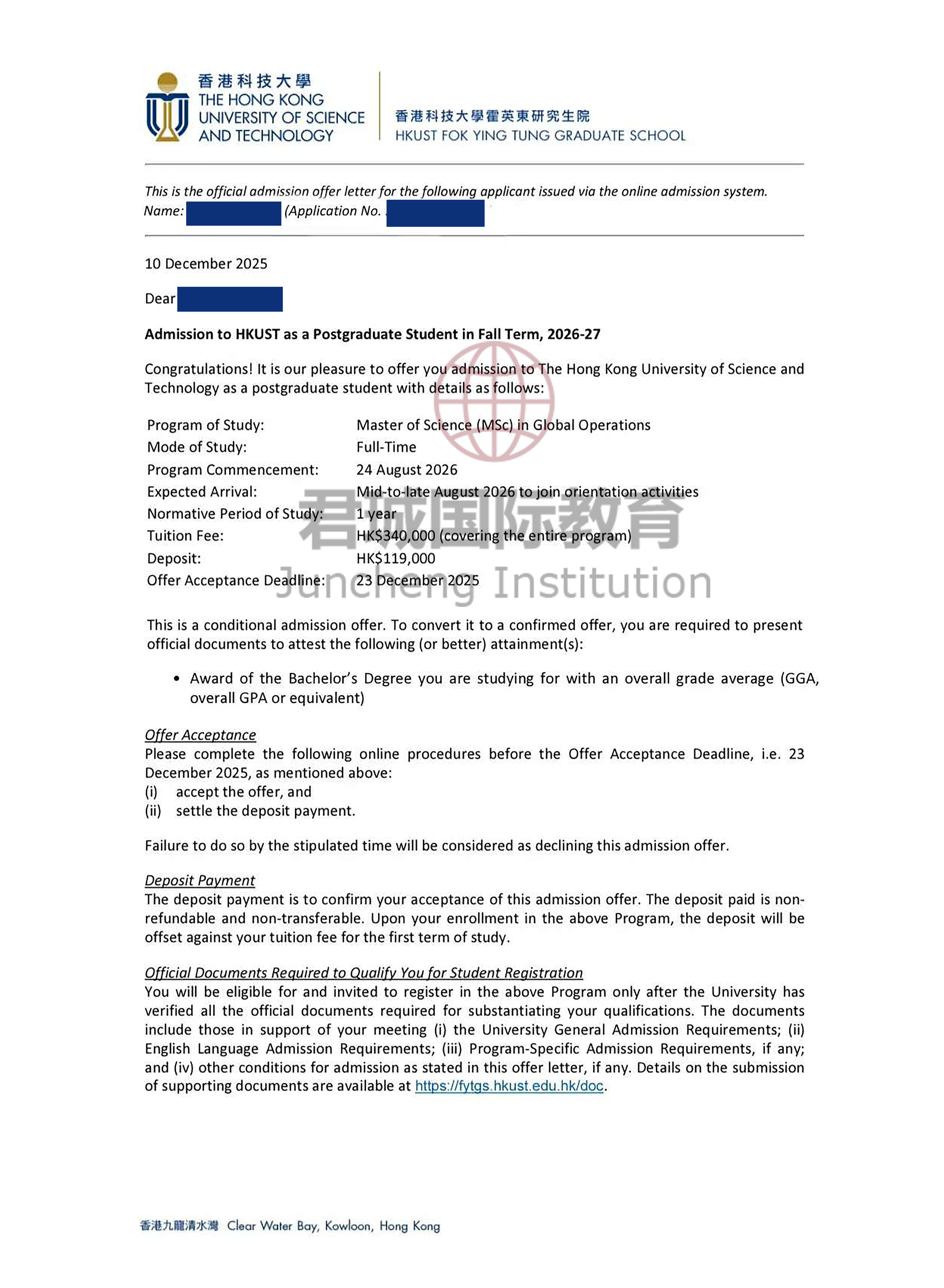 录取Offer:香港科技大学 Hong Kong University of Science and Technology