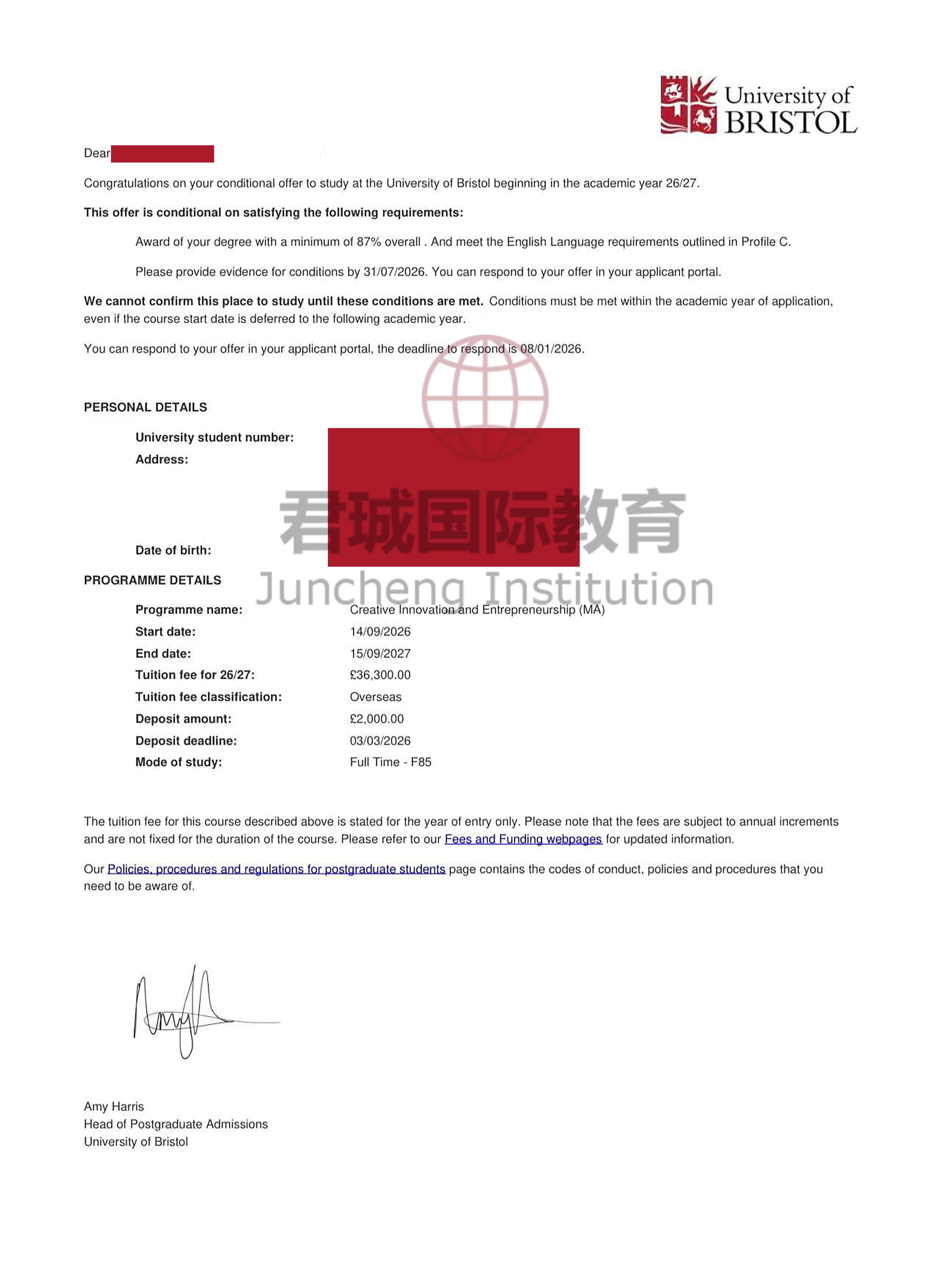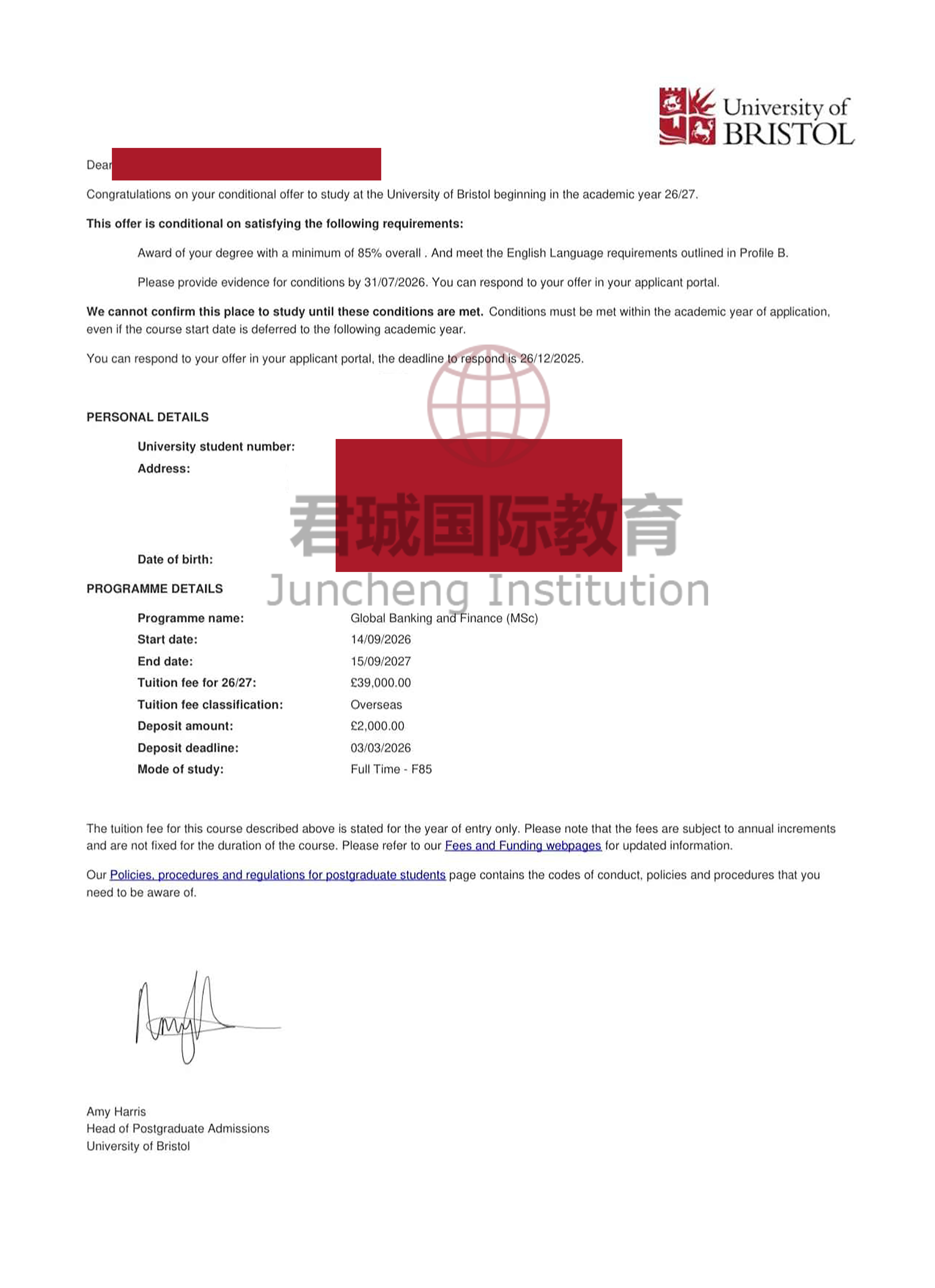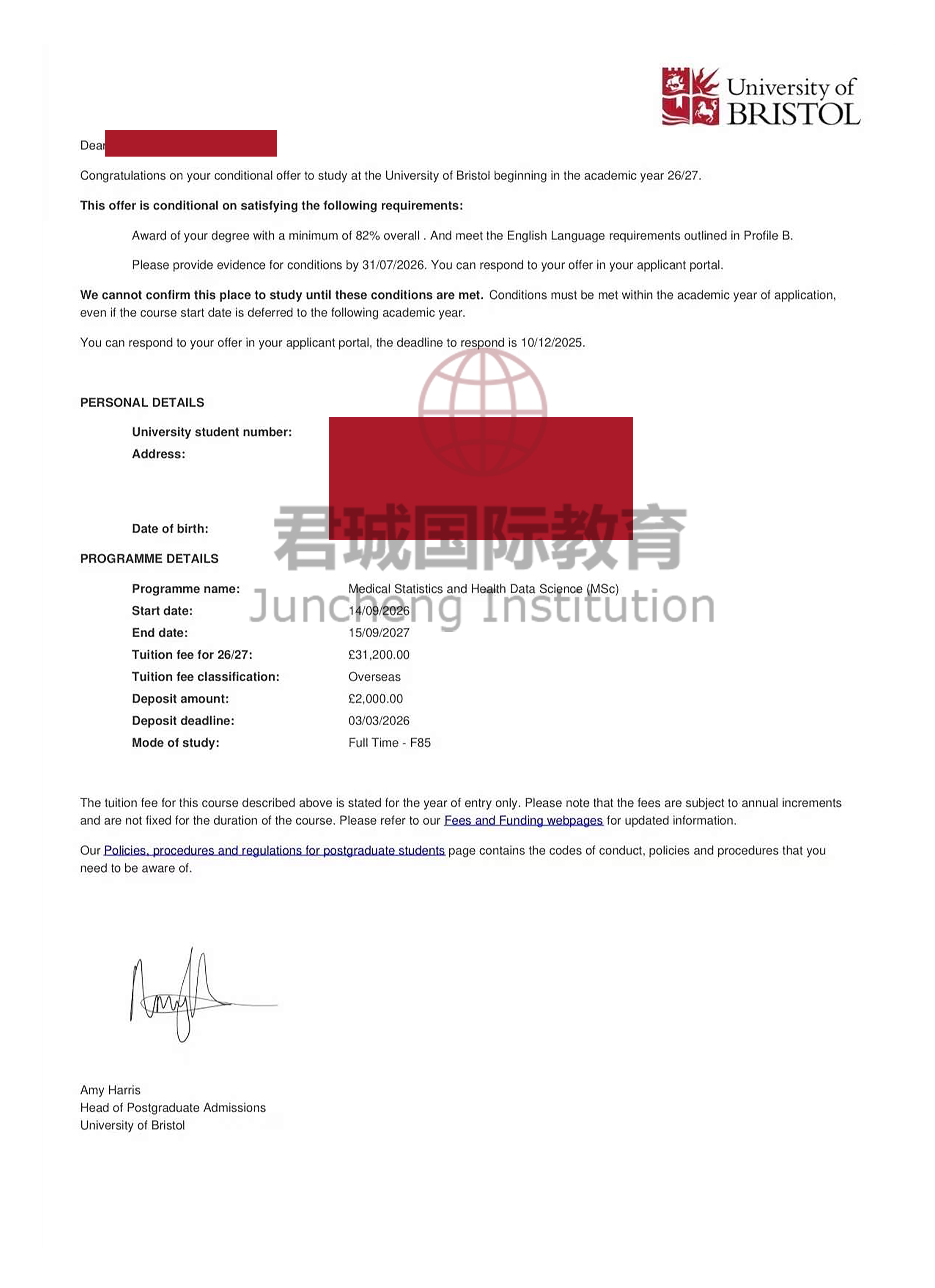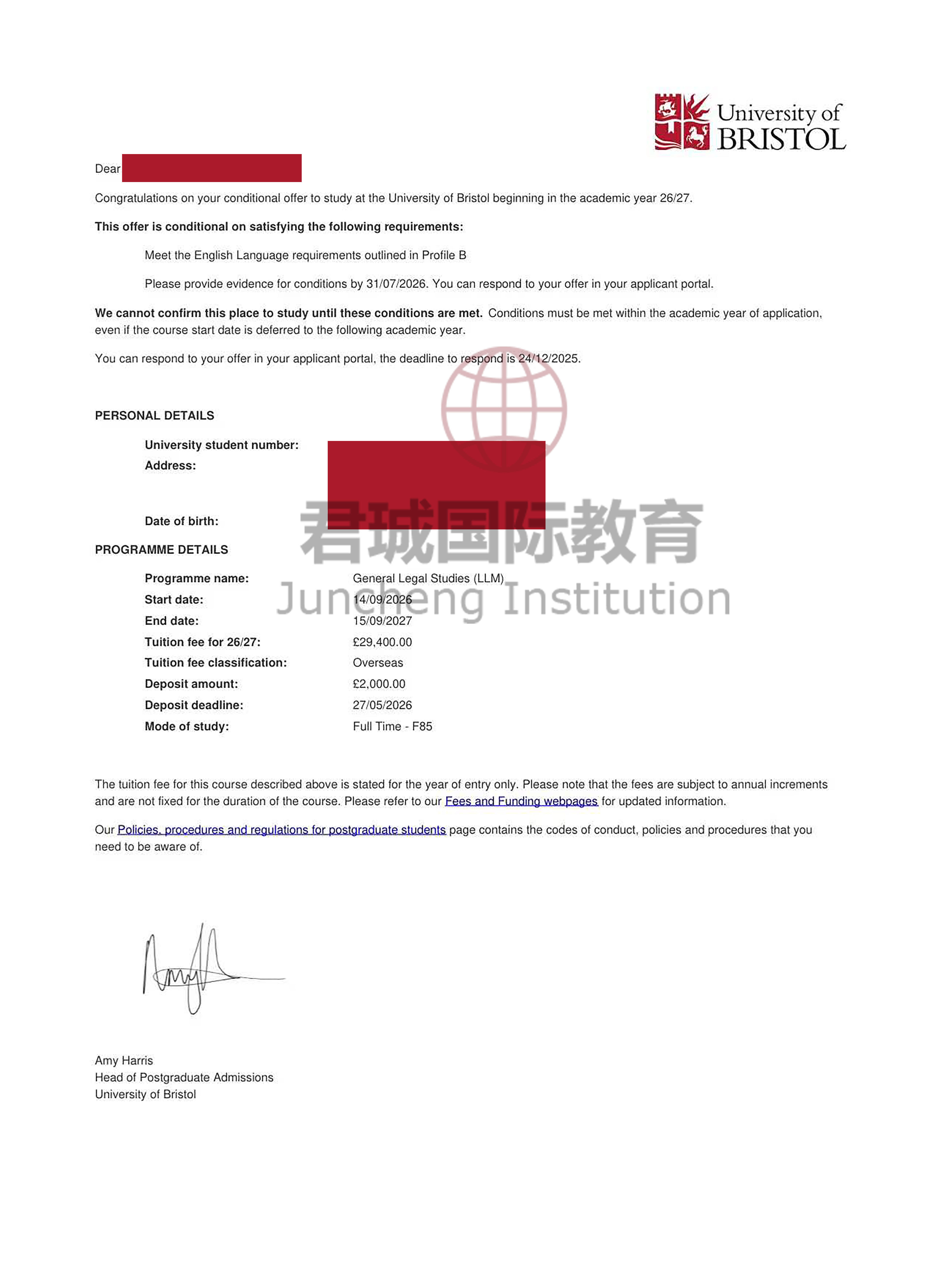 录取Offer:布里斯托大学 University of Bristol