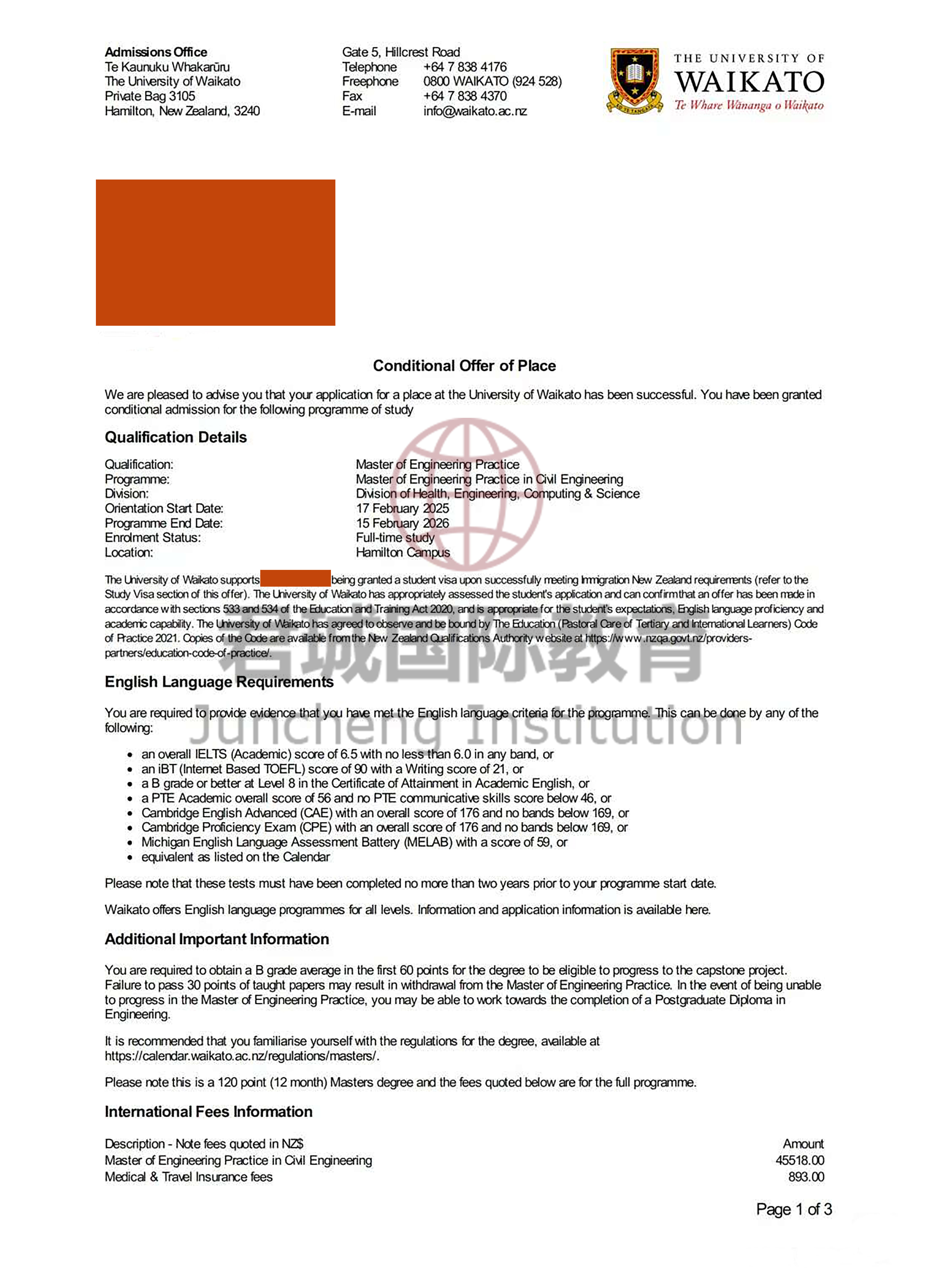 录取Offer:怀卡托大学 University of Waikato
