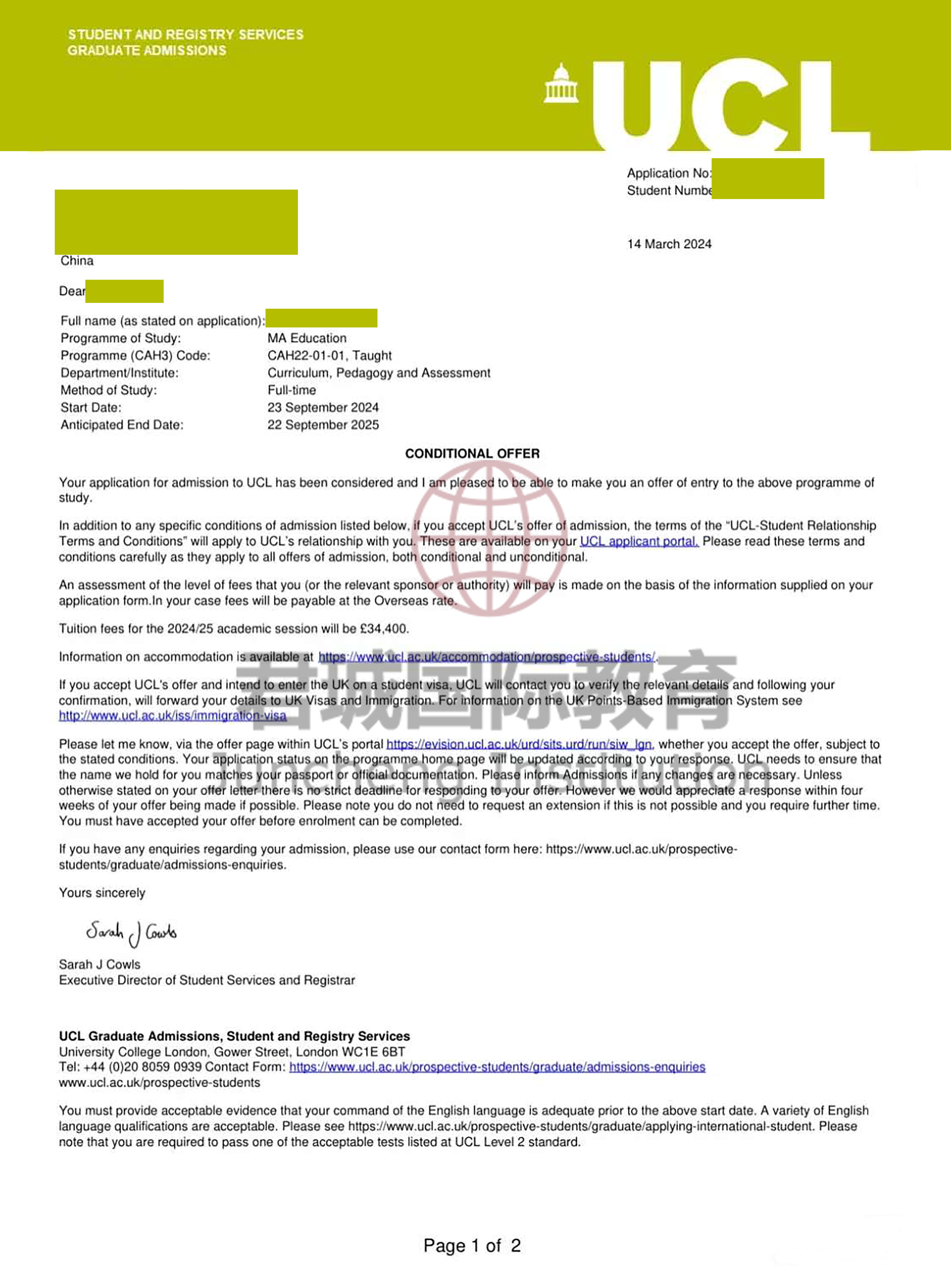 录取Offer:伦敦政经 The London School of Economics and Political Science