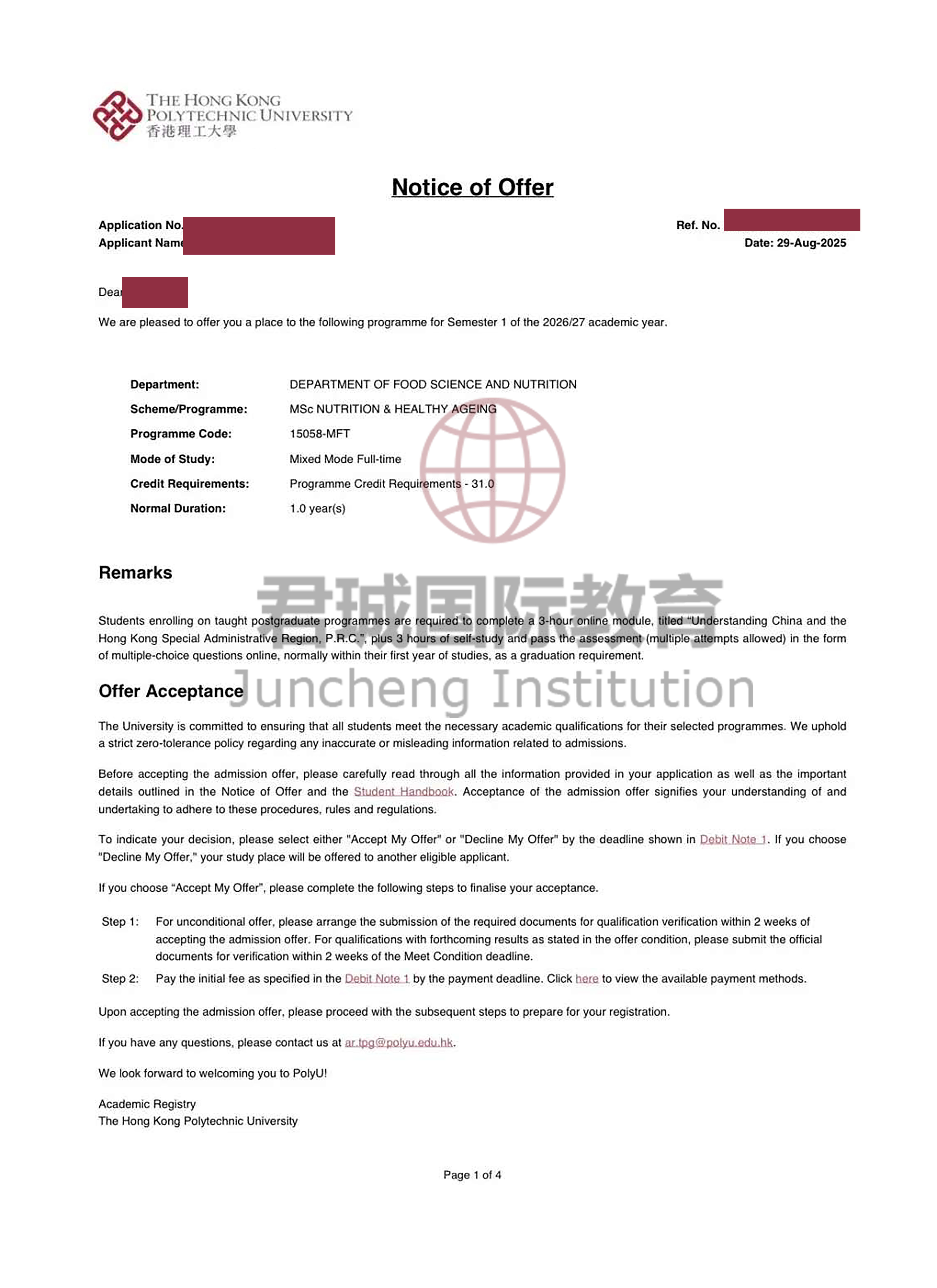 录取Offer:香港理工大学 Hong Kong Polytechnic University