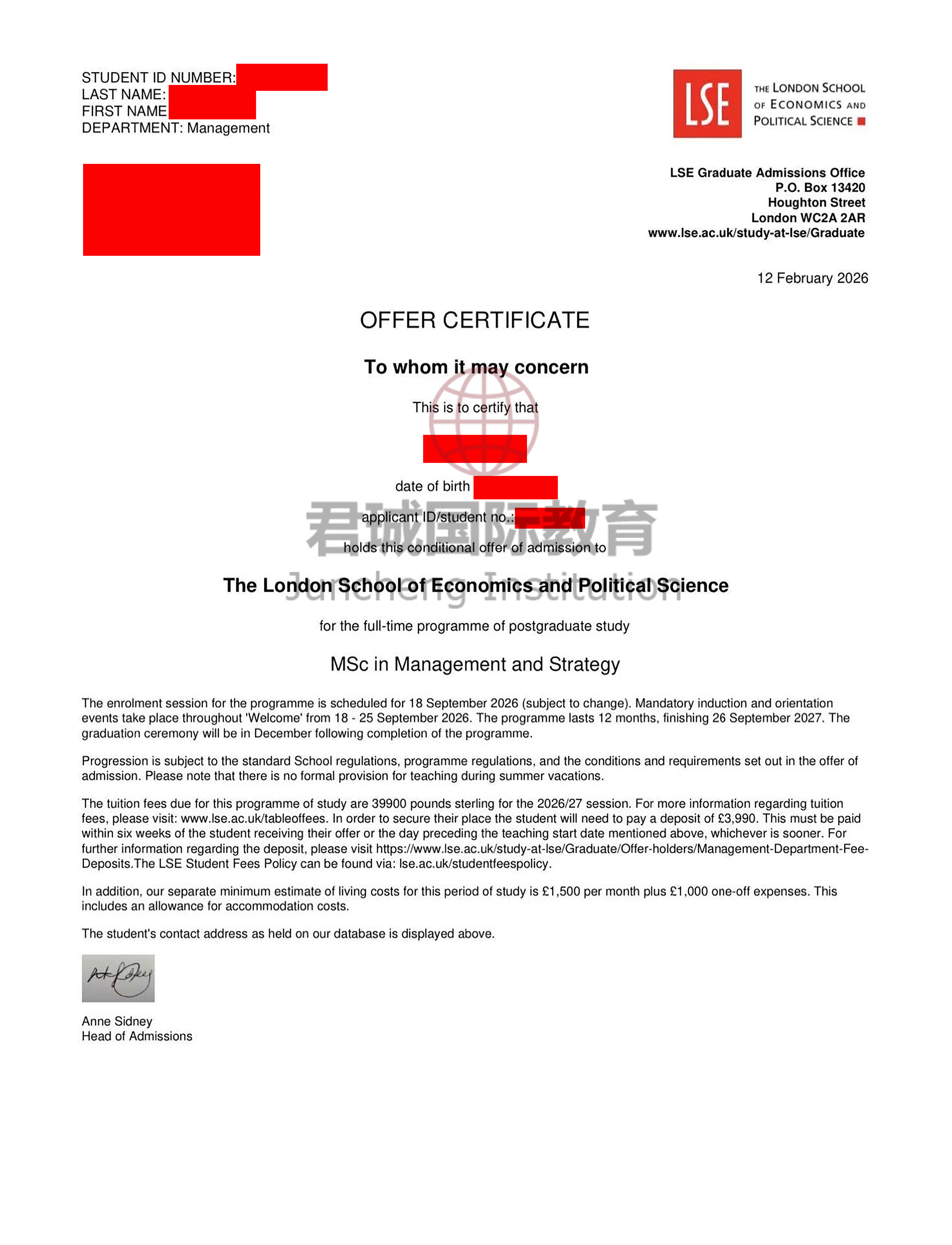 录取Offer:伦敦政经 The London School of Economics and Political Science