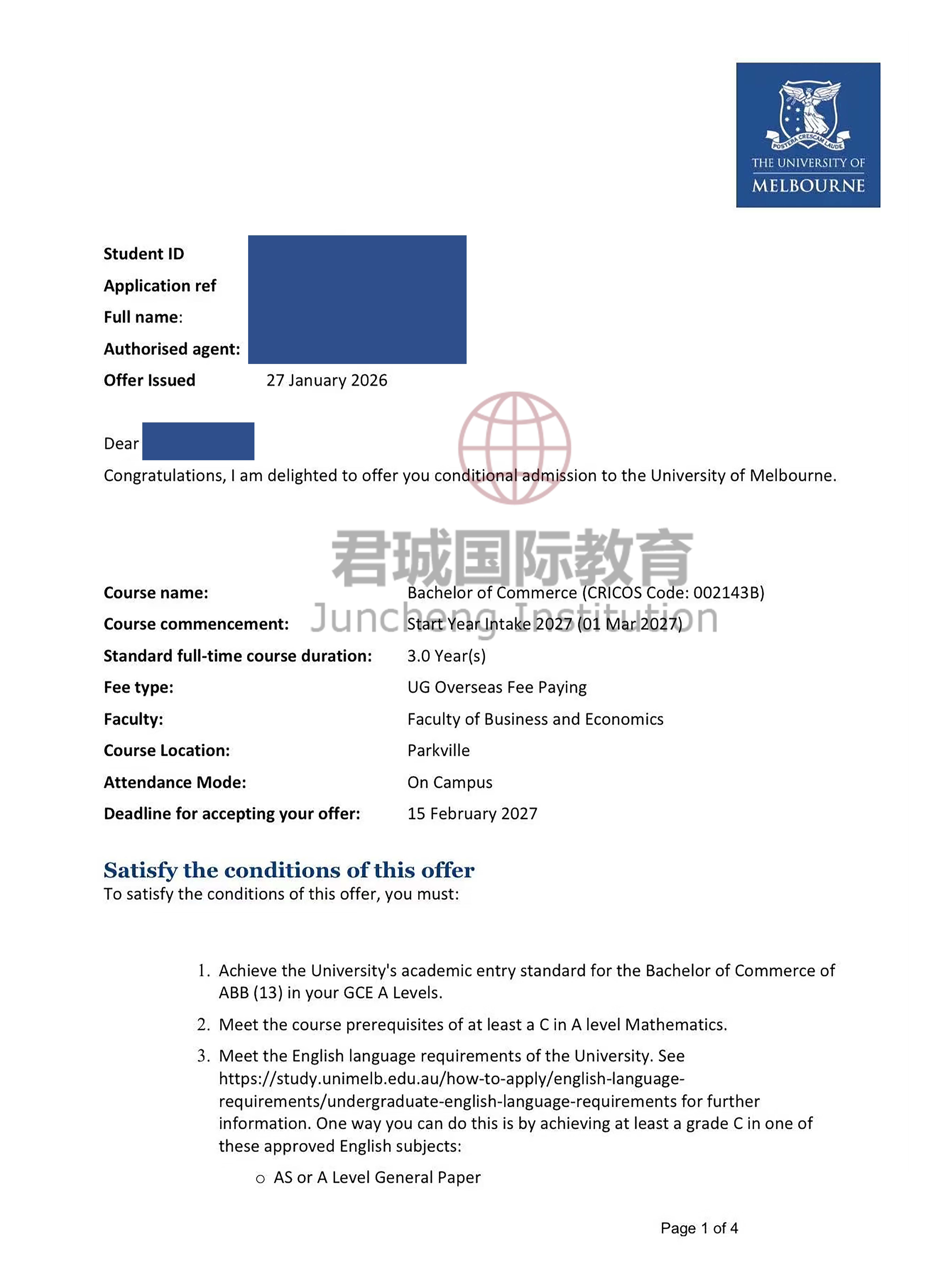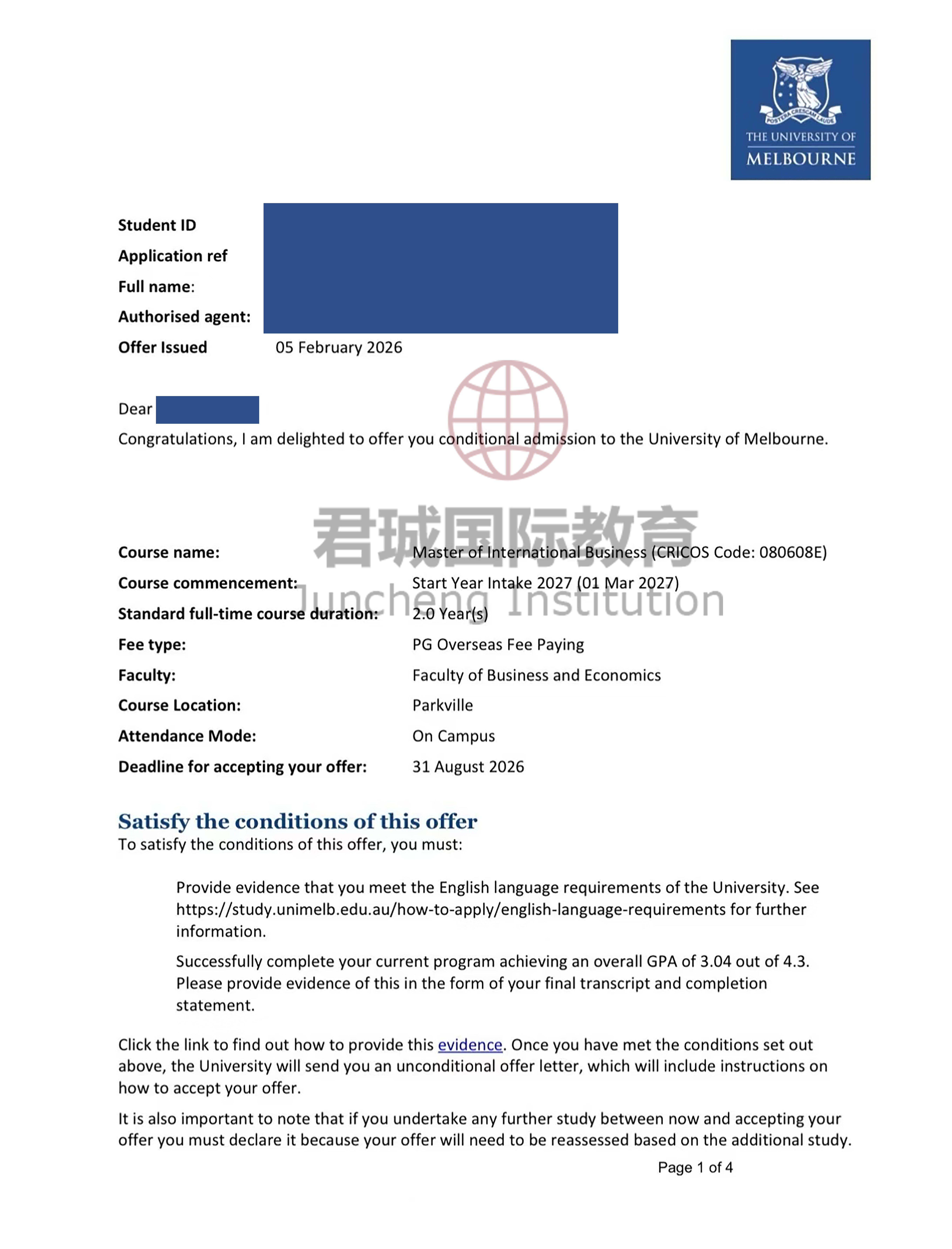 录取Offer:墨尔本大学 University of Melbourne