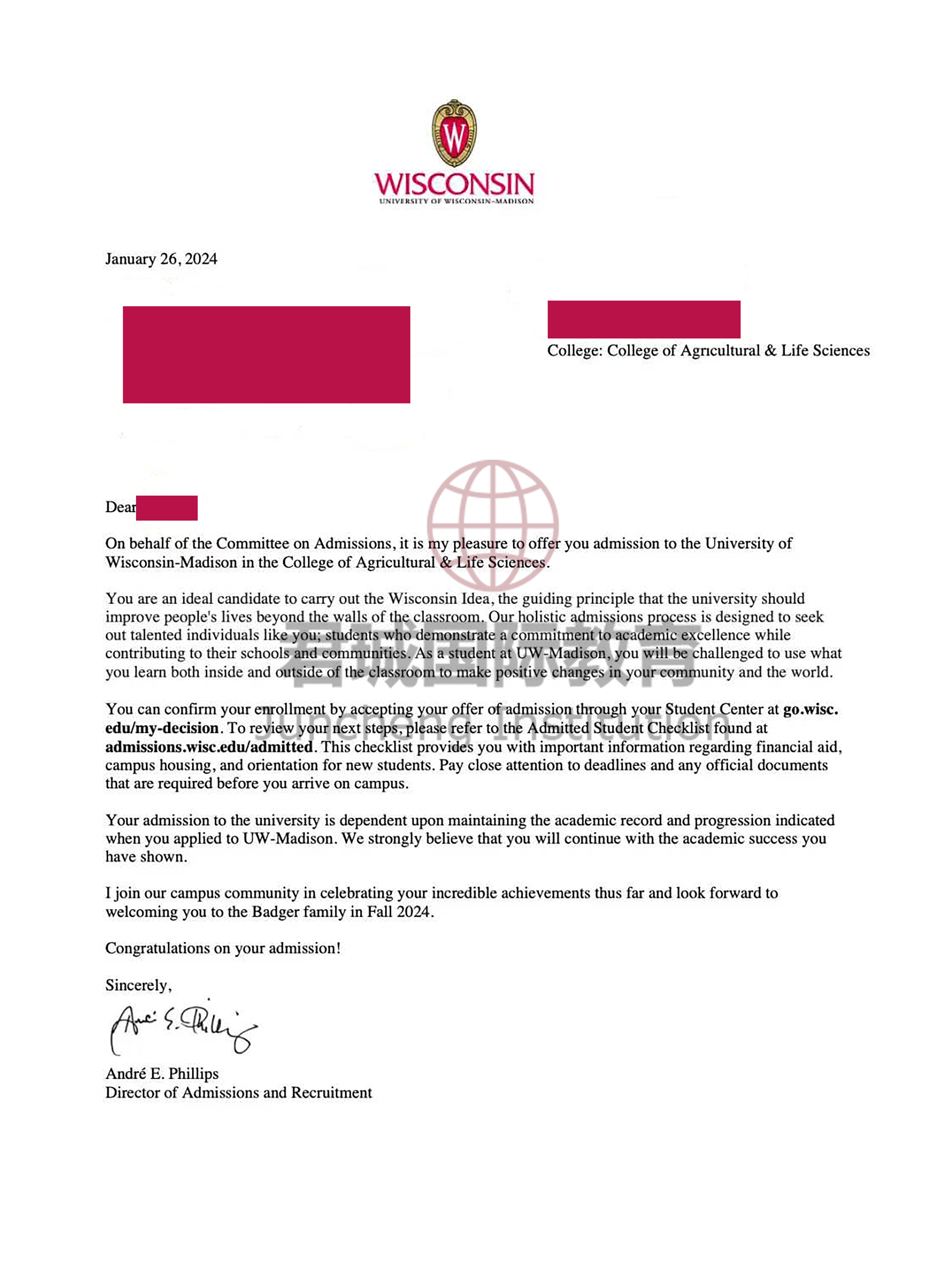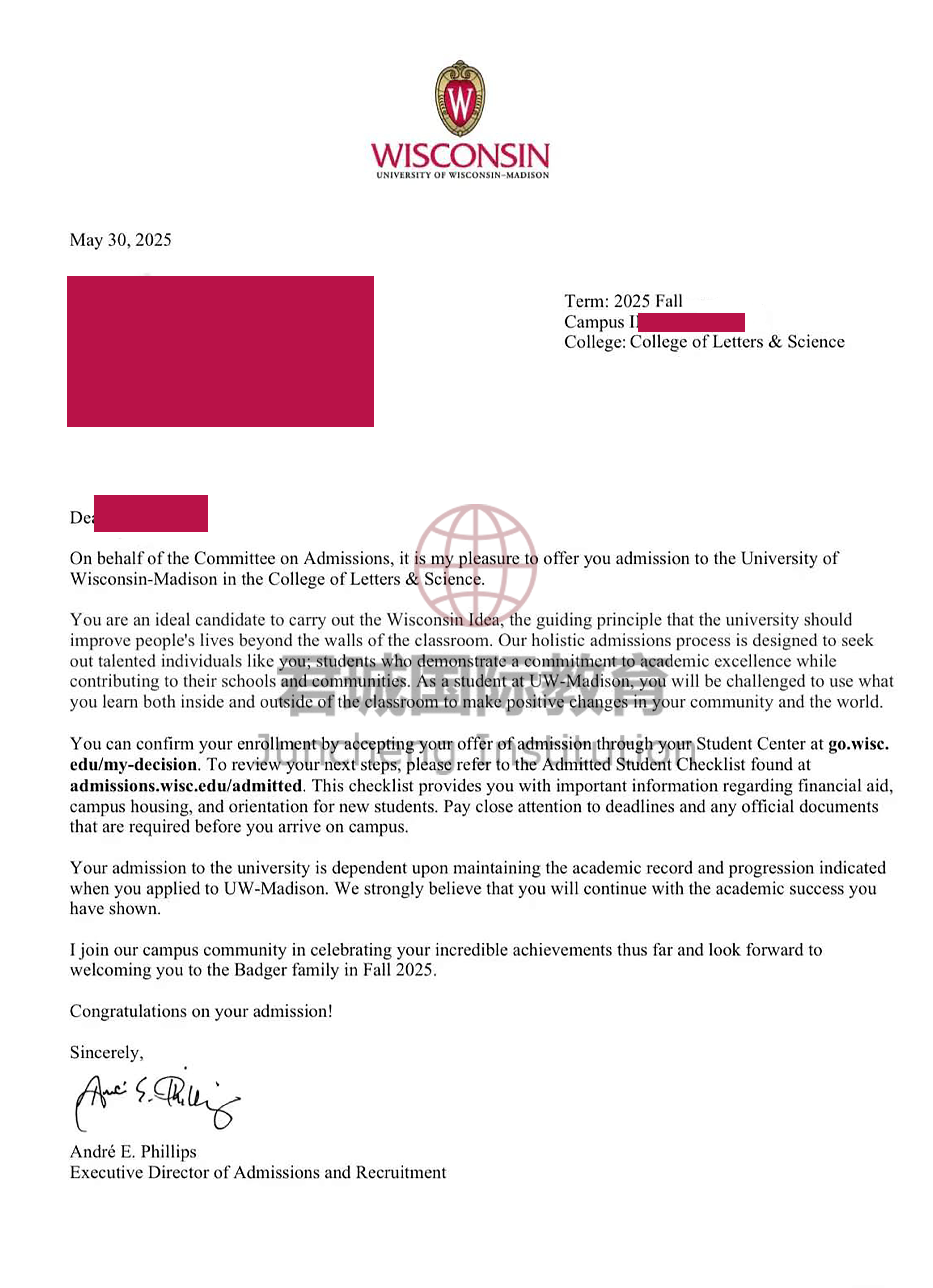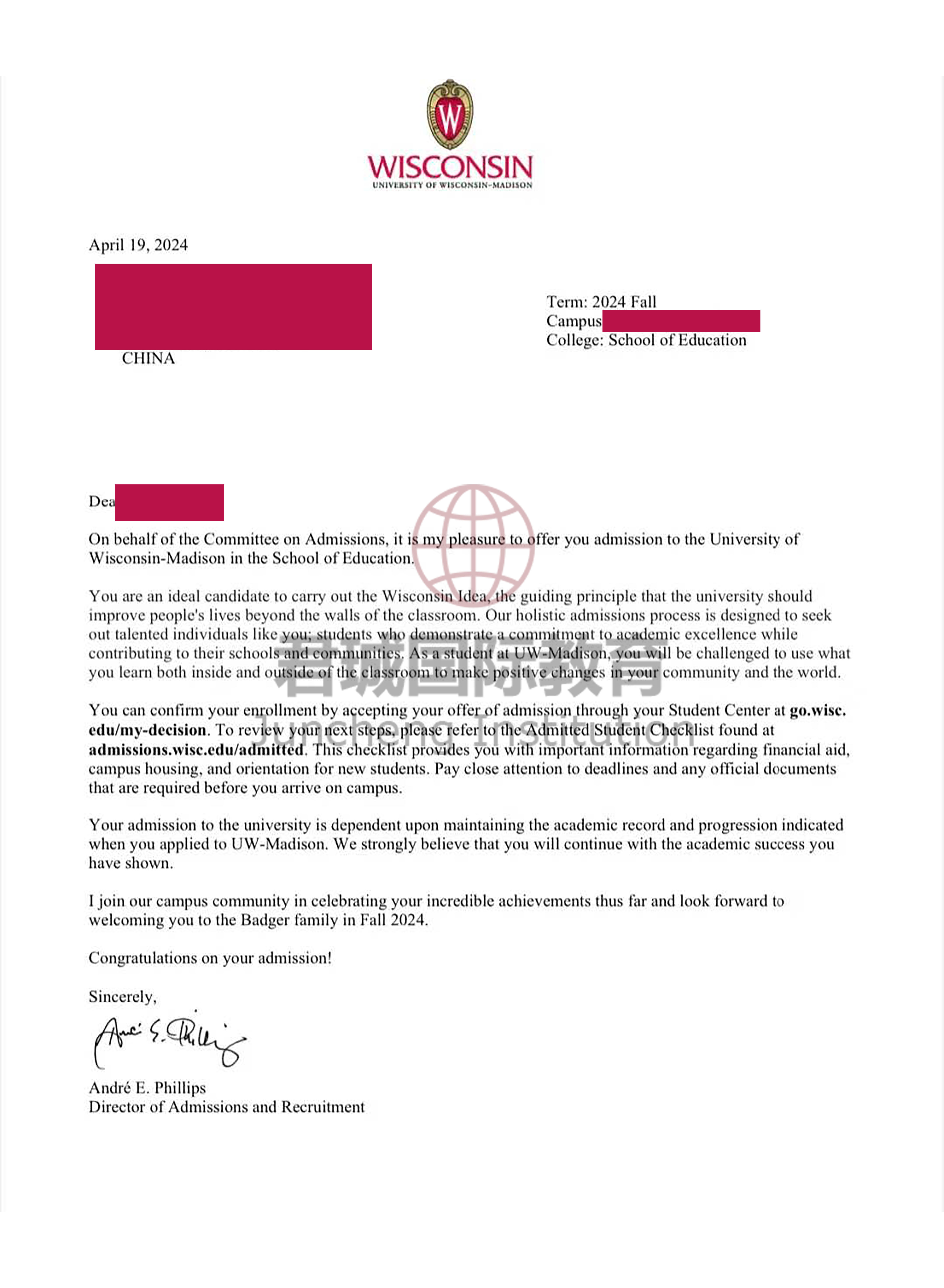 录取Offer:威斯康星大学麦迪逊分校 University of Wisconsin--Madison