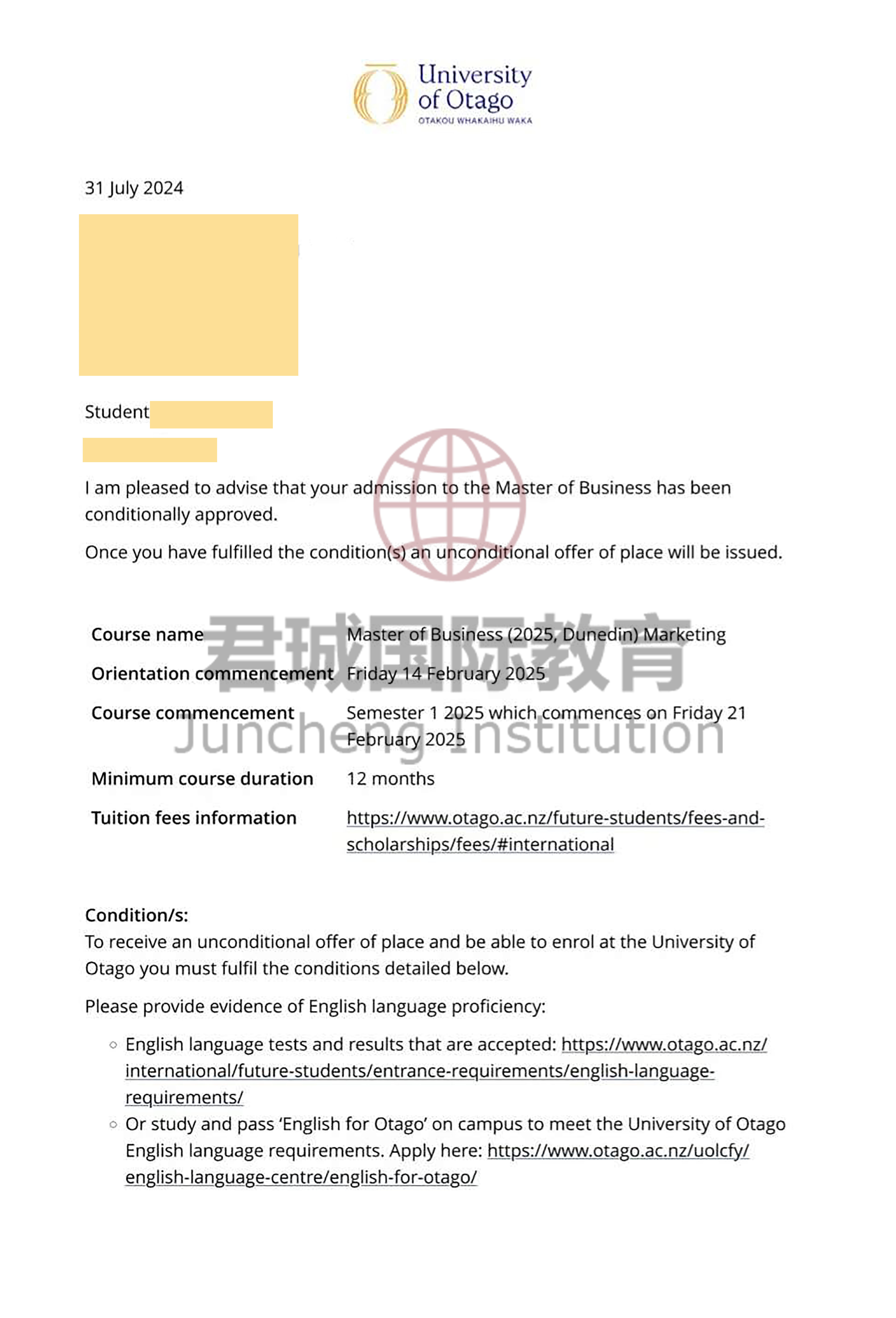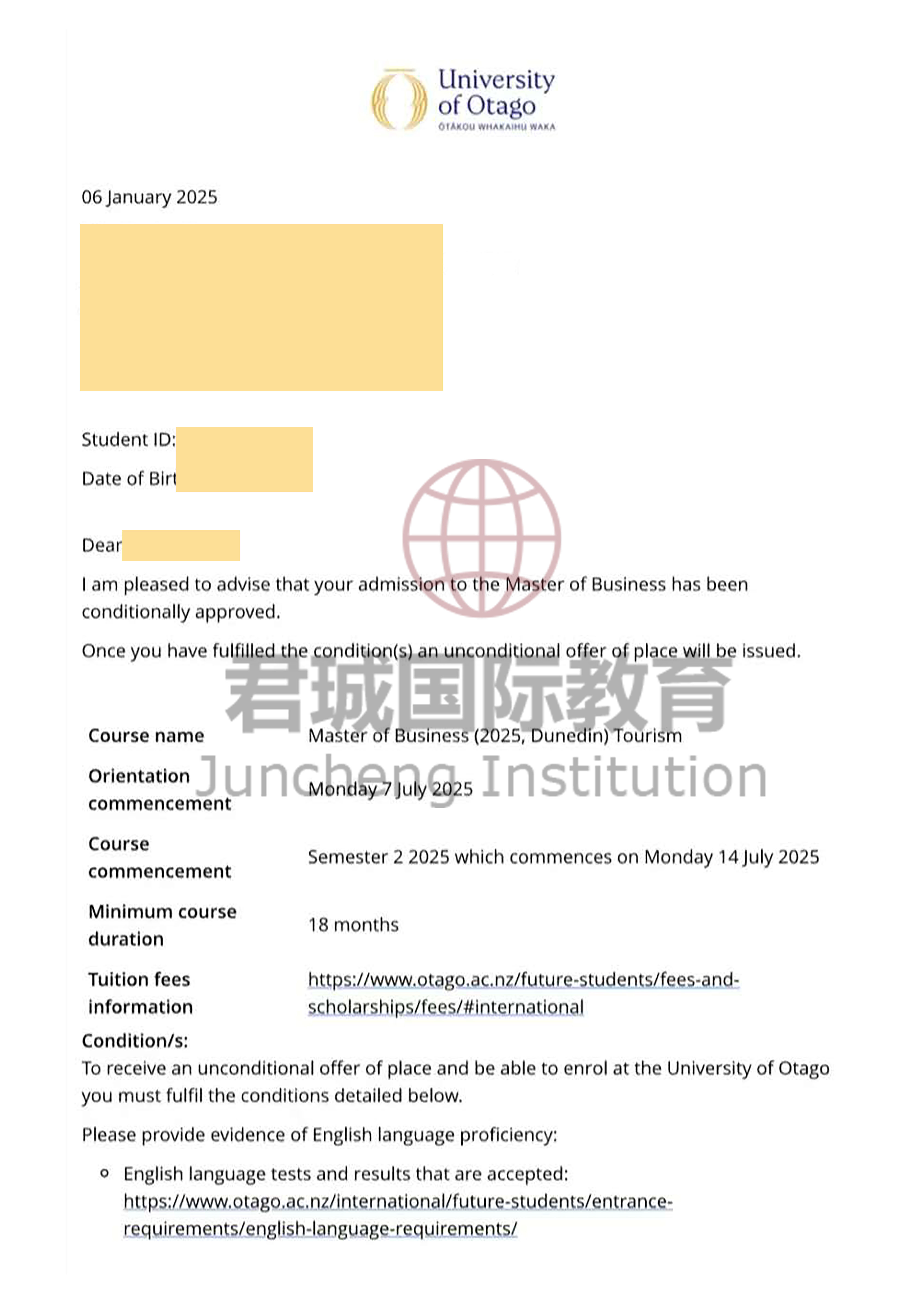 录取Offer:奥塔哥大学 University of Otago