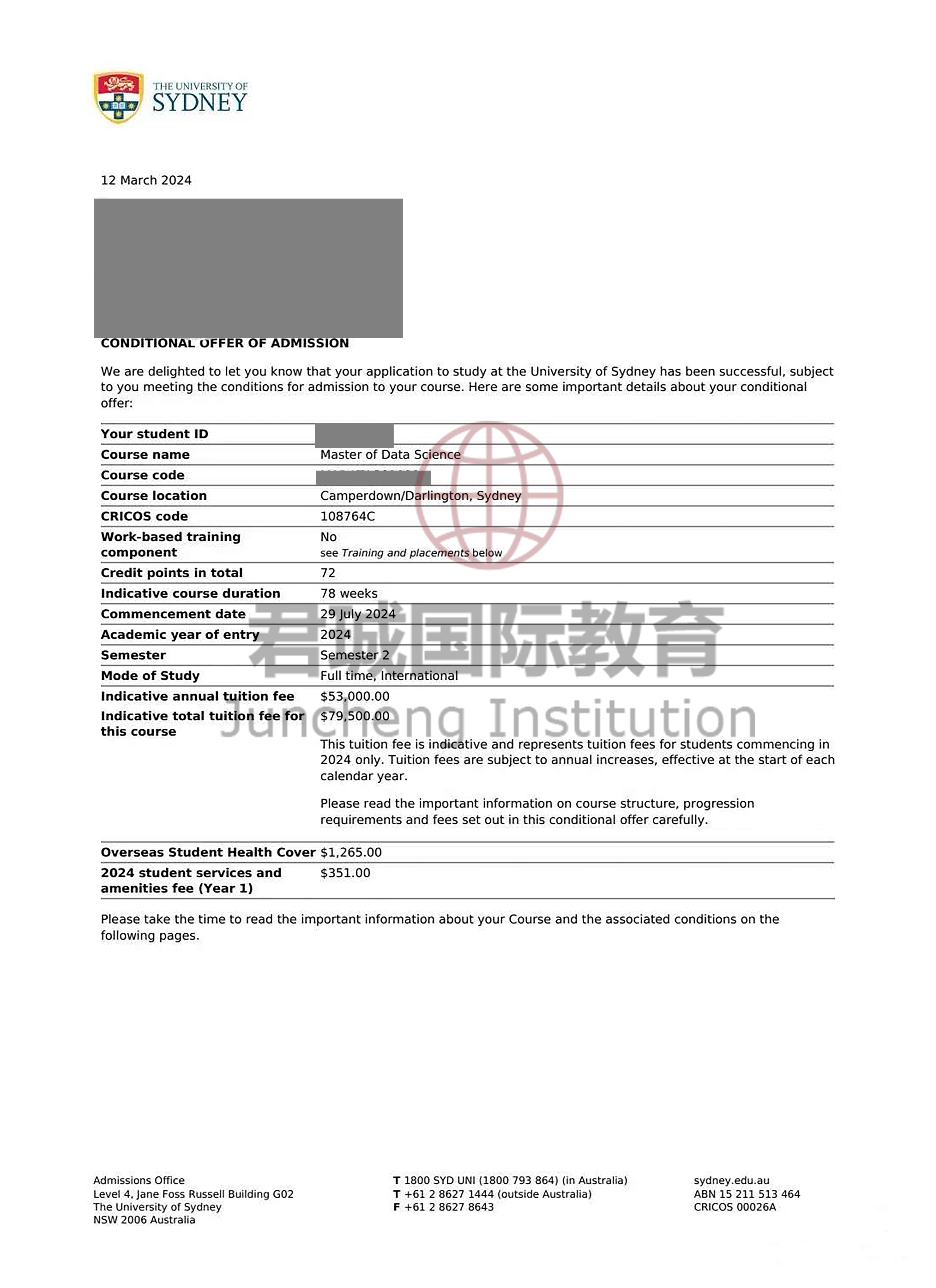 录取Offer:澳洲悉尼大学 University of Sydney