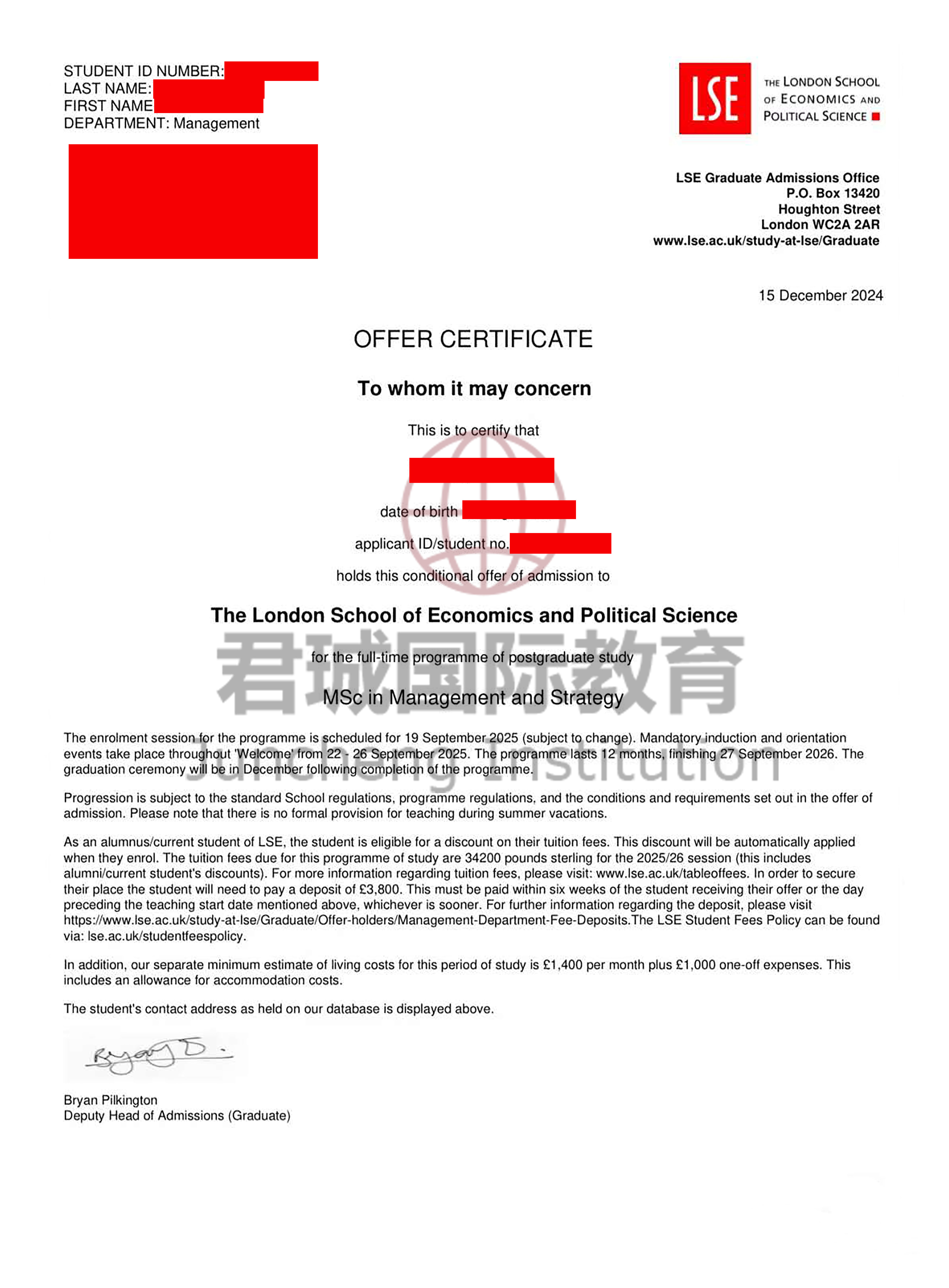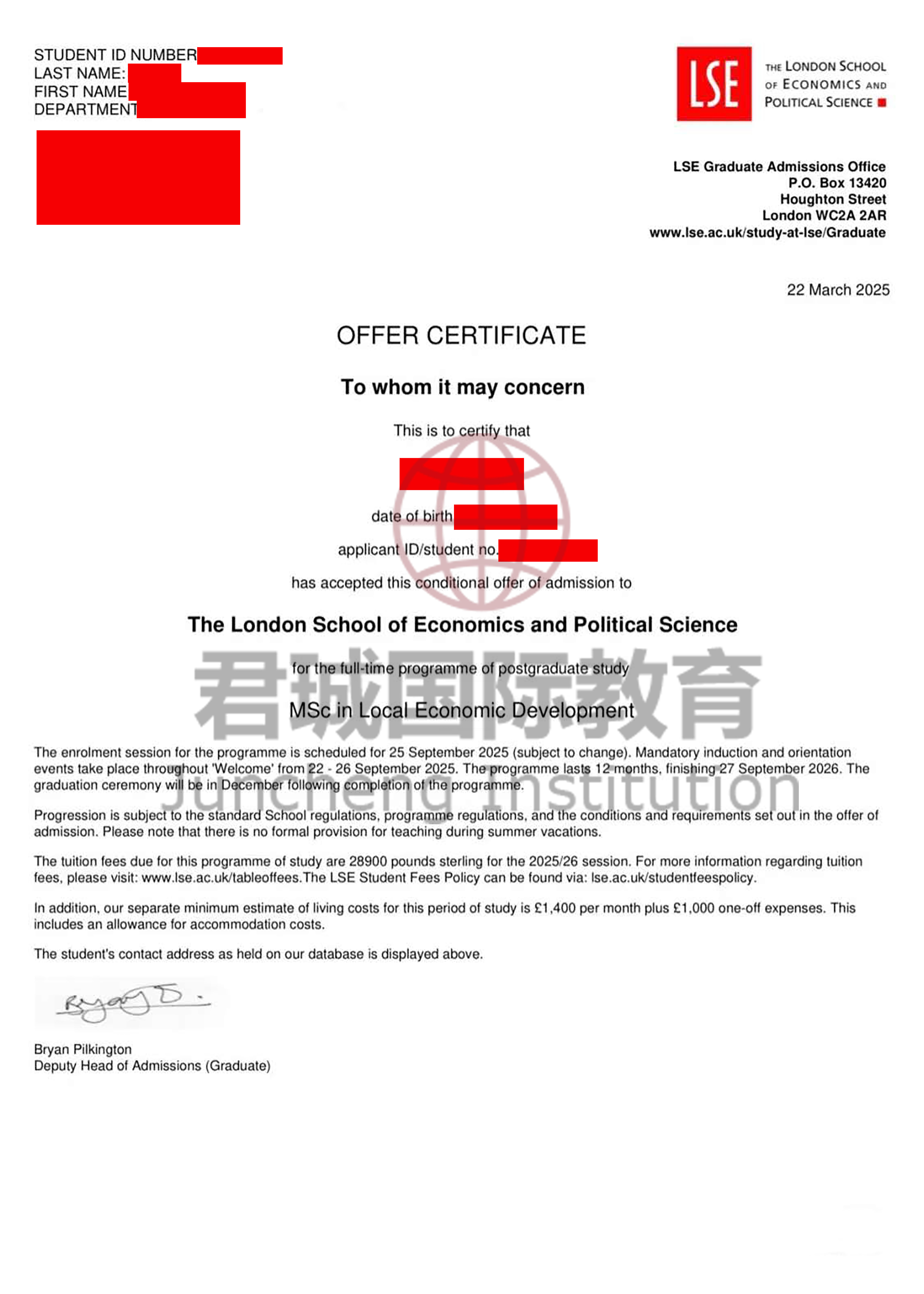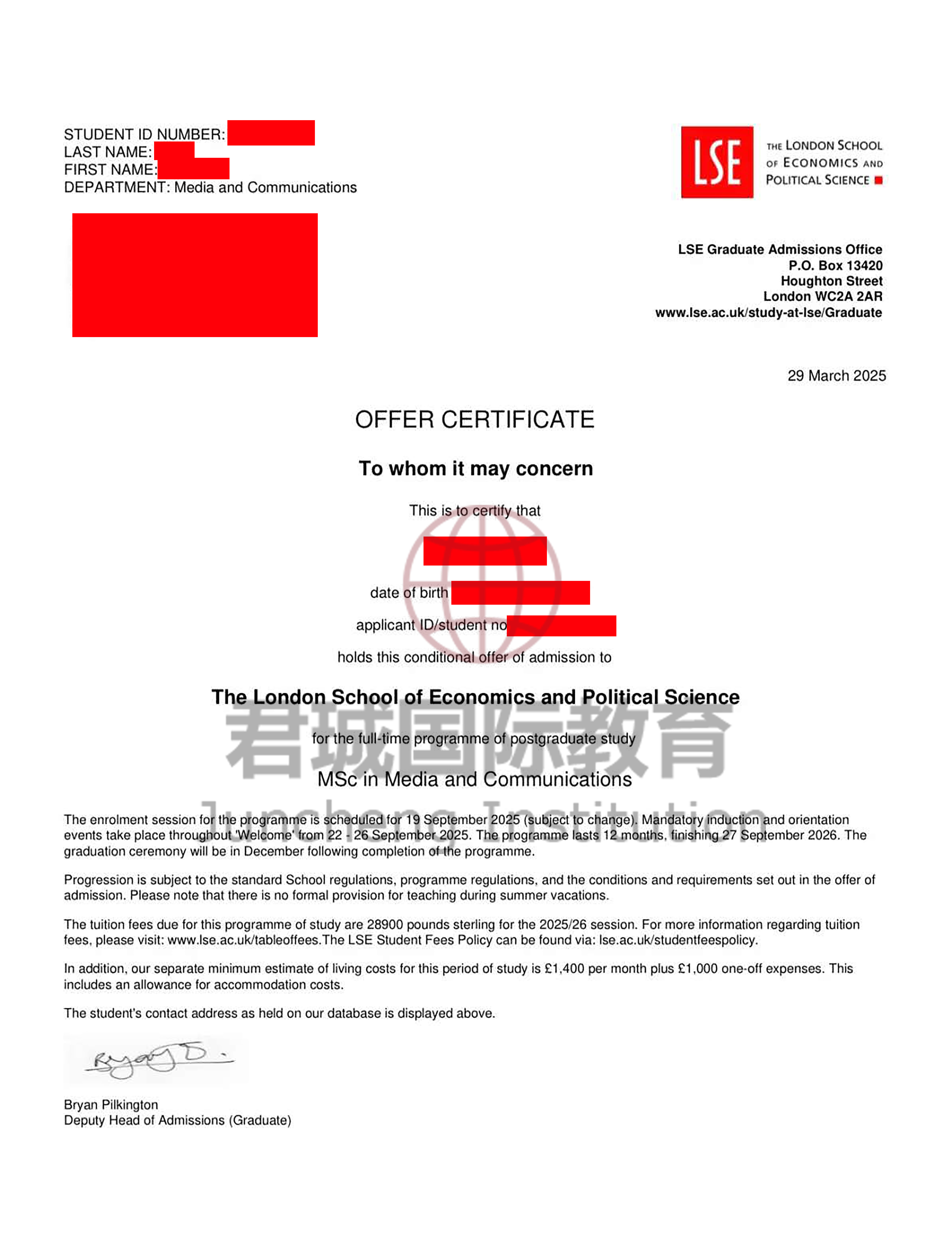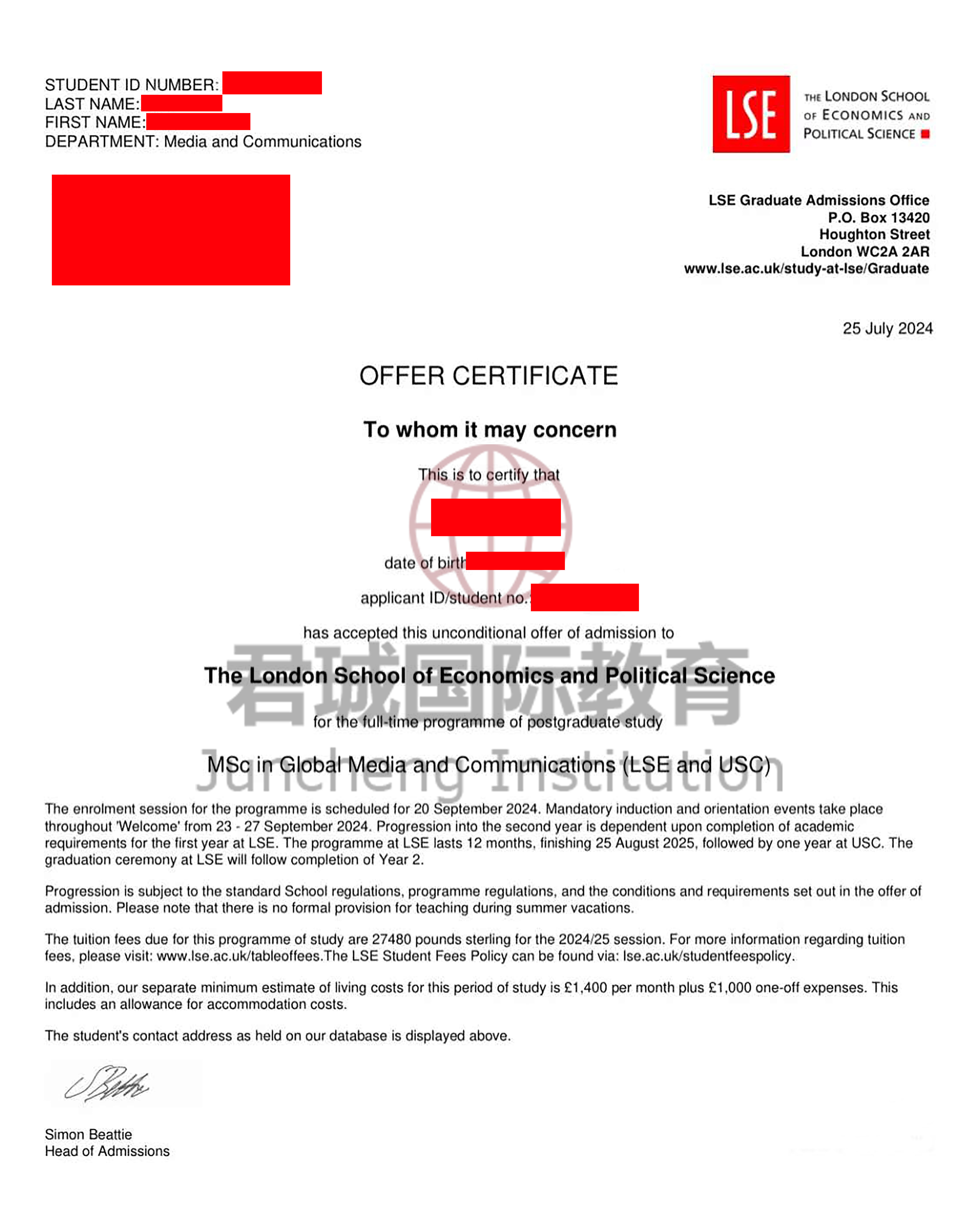录取Offer:伦敦政经 The London School of Economics and Political Science