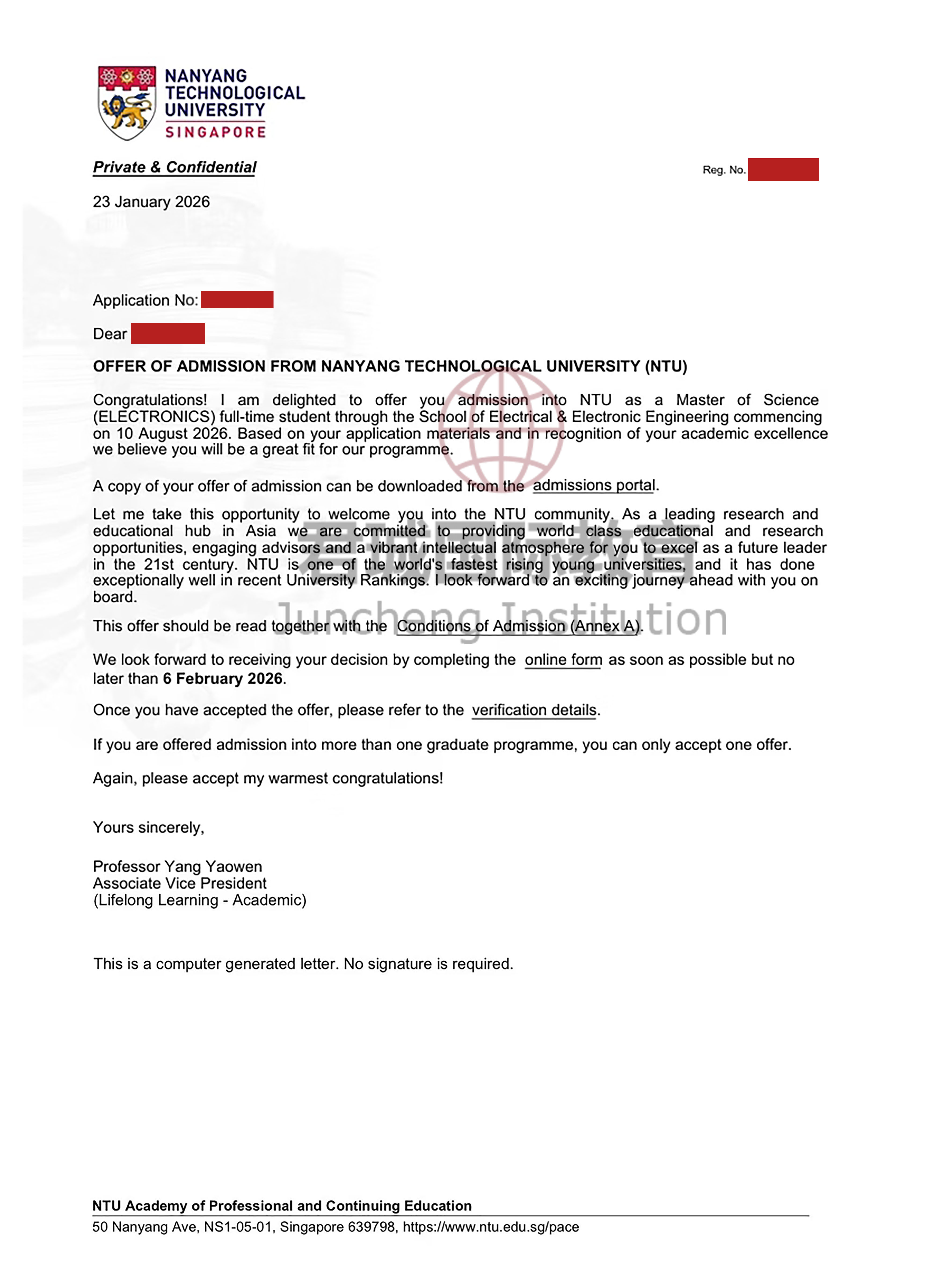 录取Offer:南洋理工大学 Nanyang Technological University, Singapore