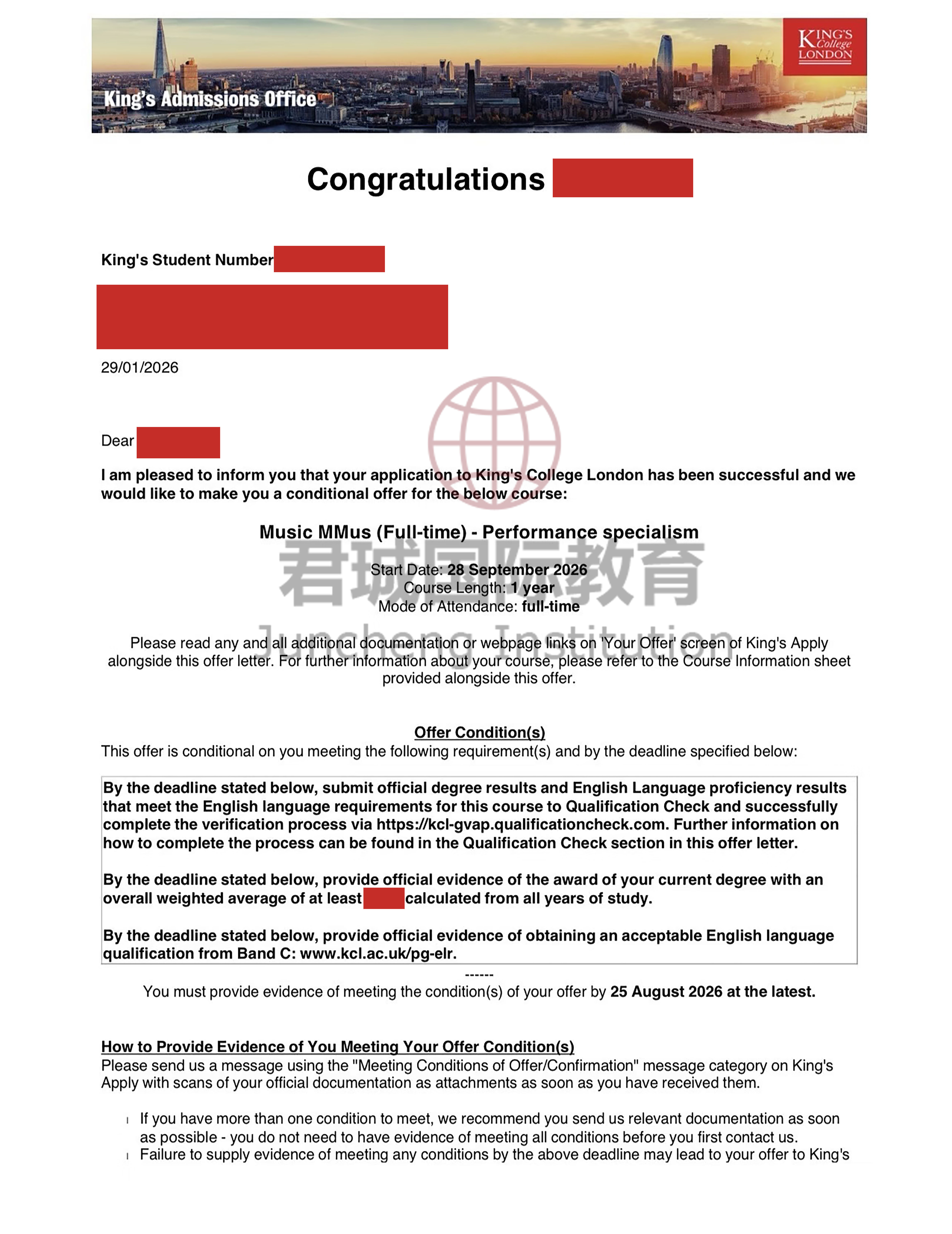 录取Offer:伦敦国王学院 King's College London
