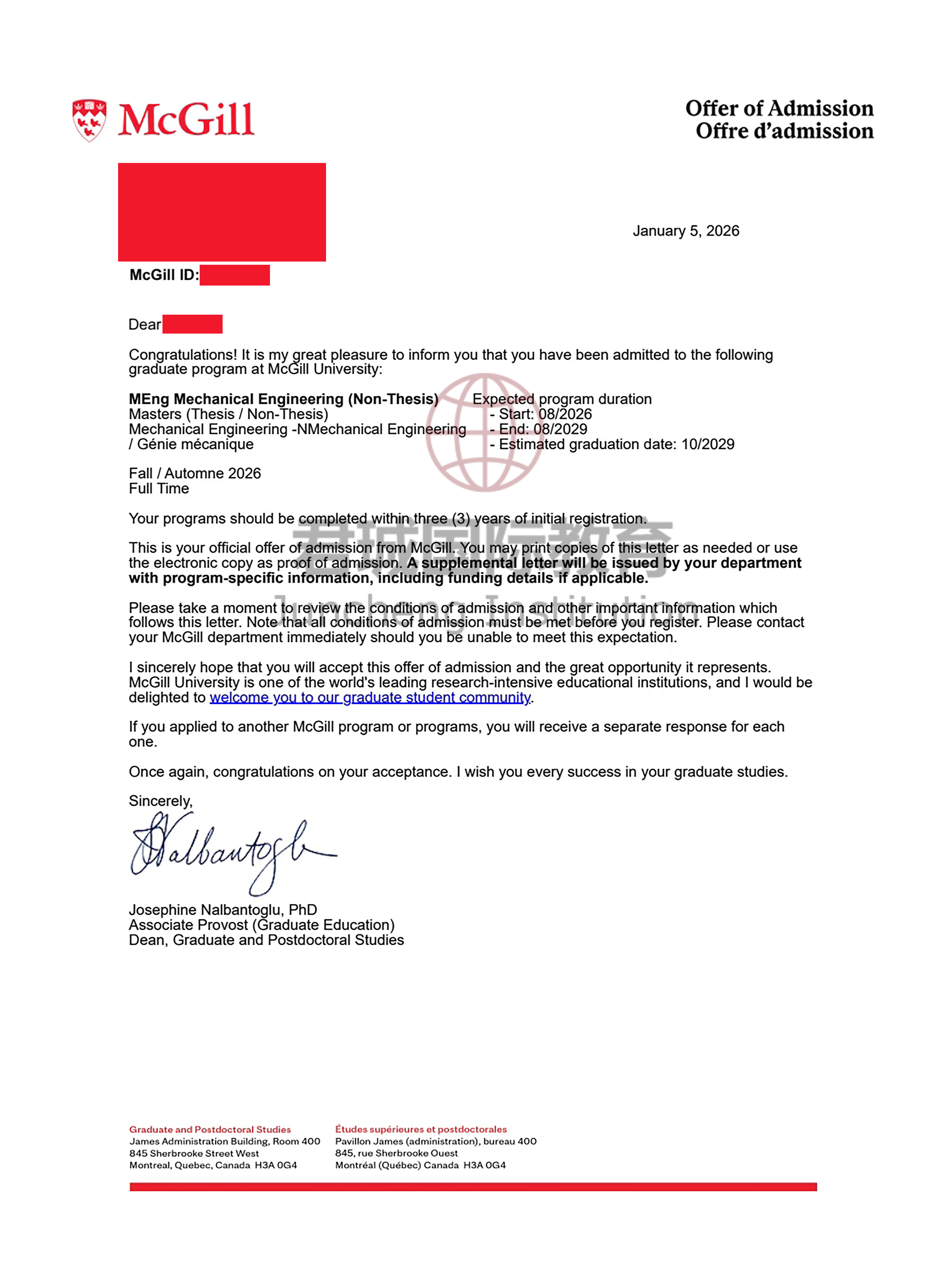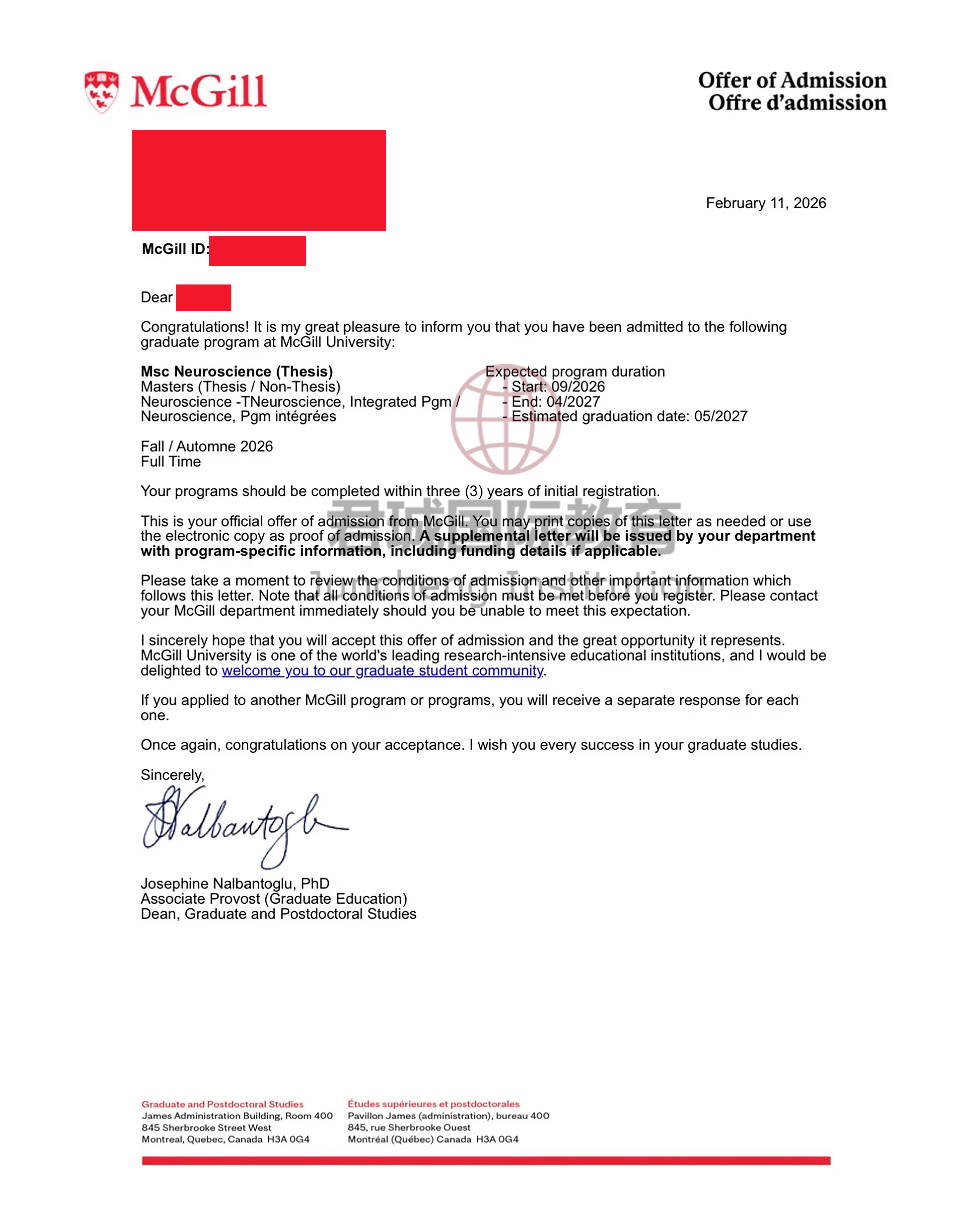 录取Offer:加拿大麦吉尔大学 McGill University