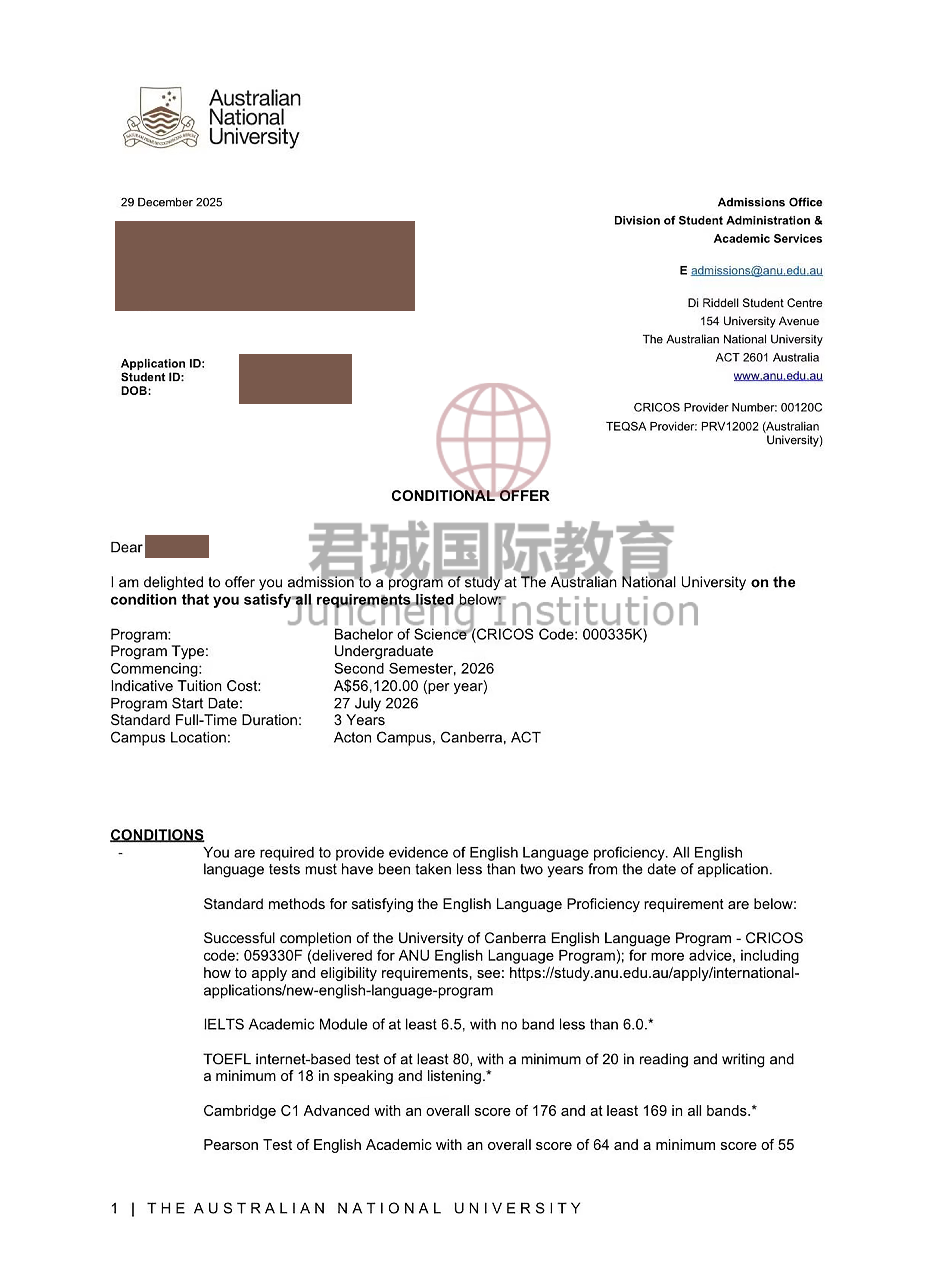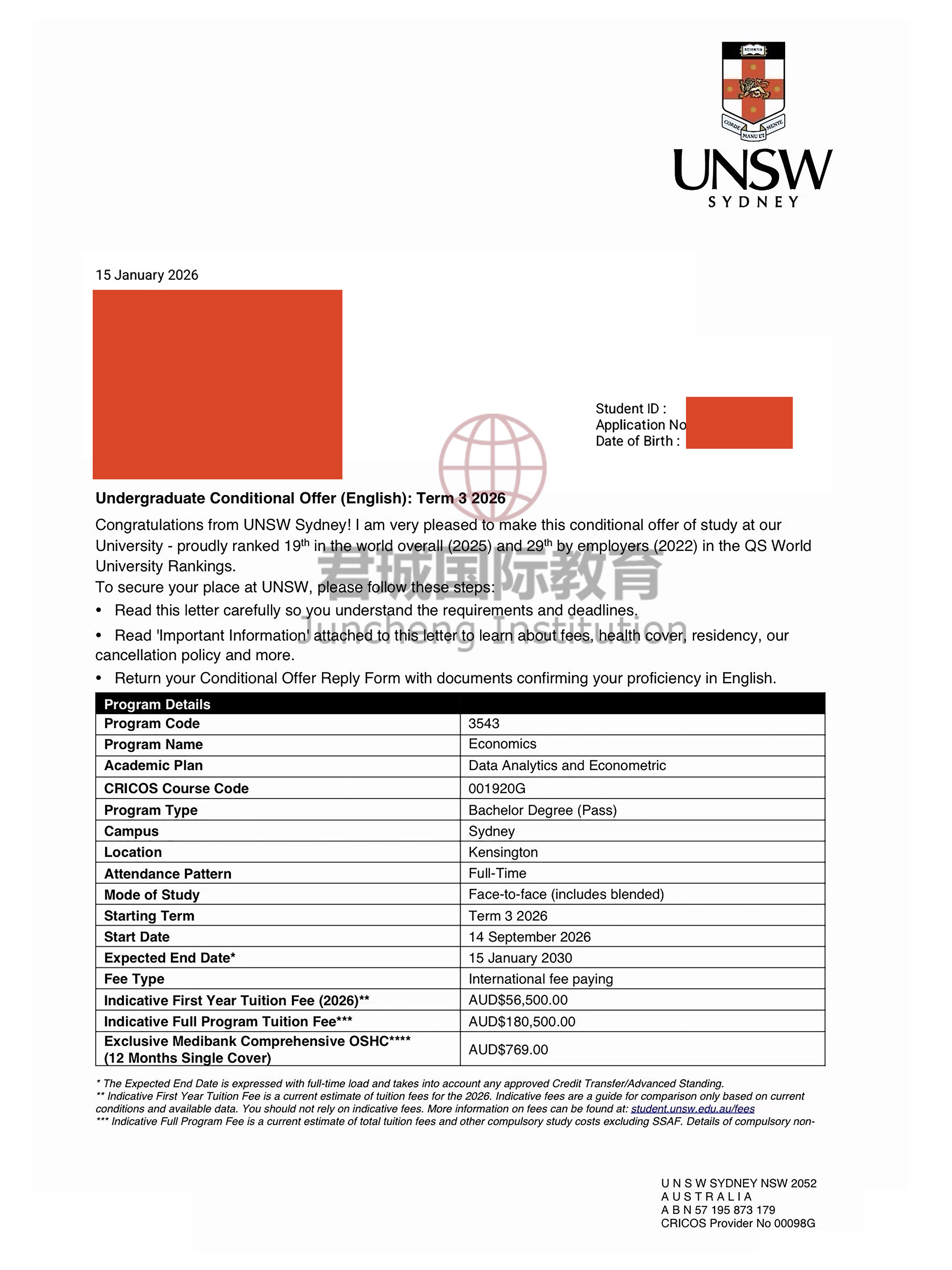 录取Offer:澳大利亚悉尼大学 University of Sydney