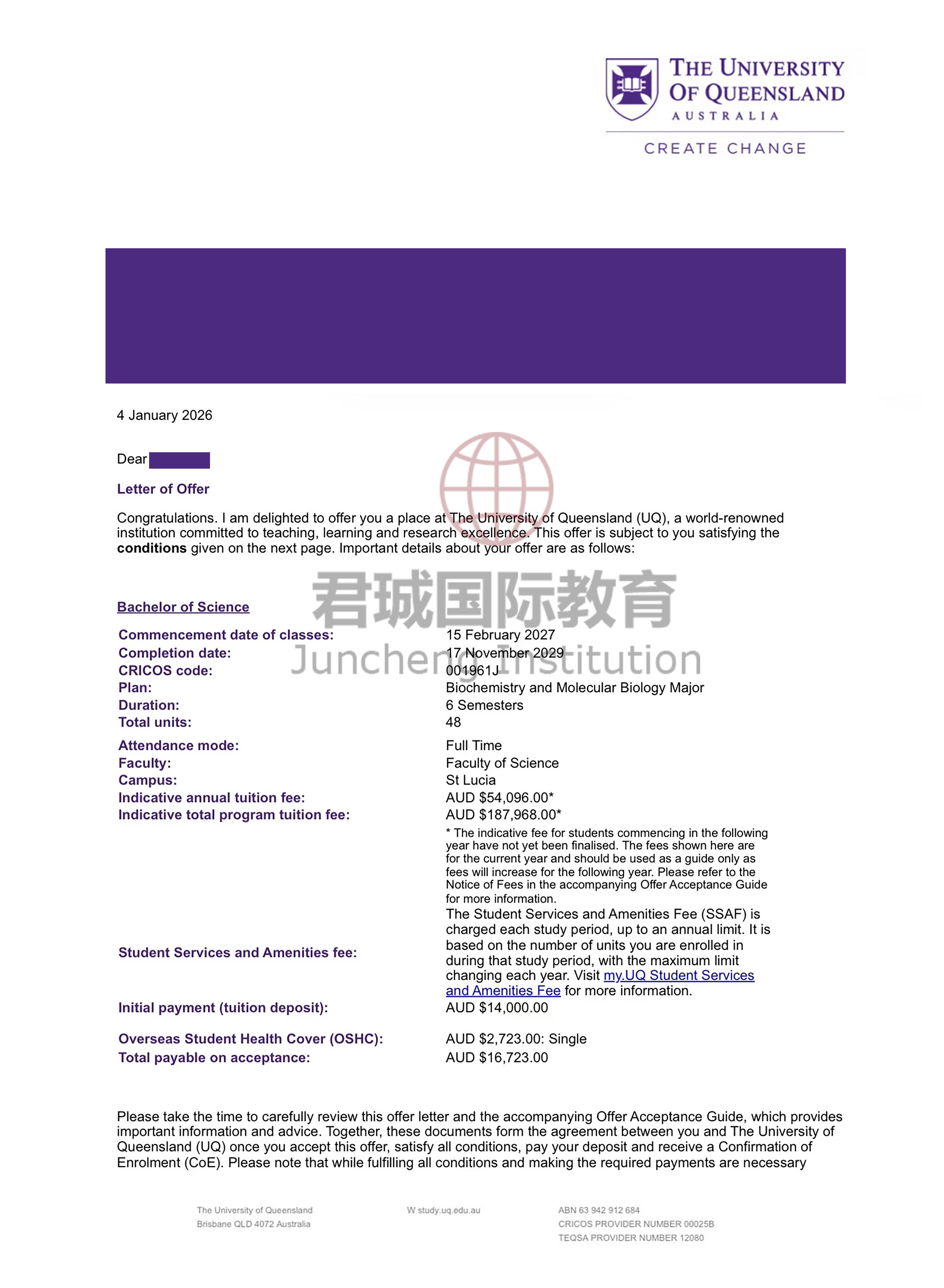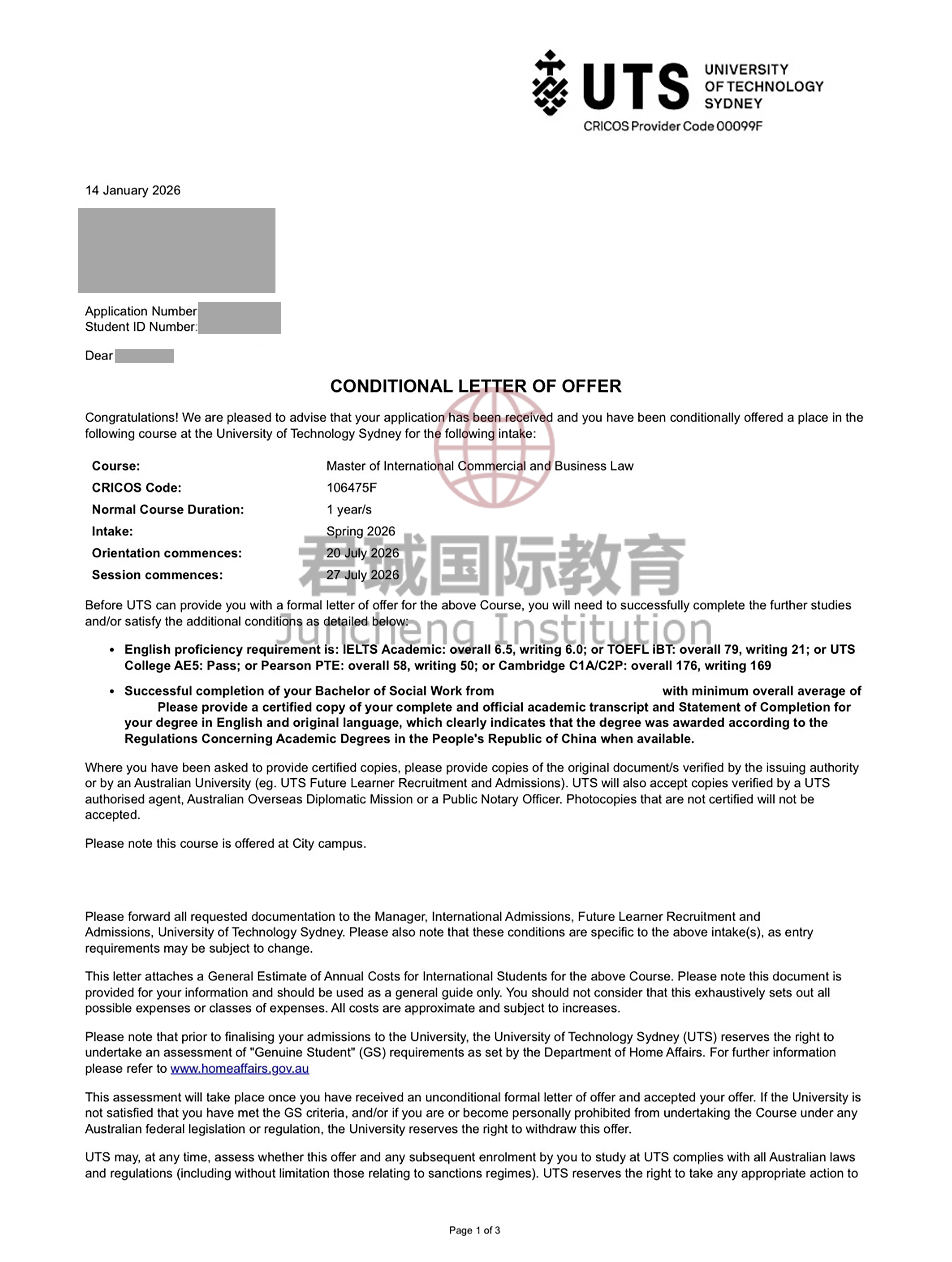 录取Offer:悉尼科技大学 University of Technology Sydney