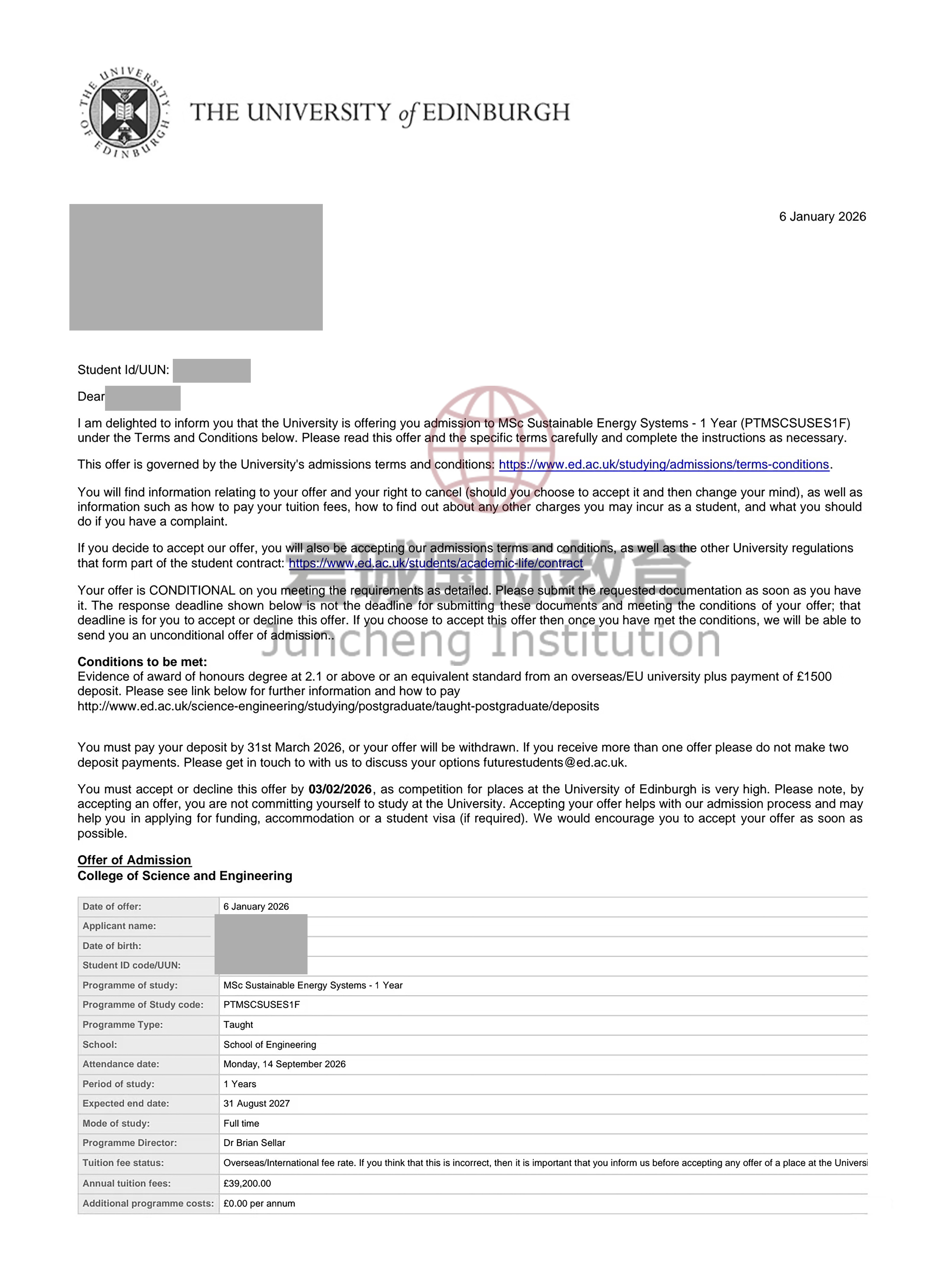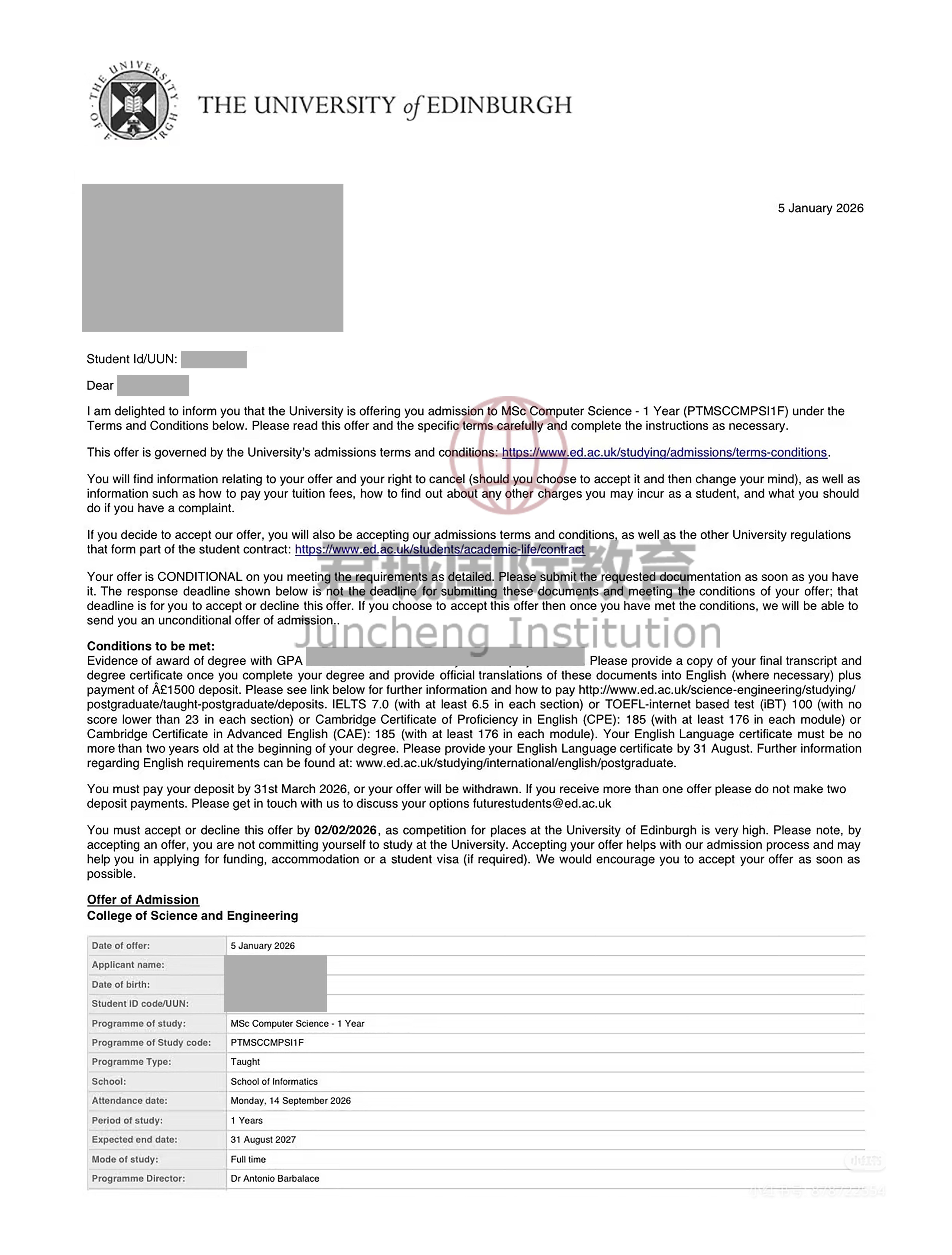 录取Offer:爱丁堡大学 University of Edinburgh