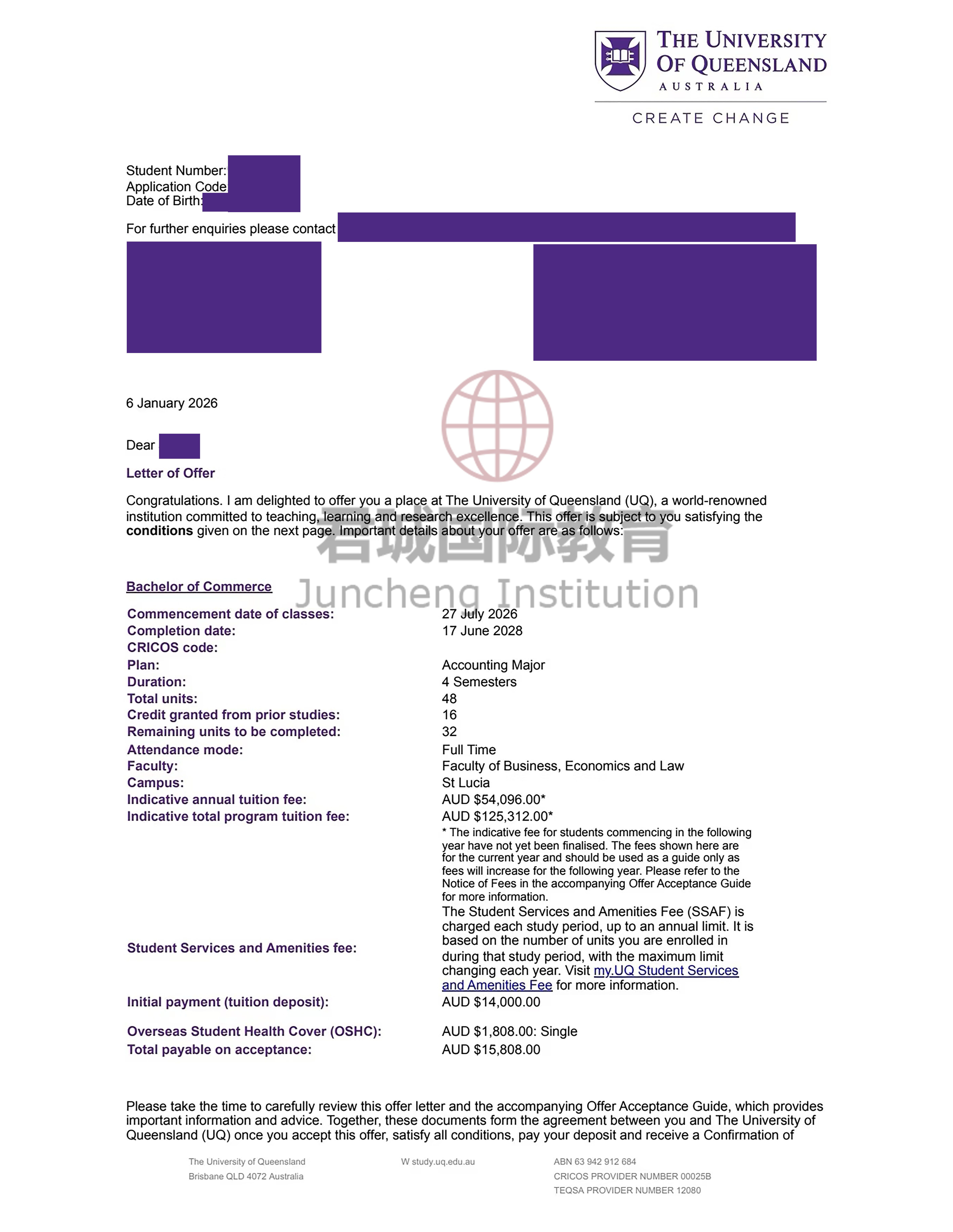 录取Offer:昆士兰大学 University of Queensland