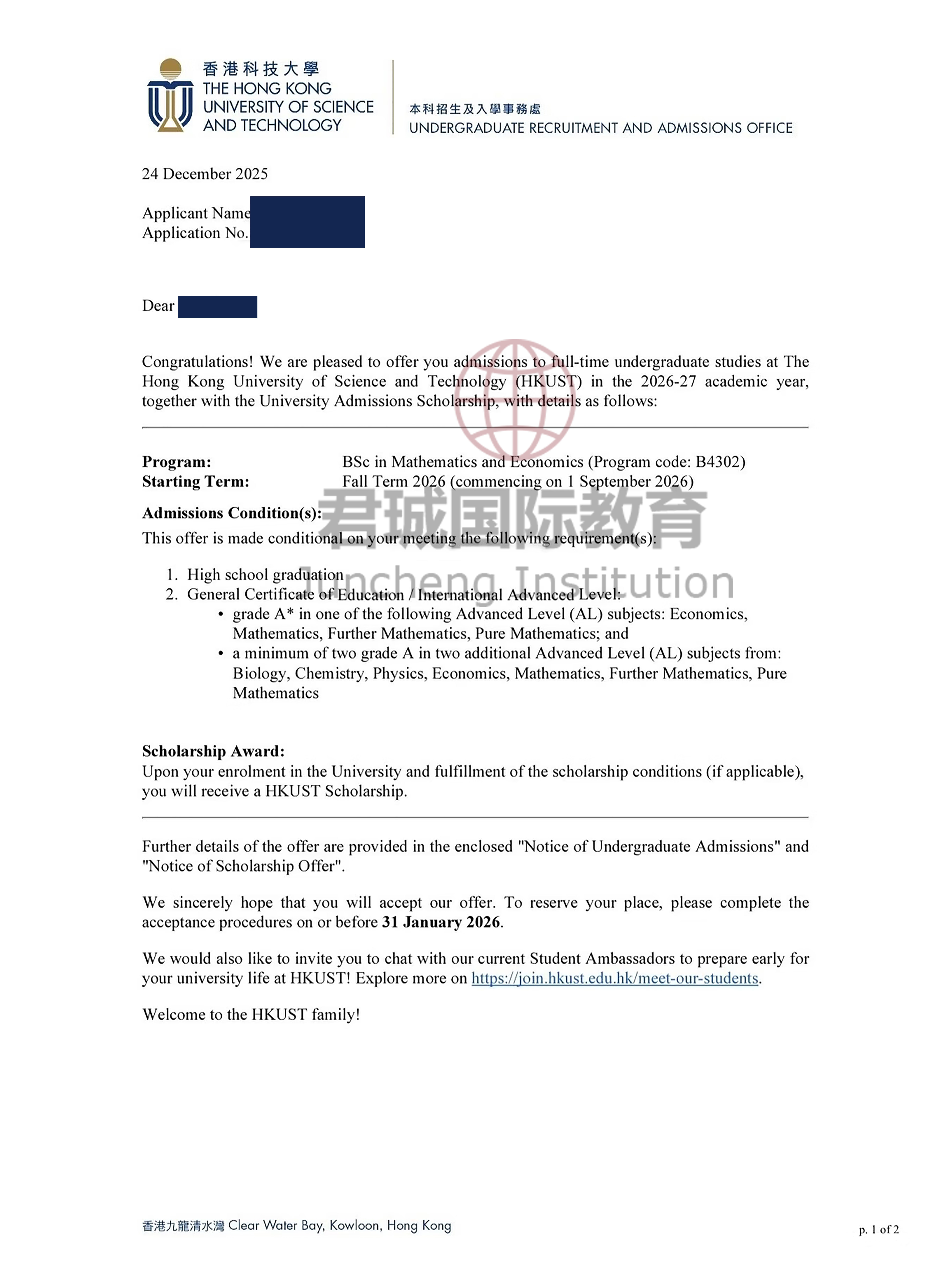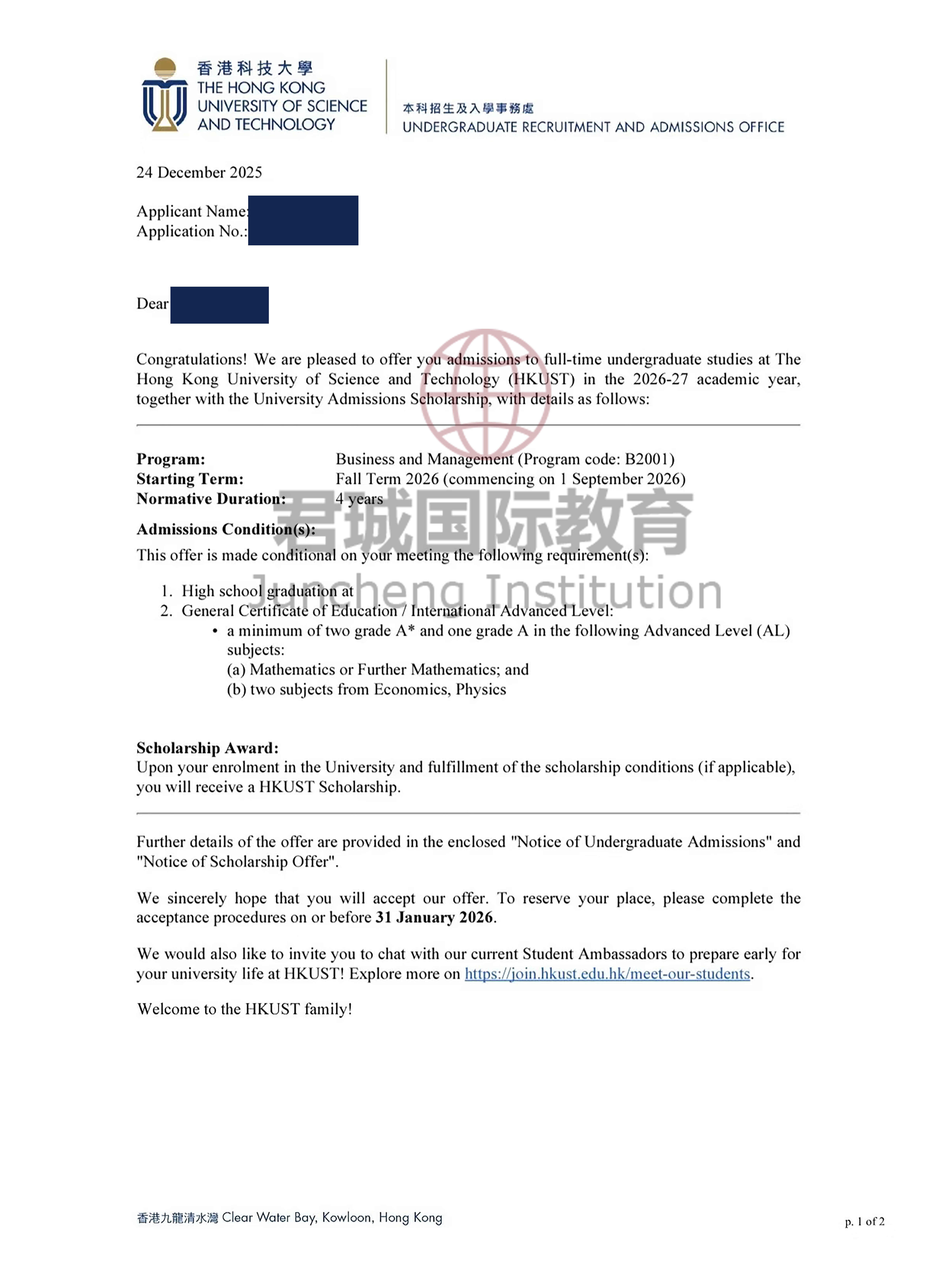 录取Offer:香港科技大学 Hong Kong University of Science and Technology