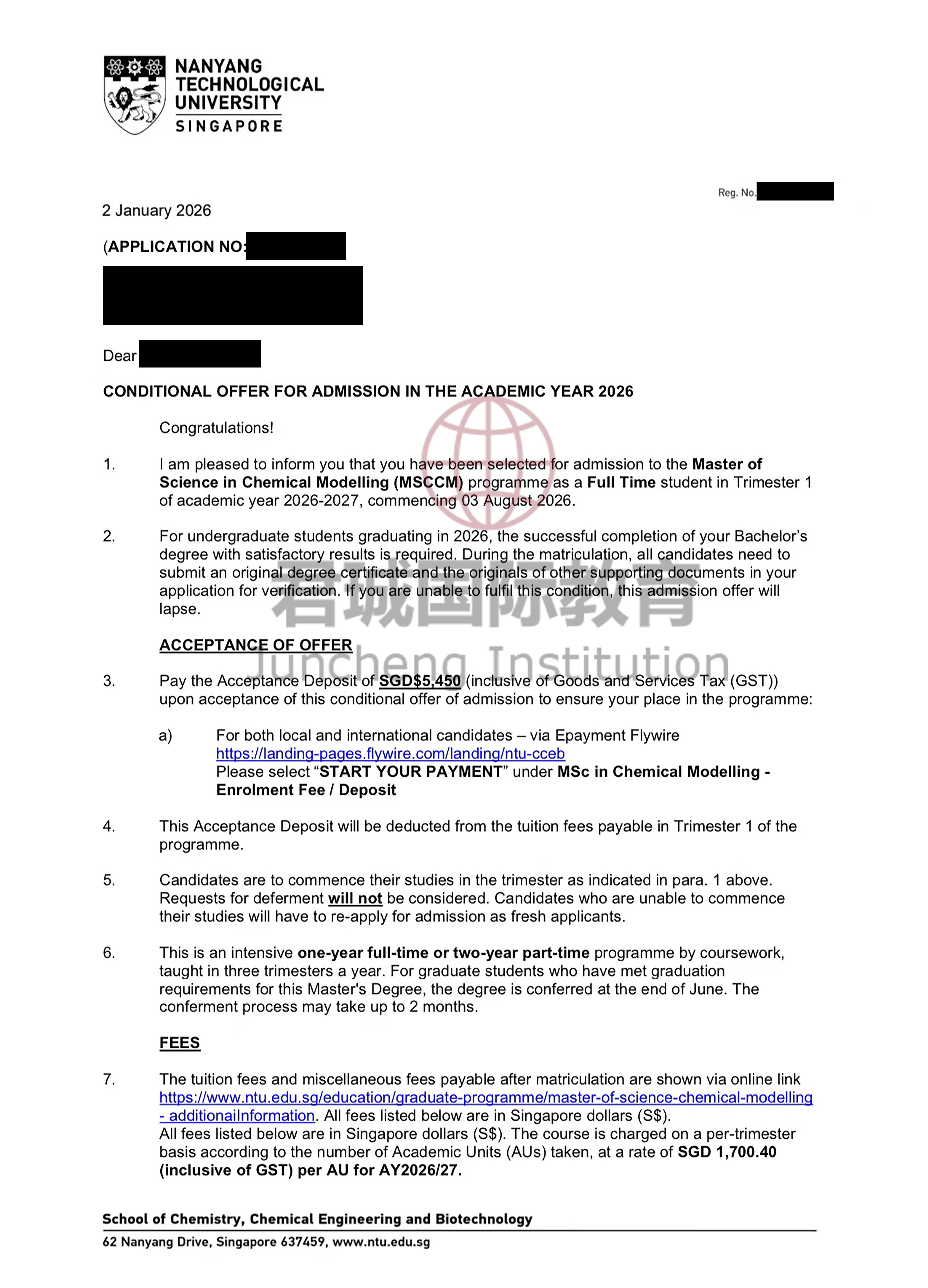 录取Offer:南洋理工大学 Nanyang Technological University, Singapore