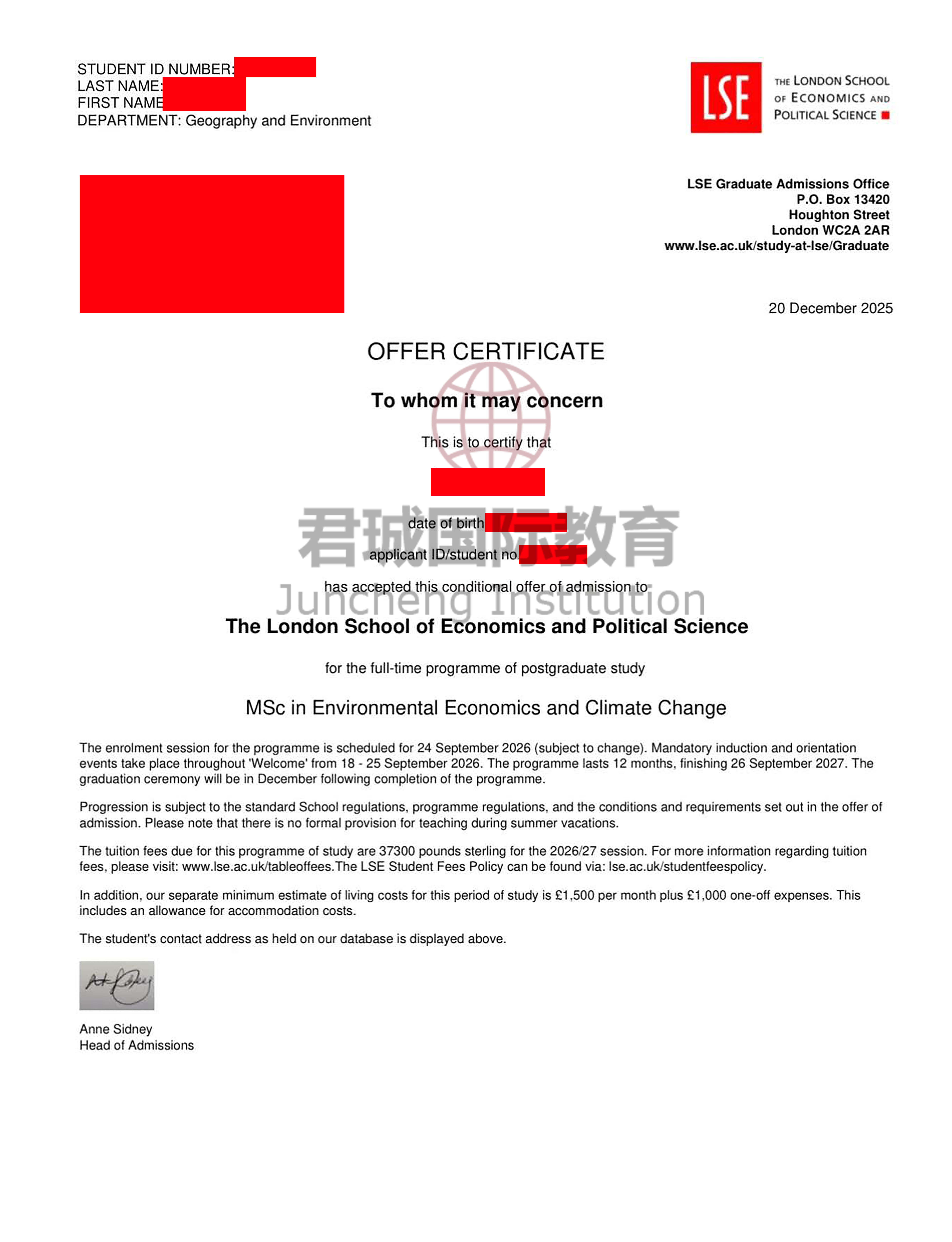录取Offer:伦敦政经 The London School of Economics and Political Science