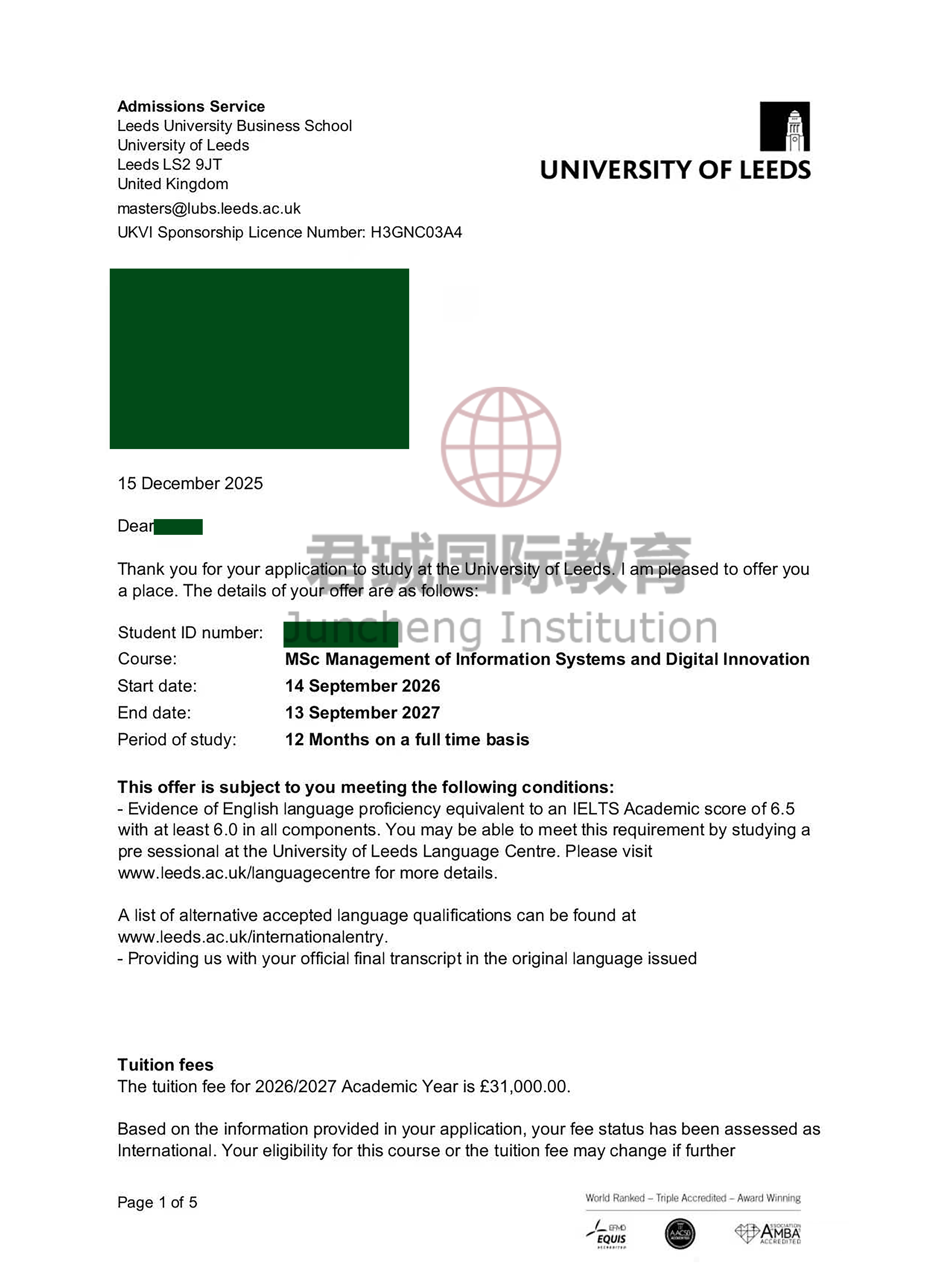 录取Offer:伦敦政经 The London School of Economics and Political Science