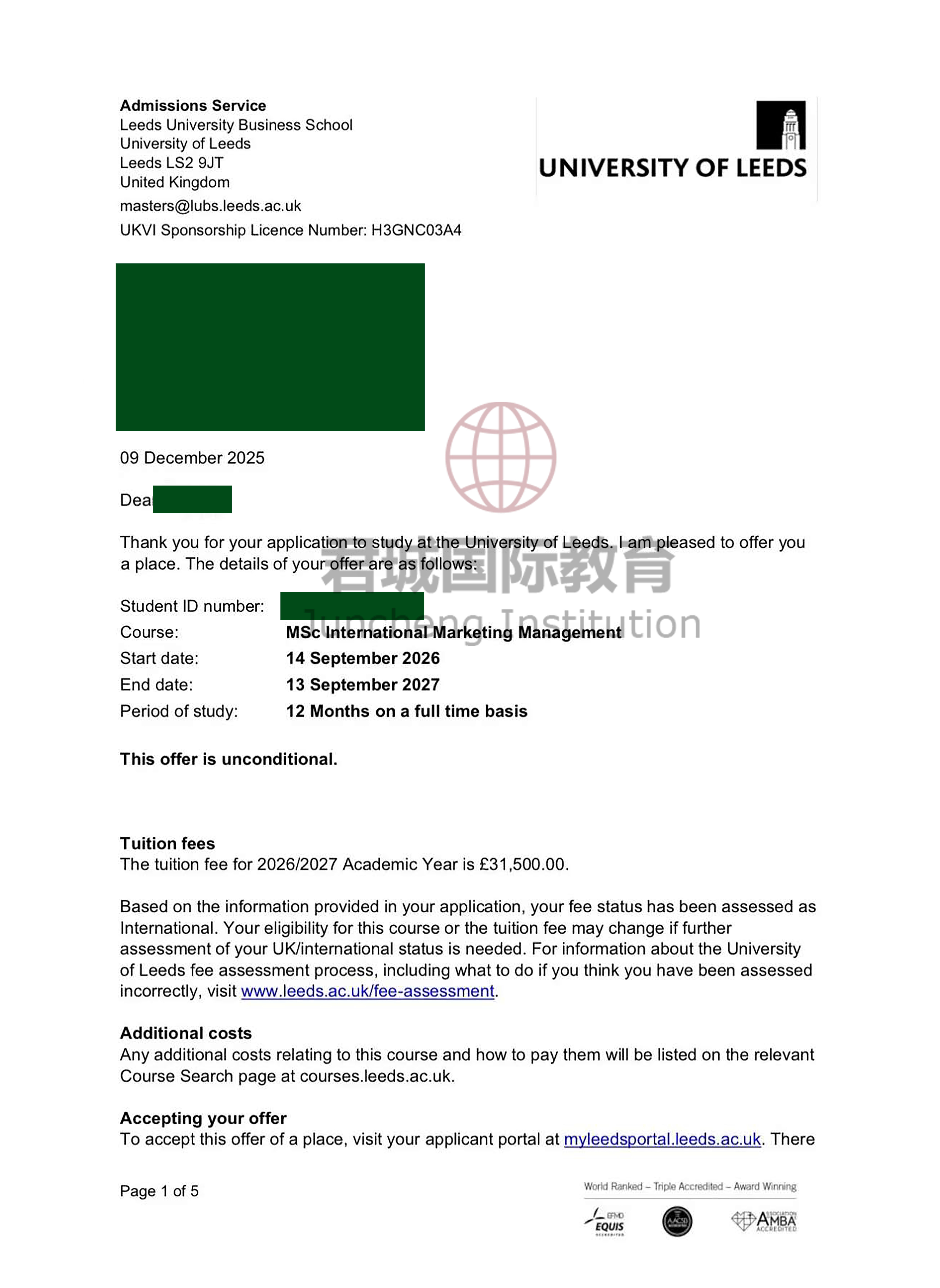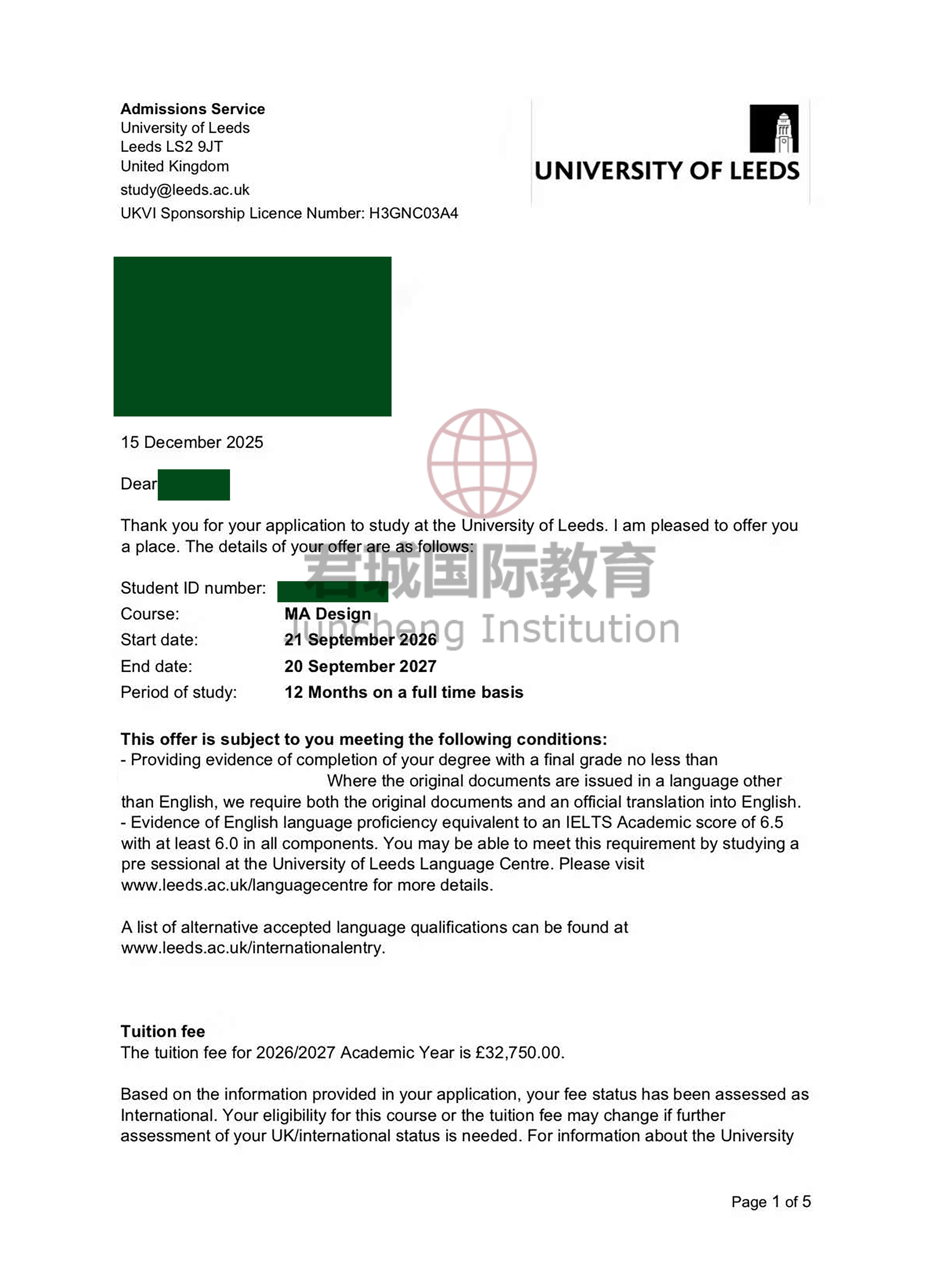 录取Offer:英国利兹大学 University of Leeds