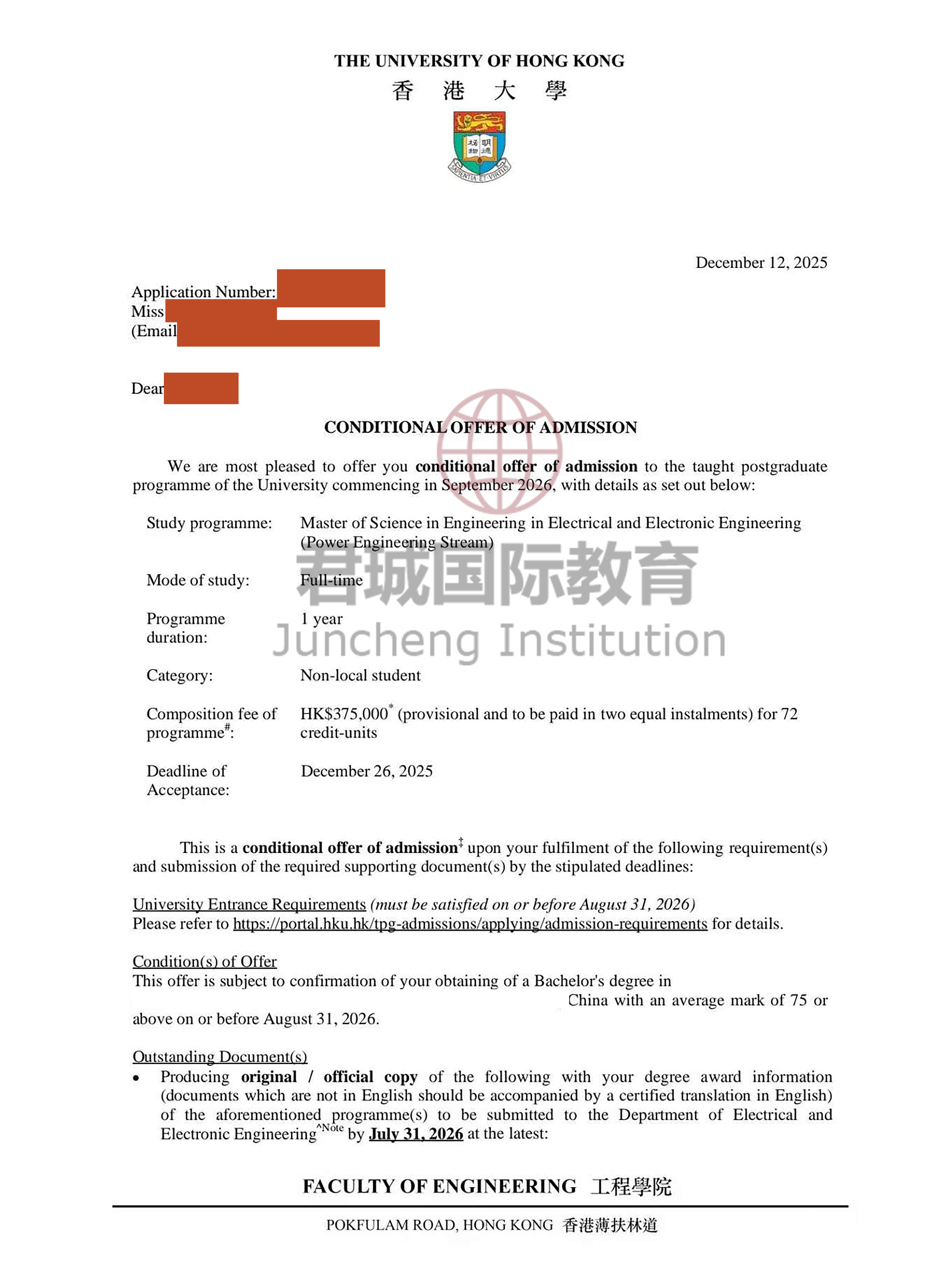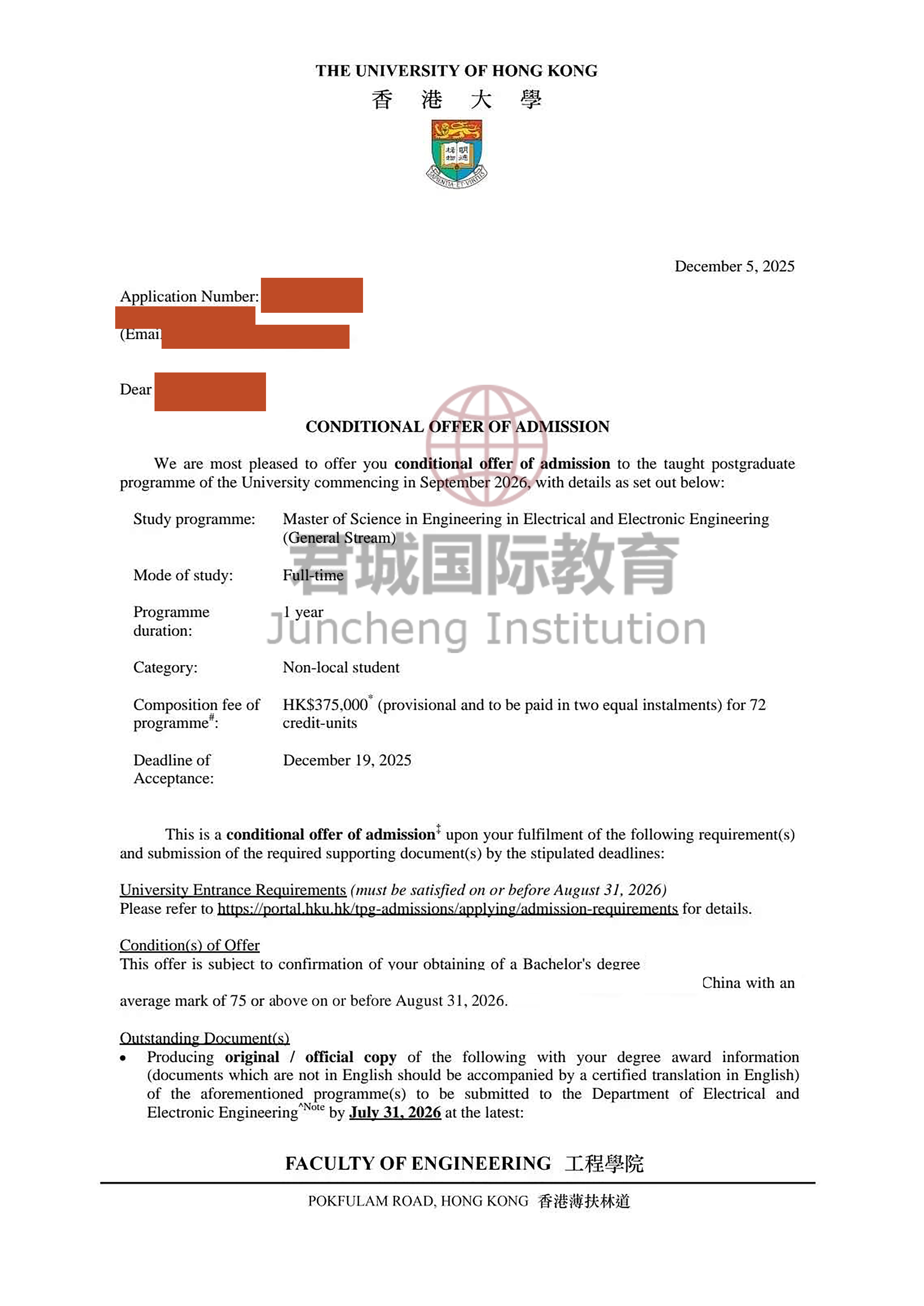 录取Offer:香港大学 University of Hong Kong