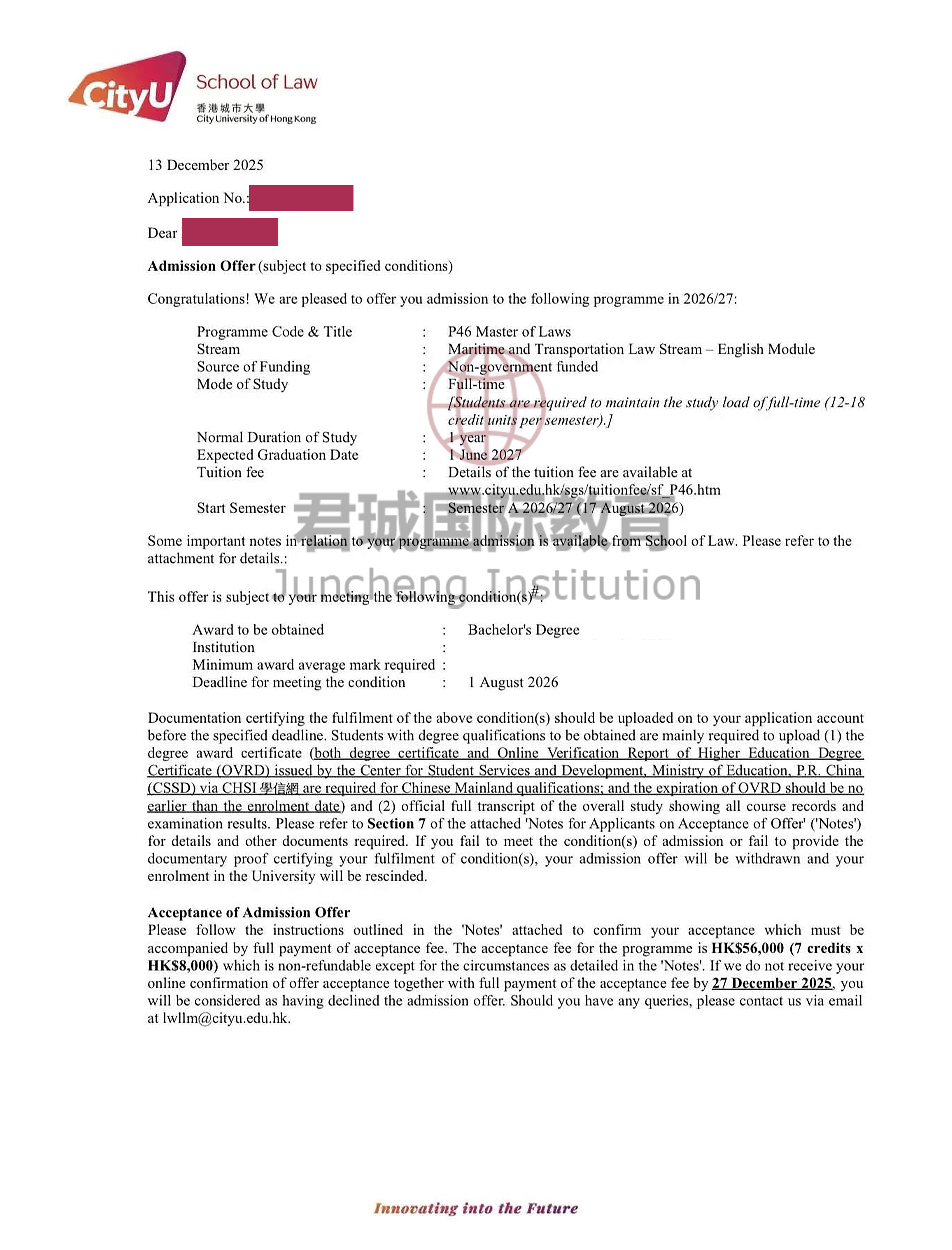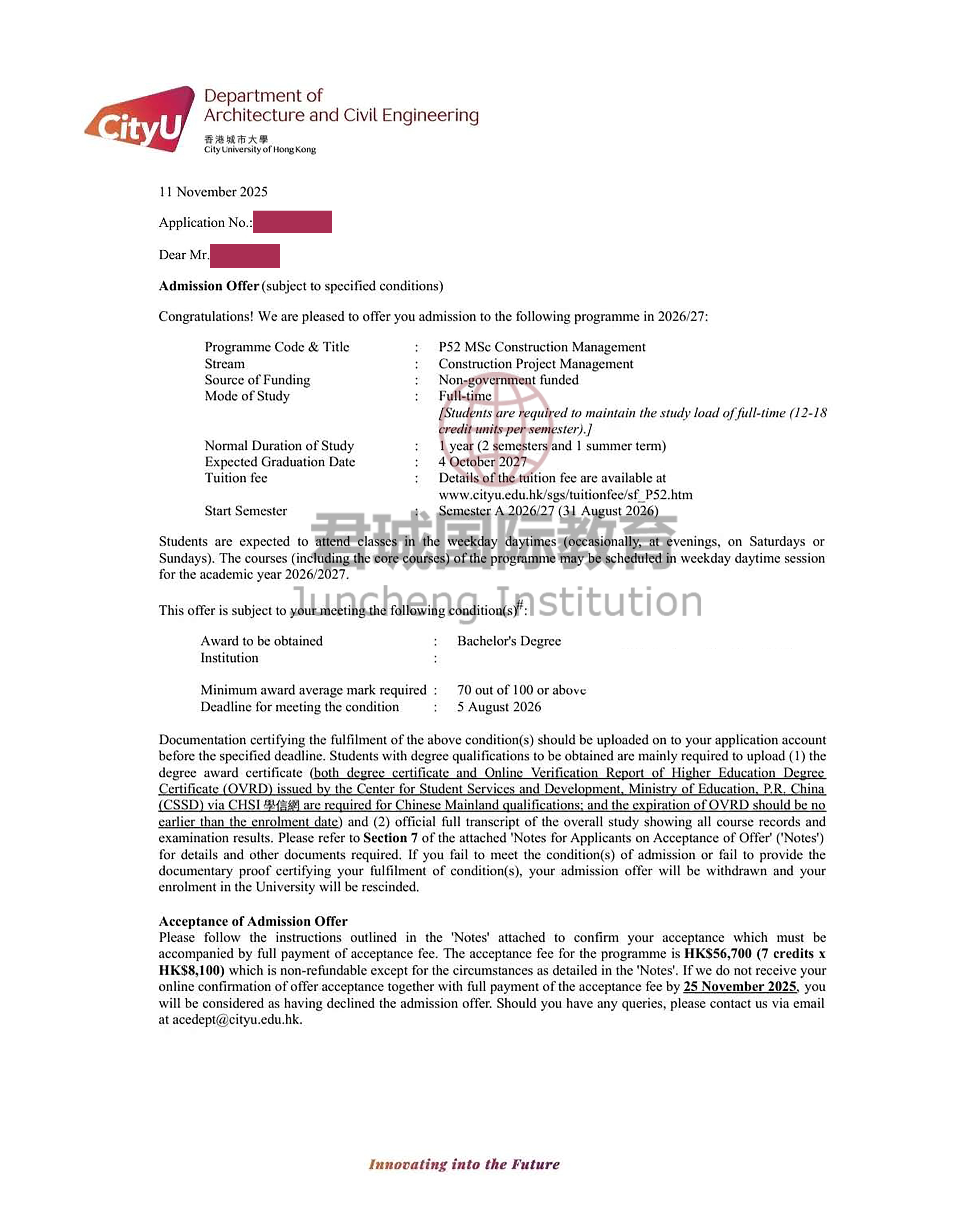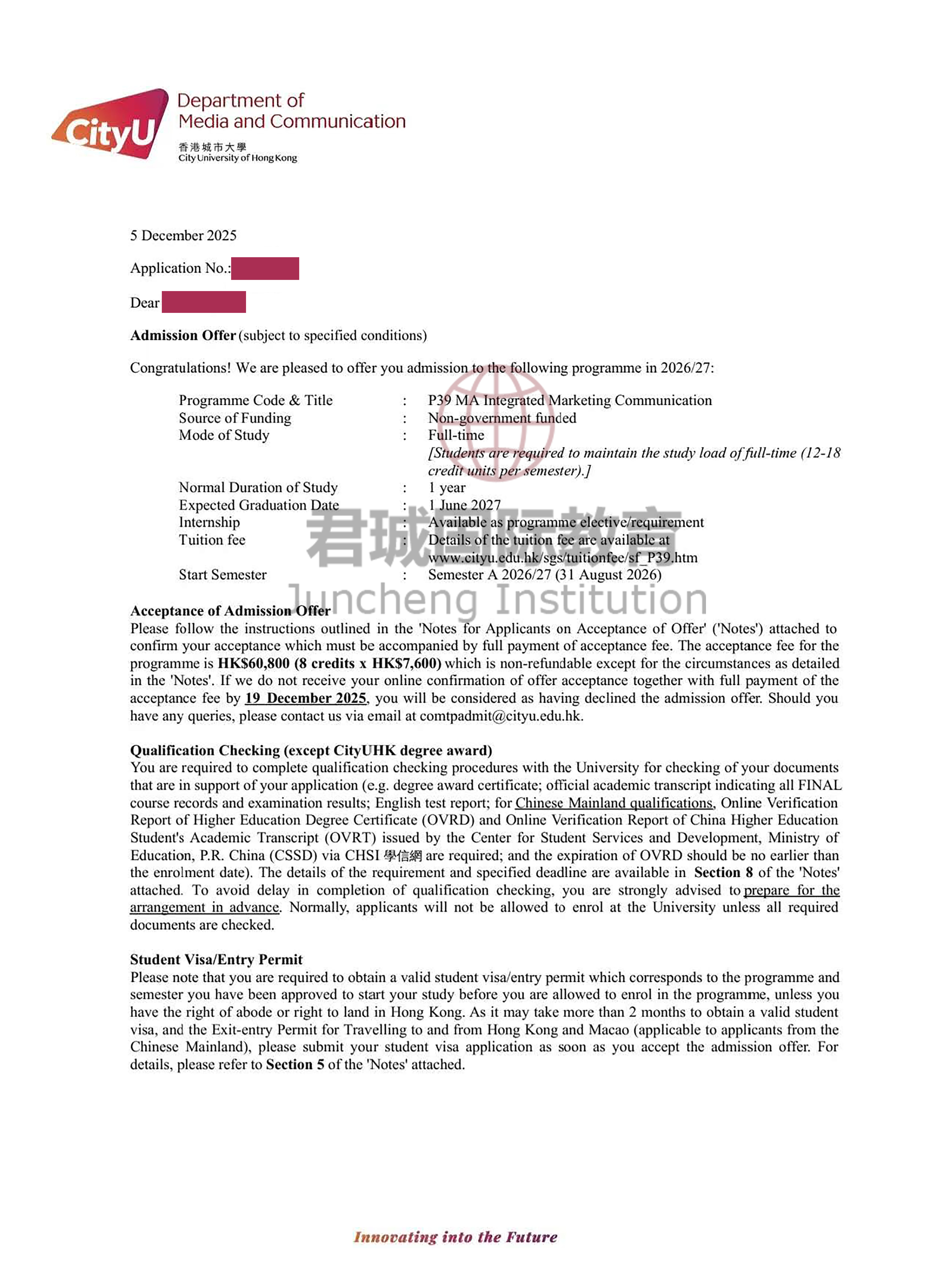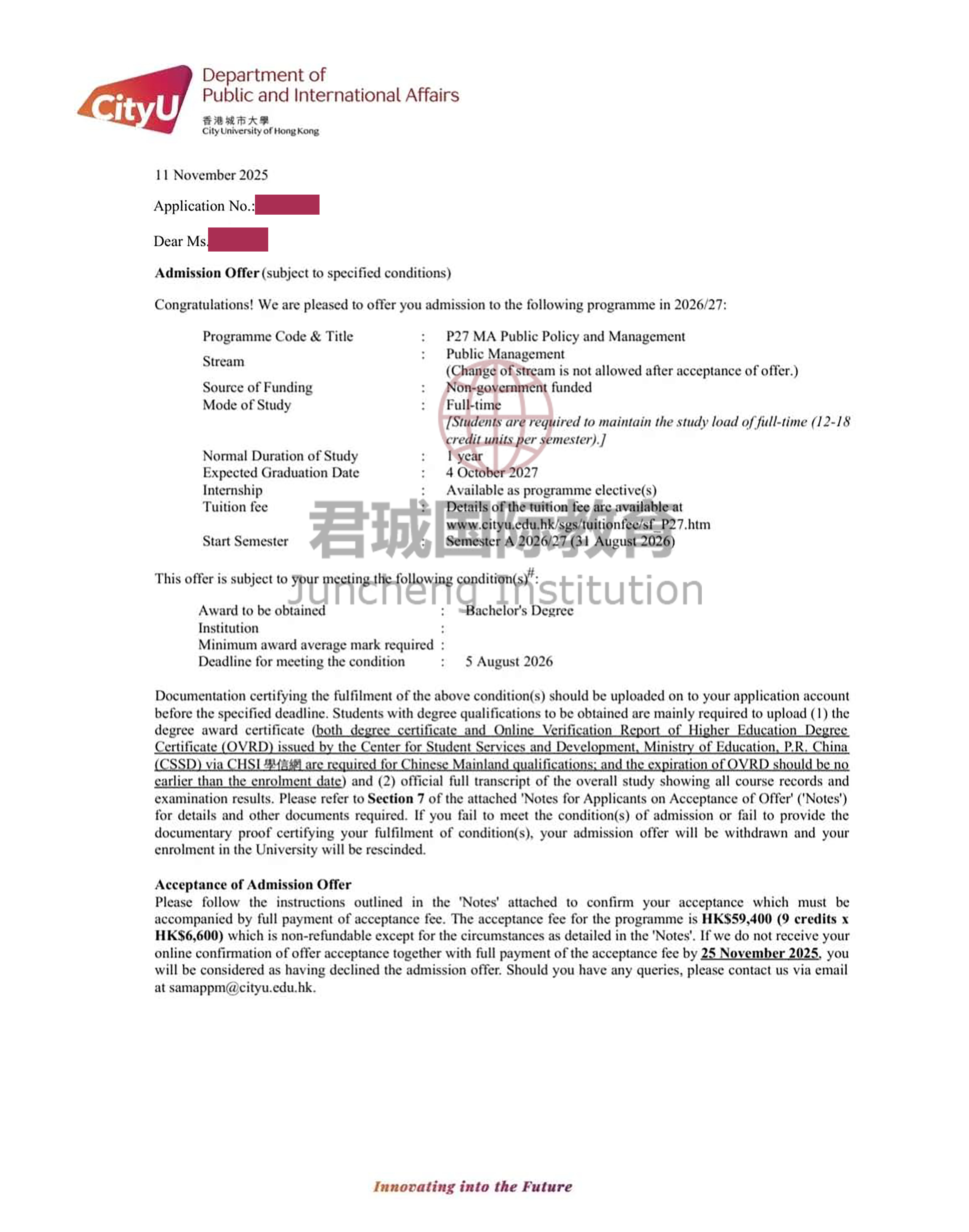 录取Offer:香港城市大学 City University of Hong Kong