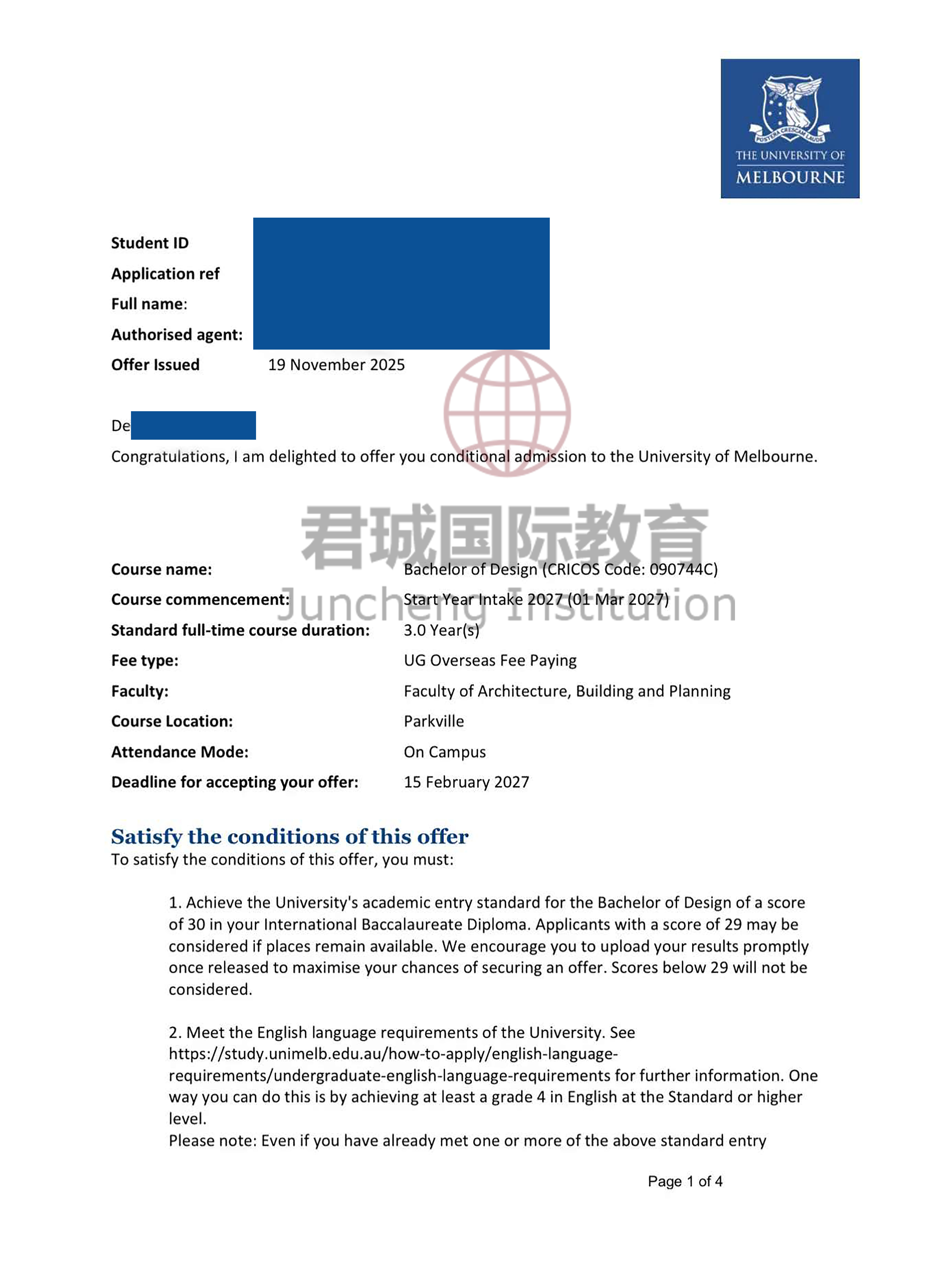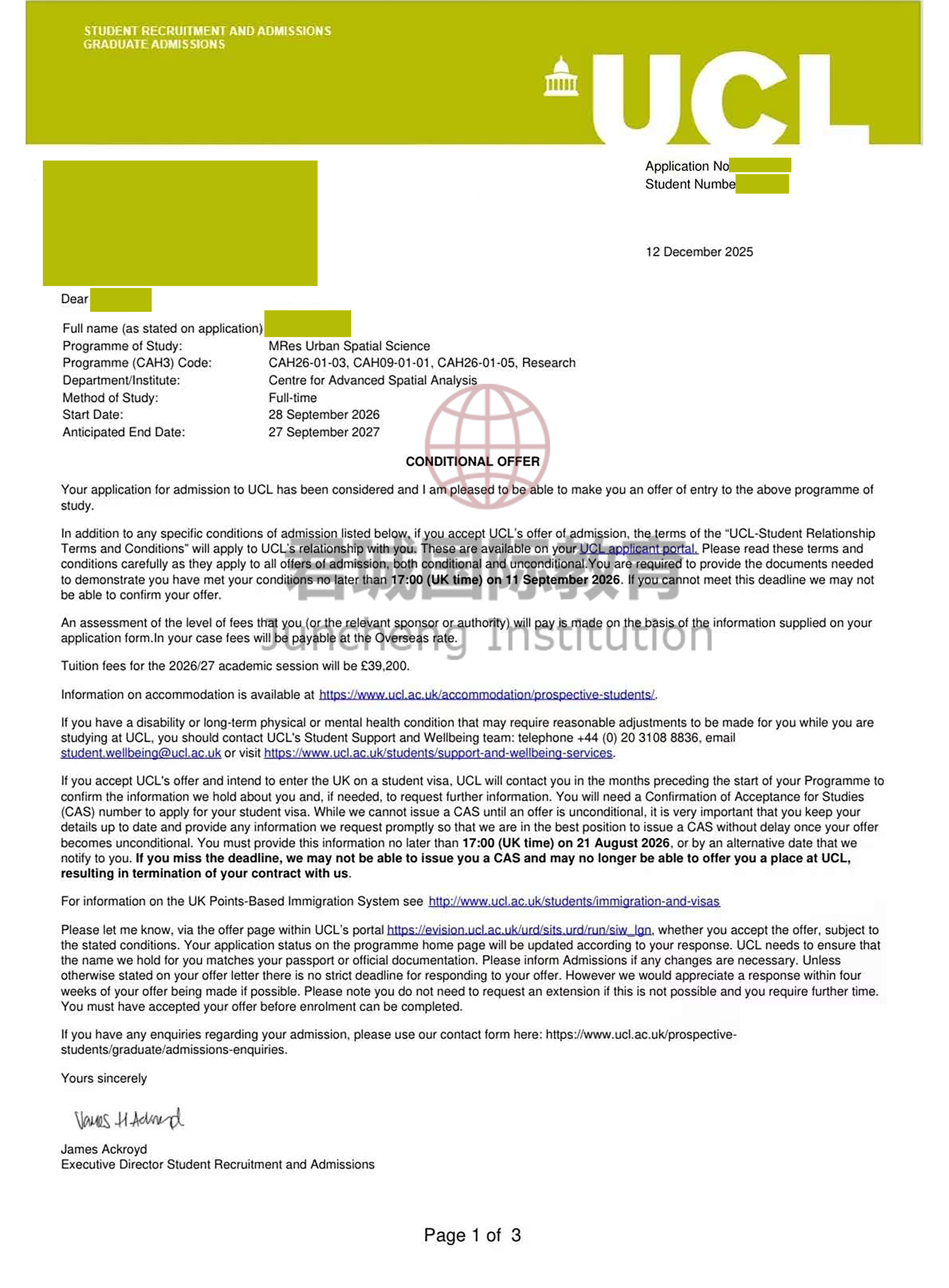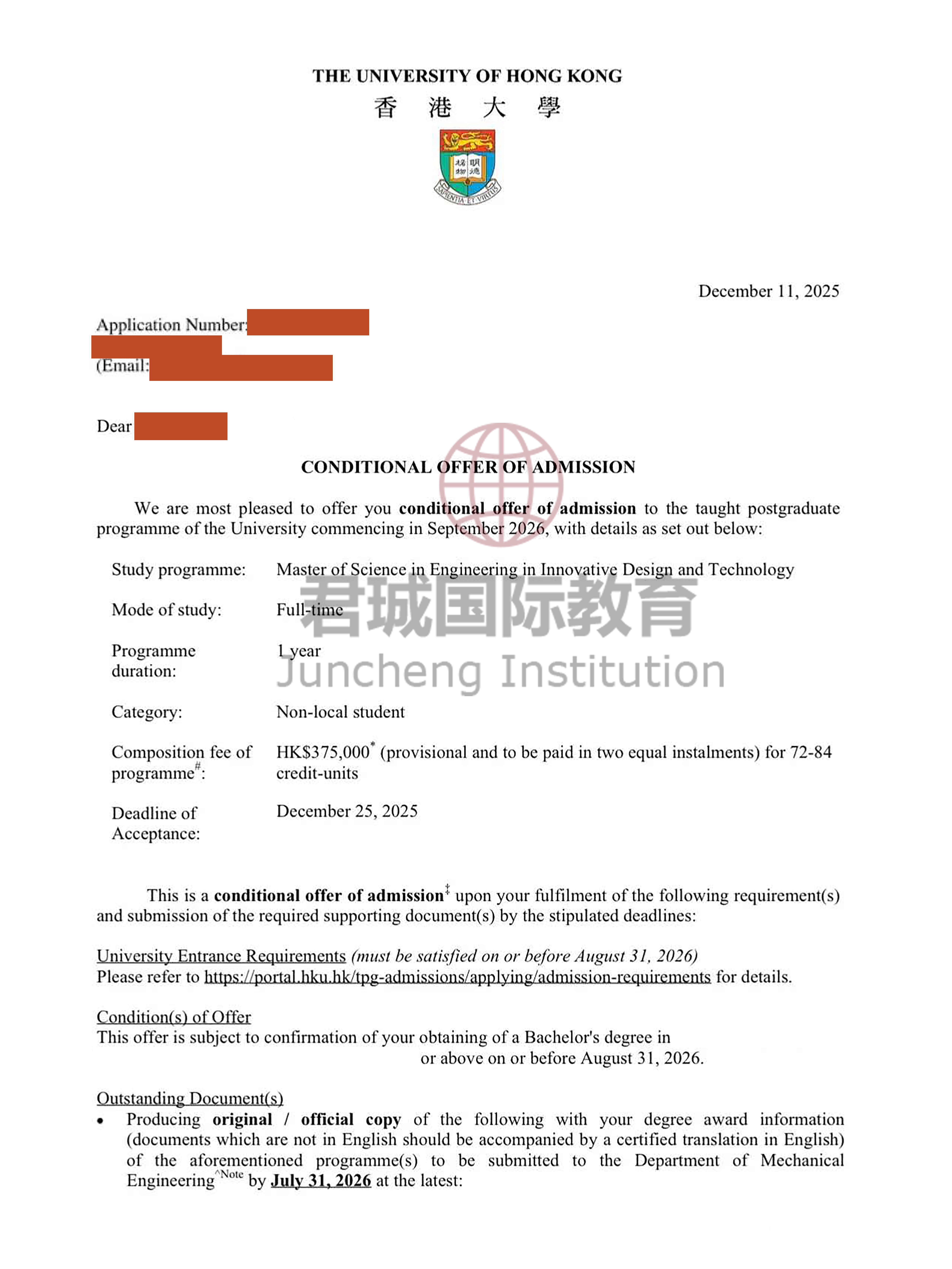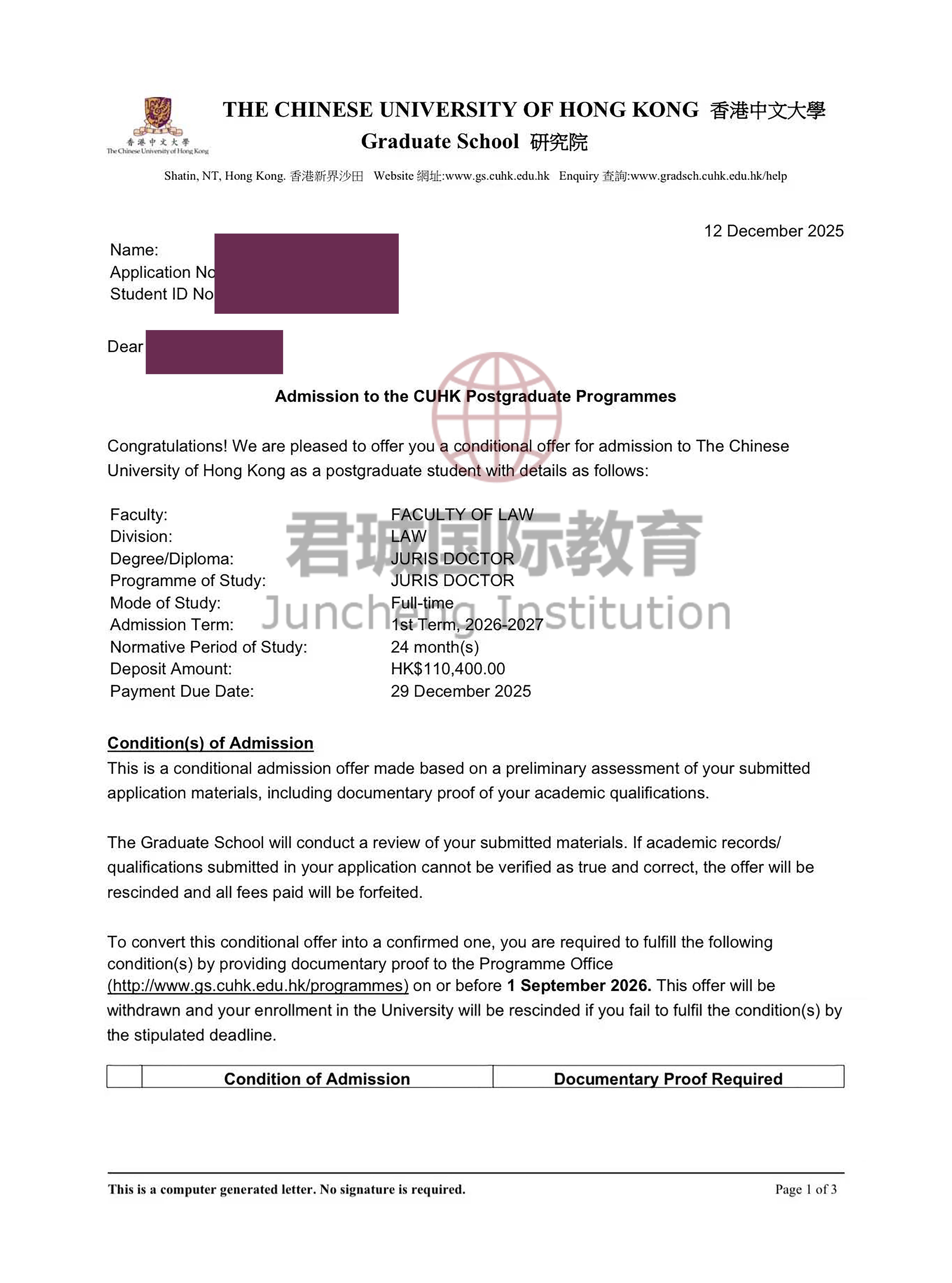 录取Offer:香港中文大学 The Chinese University of Hong Kong