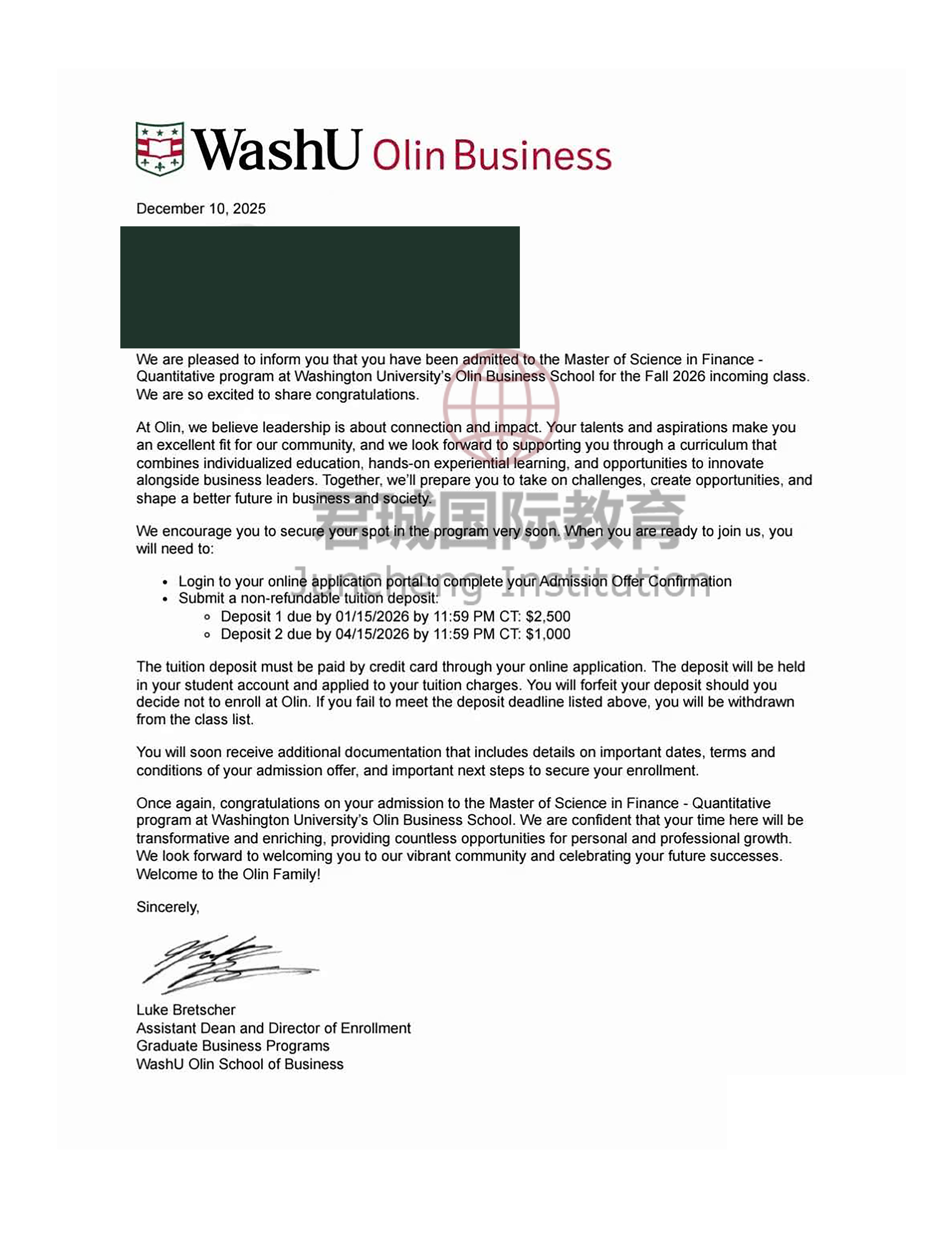 录取Offer:圣路易斯华盛顿大学 Washington University in St. Louis