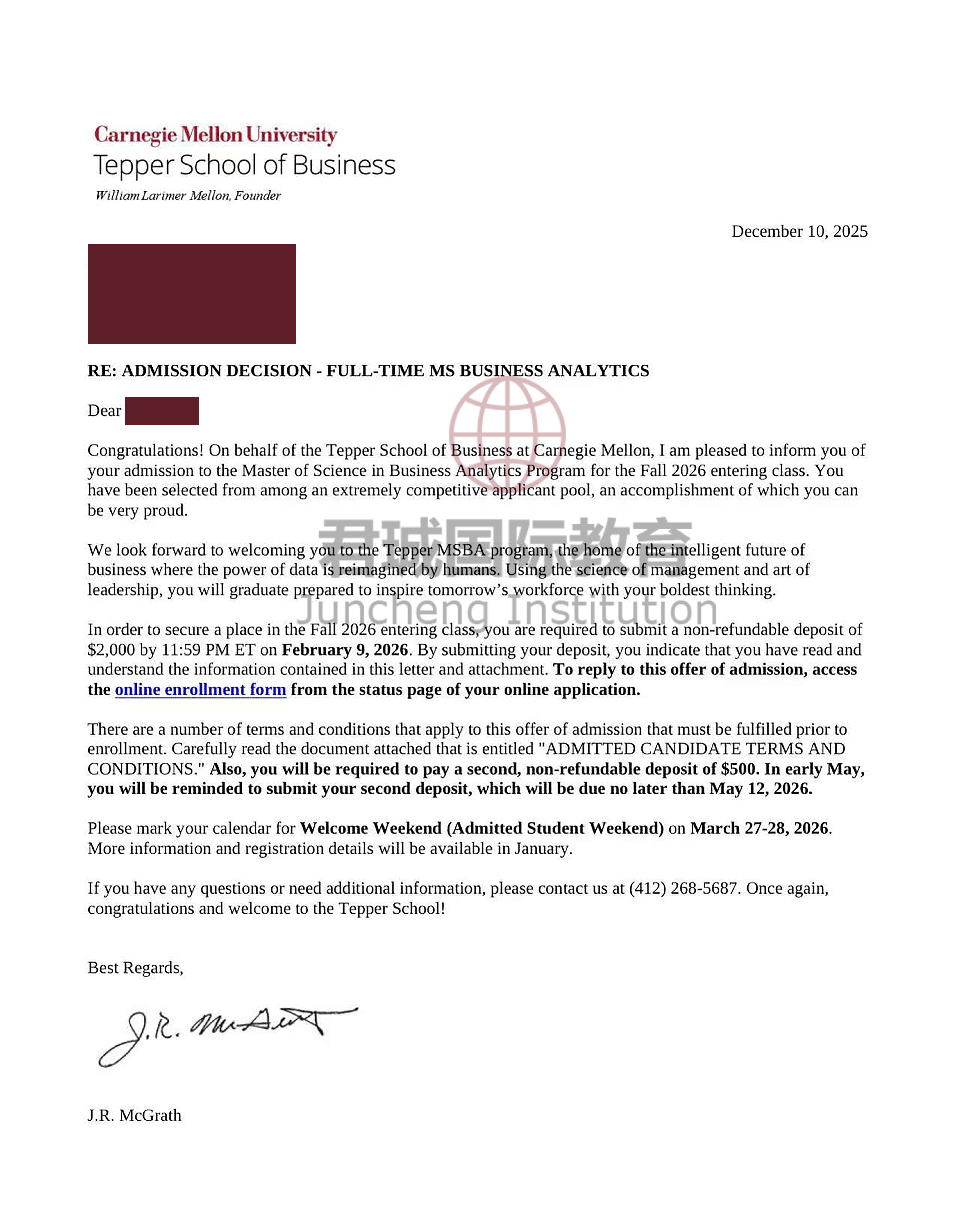 录取Offer:卡内基梅隆大学 Carnegie Mellon University