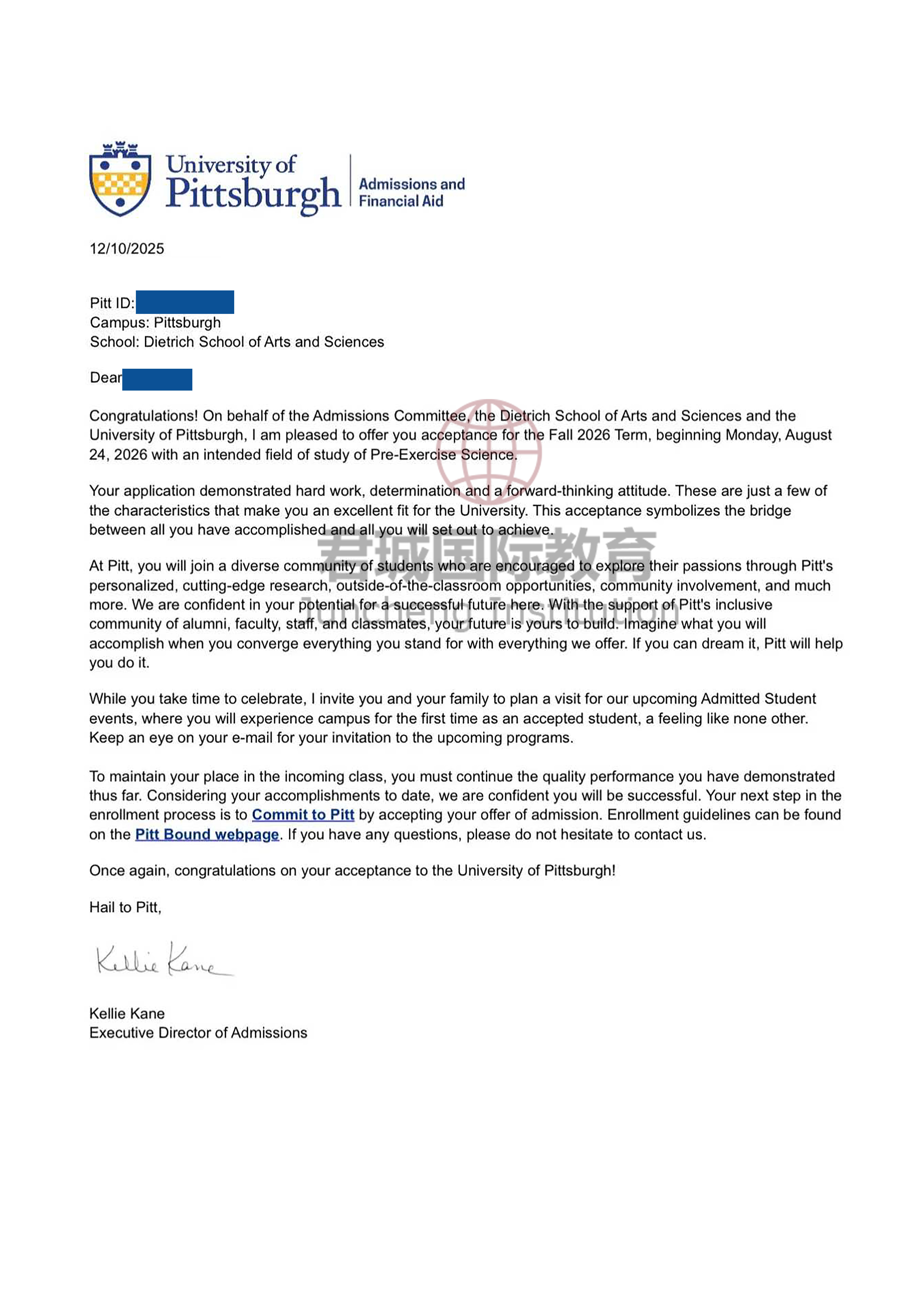 录取Offer:匹兹堡大学 University of Pittsburgh