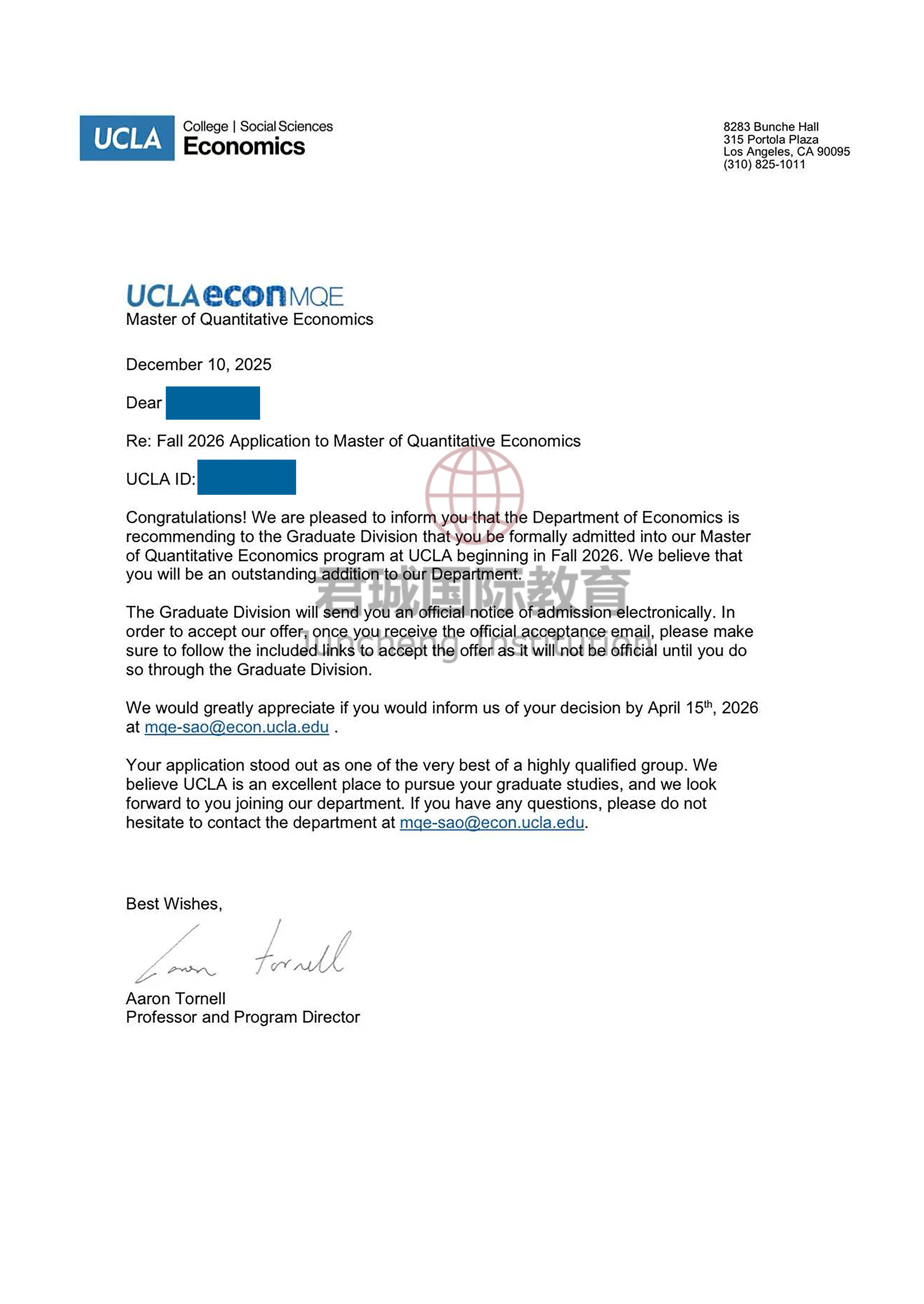 录取Offer:加州大学洛杉矶分校 University of California, Los Angeles